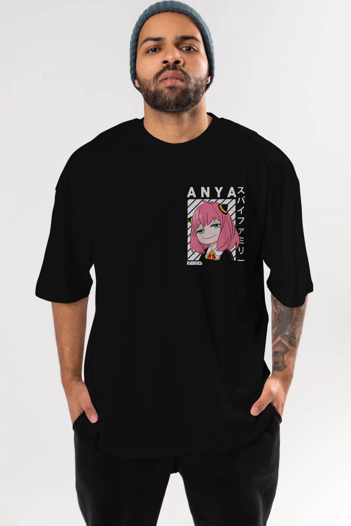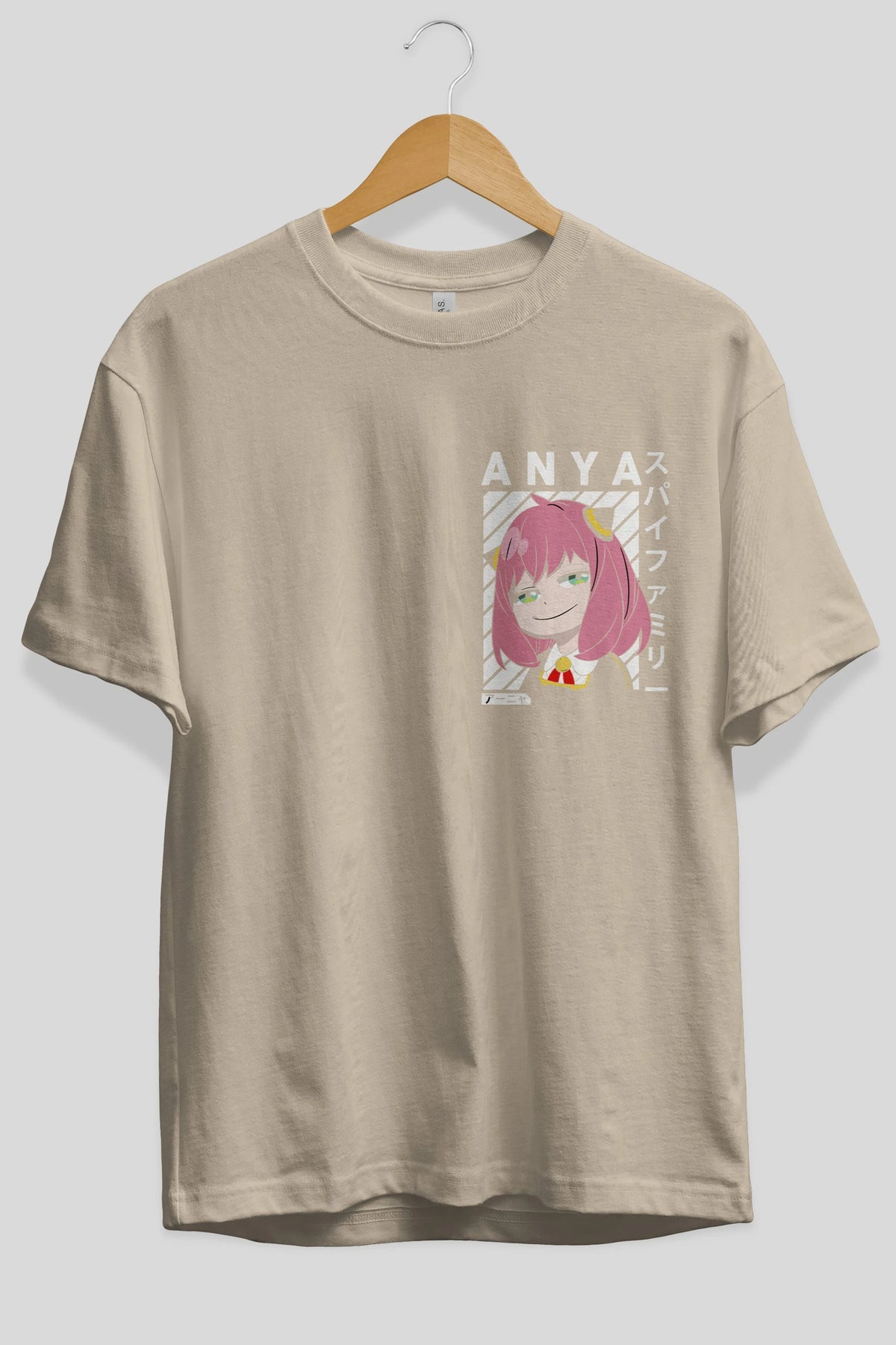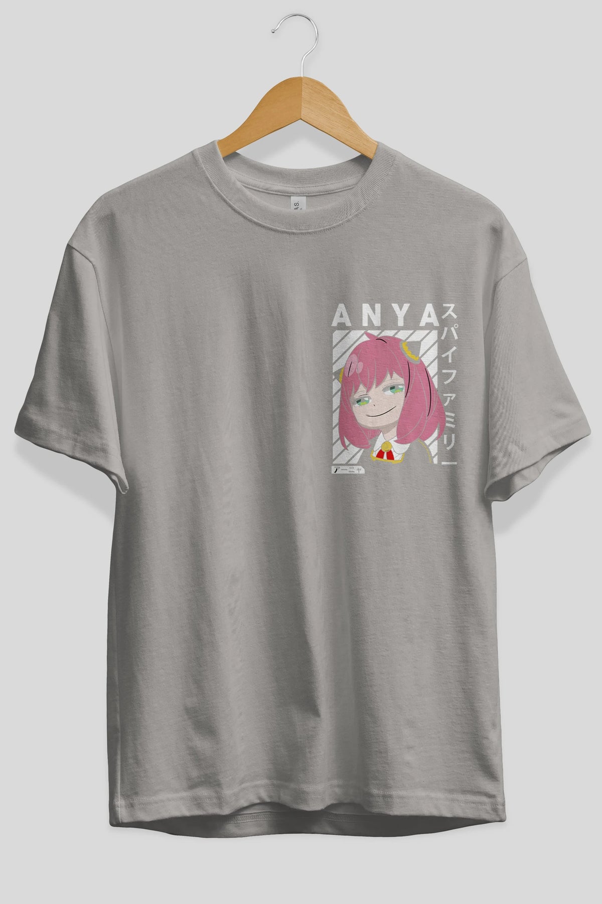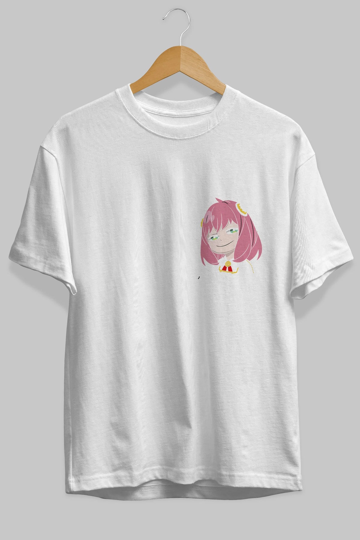 Anya SPYX FAMILY Ön Sol Baskılı Oversize t-shirt Erkek Kadın Unisex %100 Pamuk Bisiklet Yaka tişort