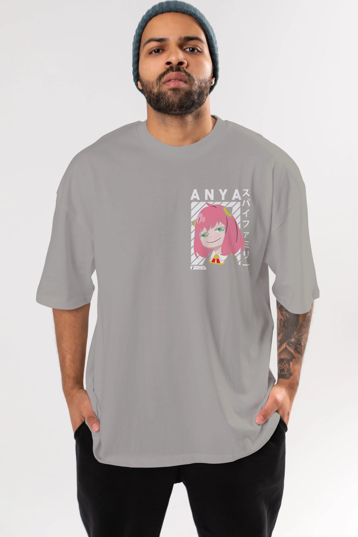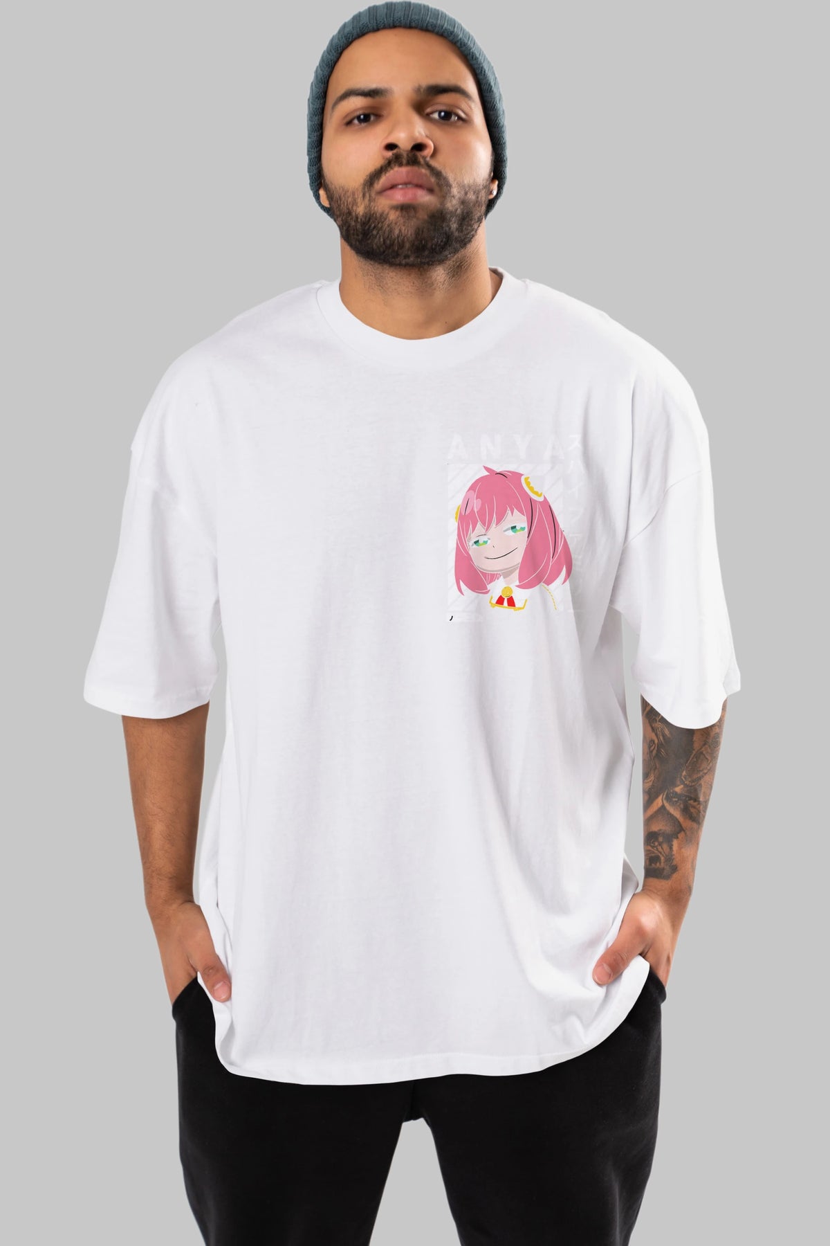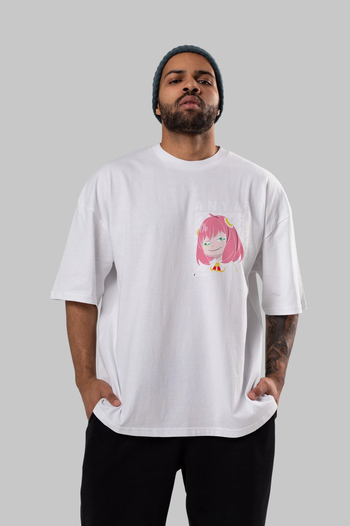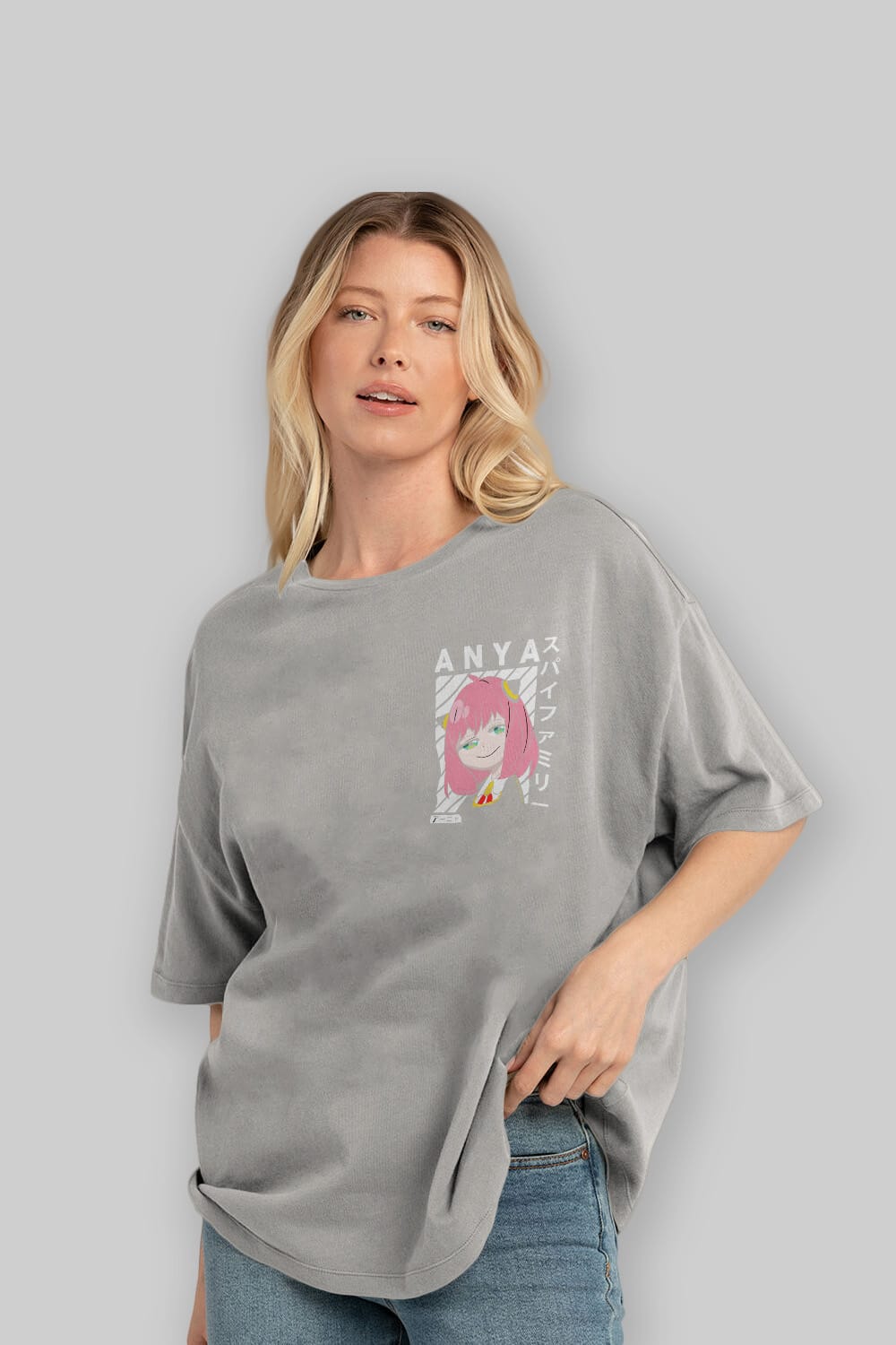 Anya SPYX FAMILY Ön Sol Baskılı Oversize t-shirt Erkek Kadın Unisex %100 Pamuk Bisiklet Yaka tişort