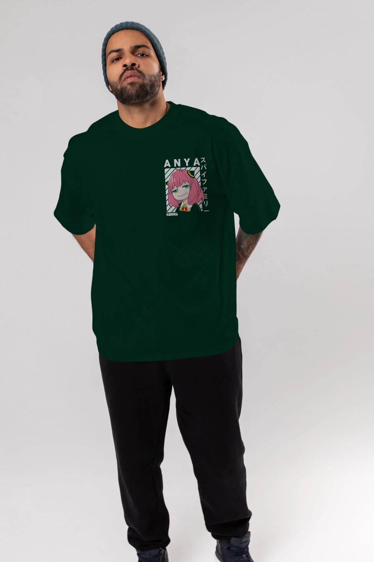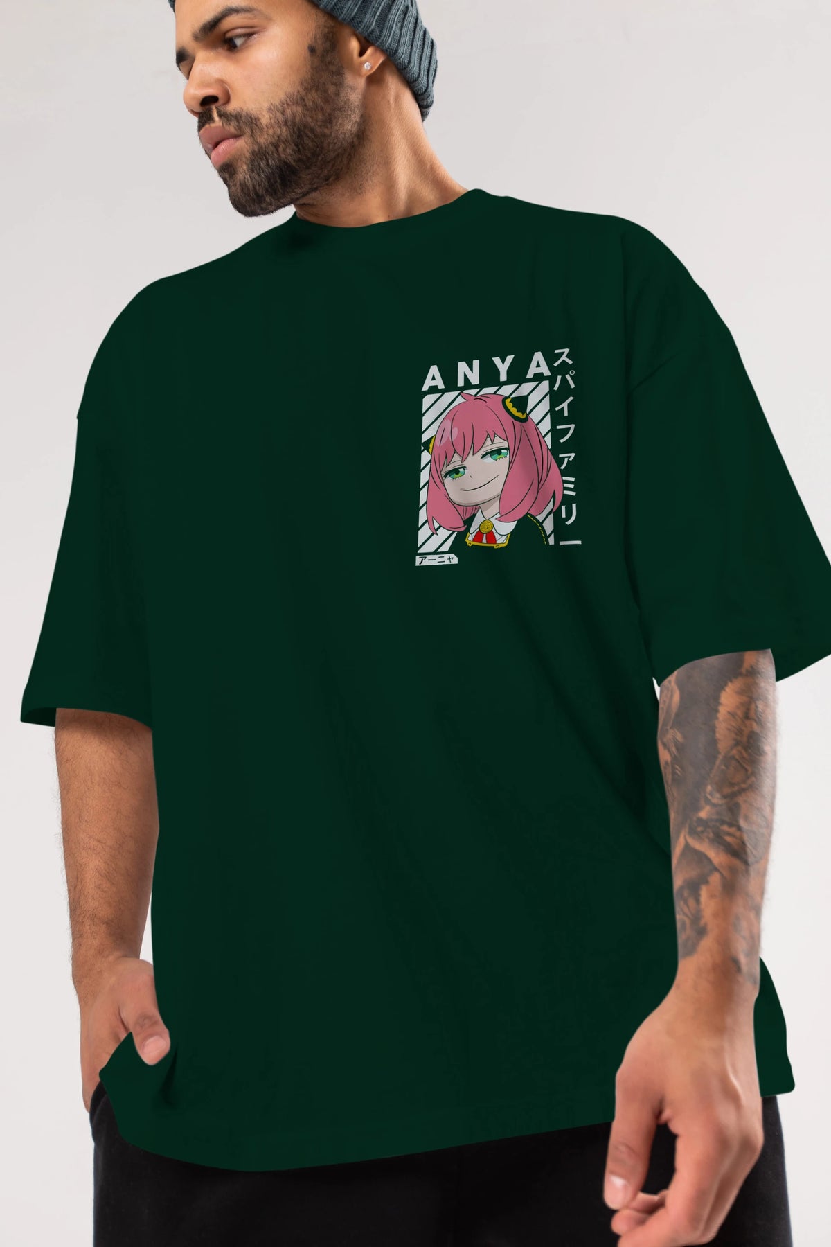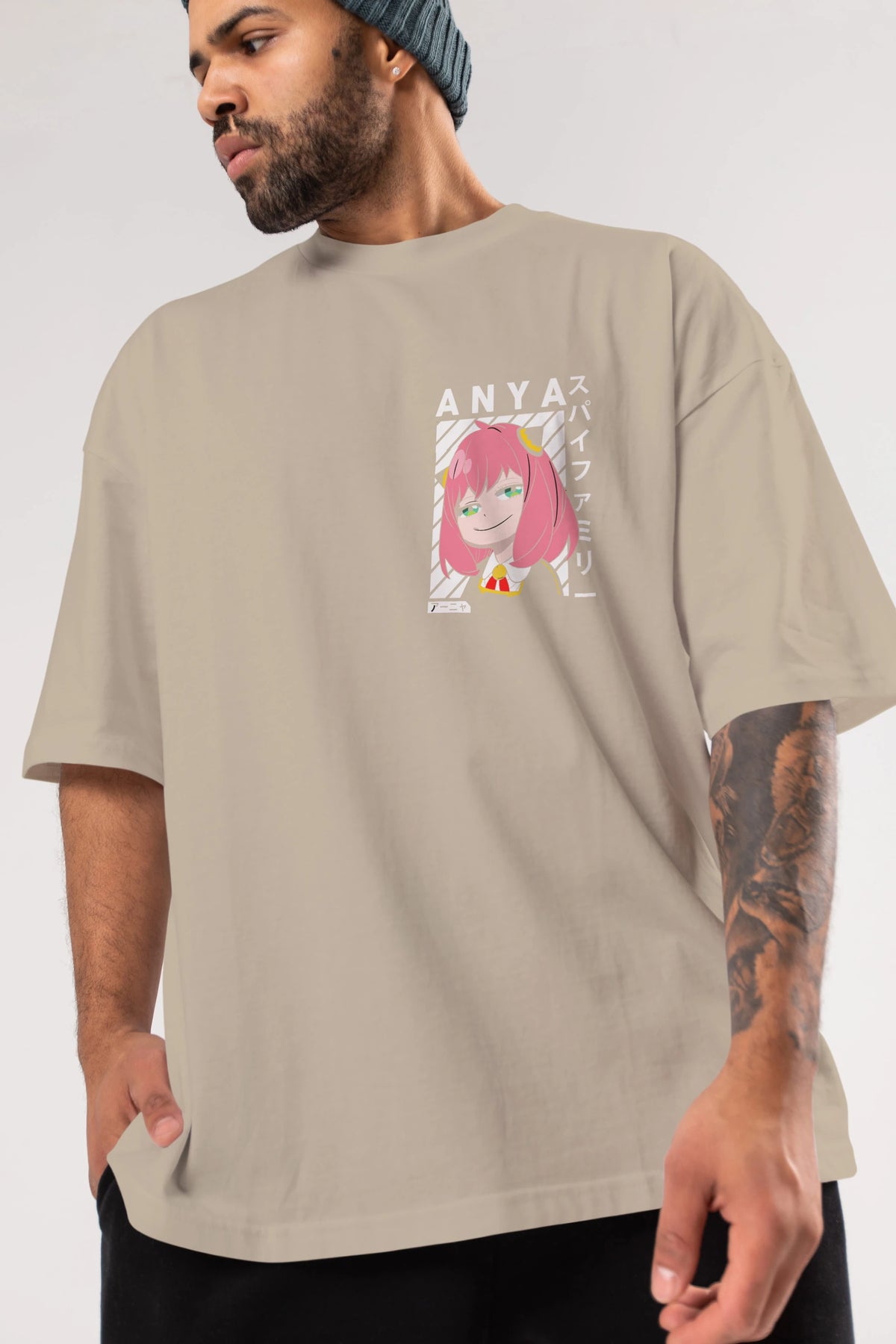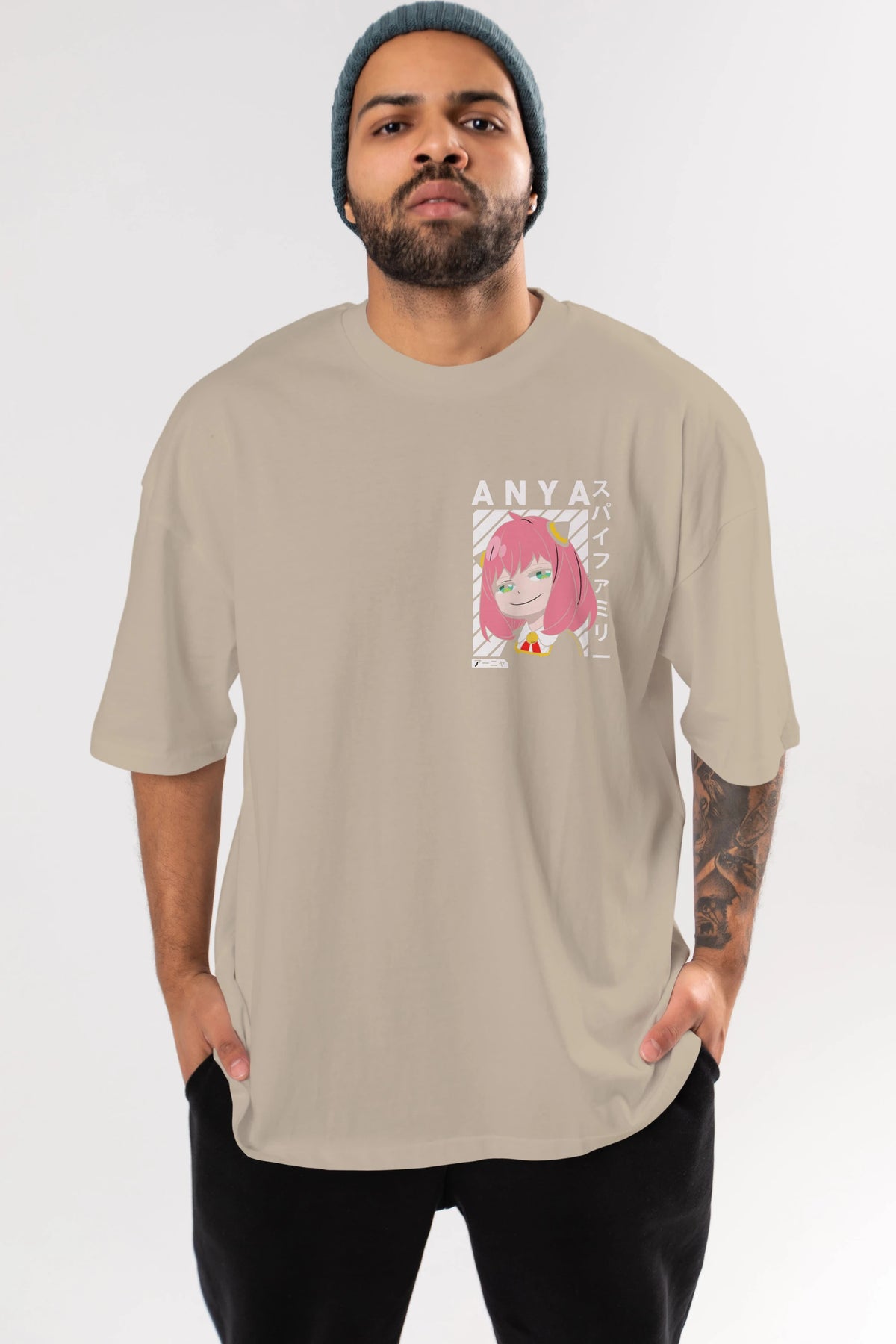 Anya SPYX FAMILY Ön Sol Baskılı Oversize t-shirt Erkek Kadın Unisex %100 Pamuk Bisiklet Yaka tişort