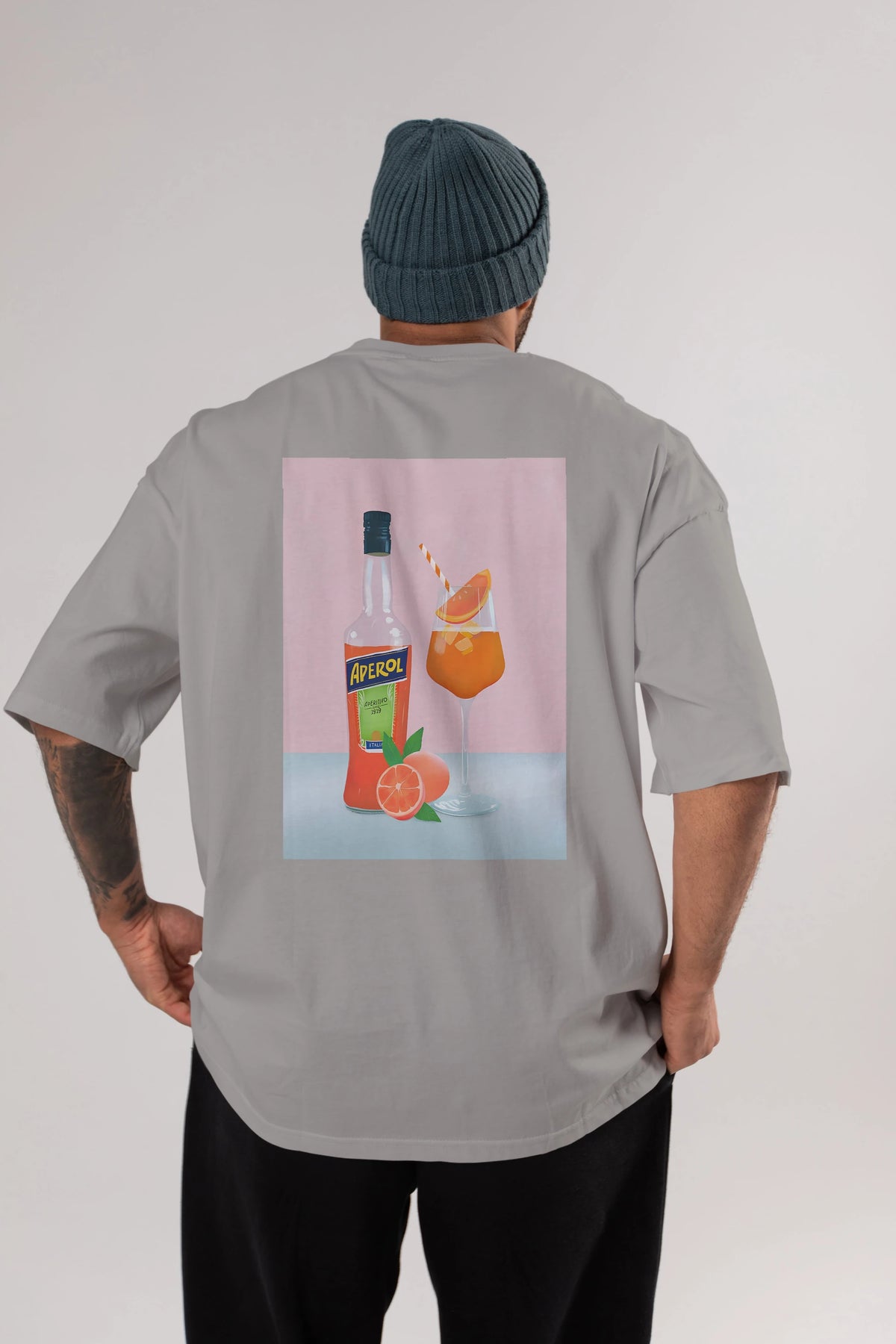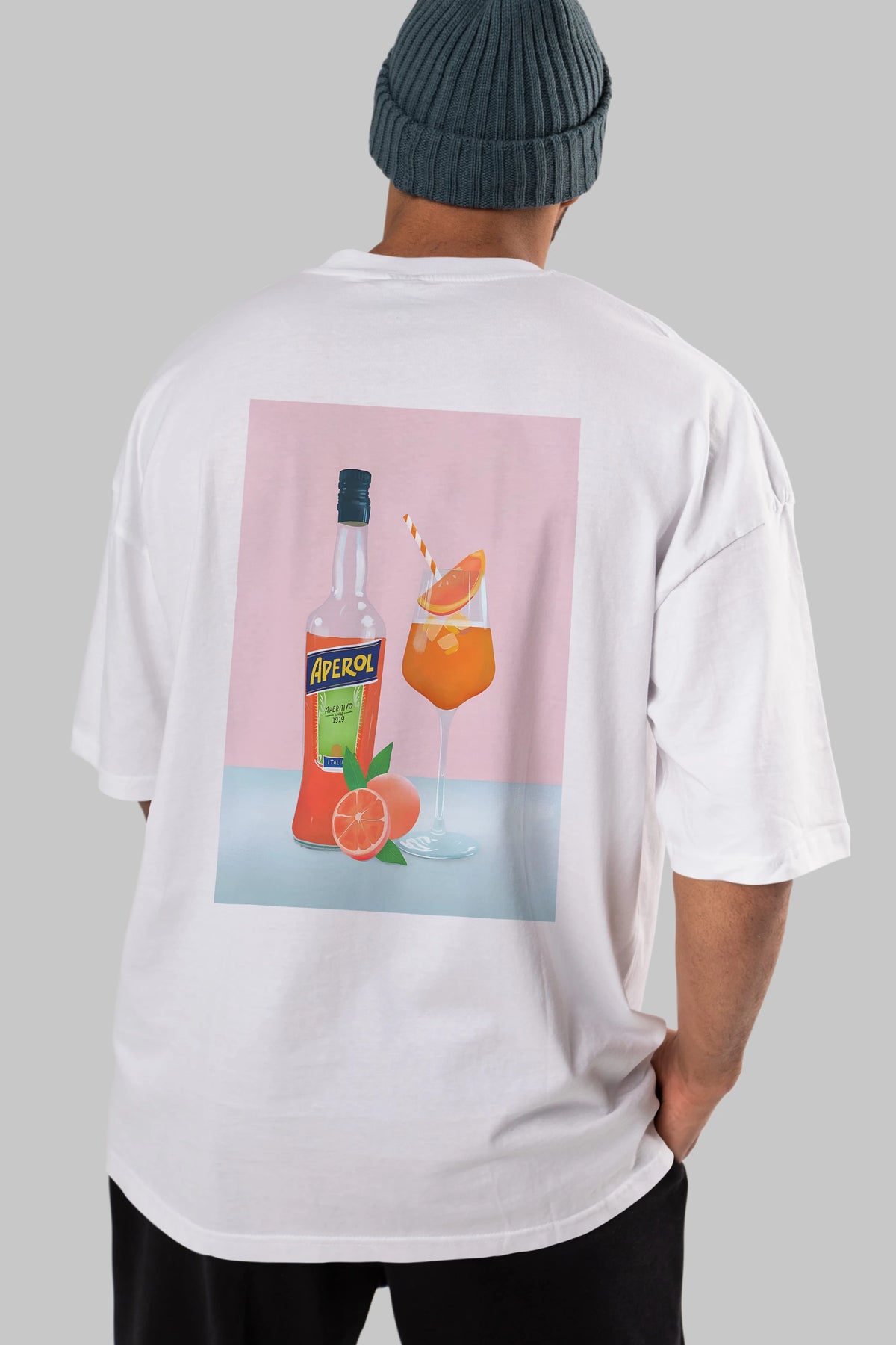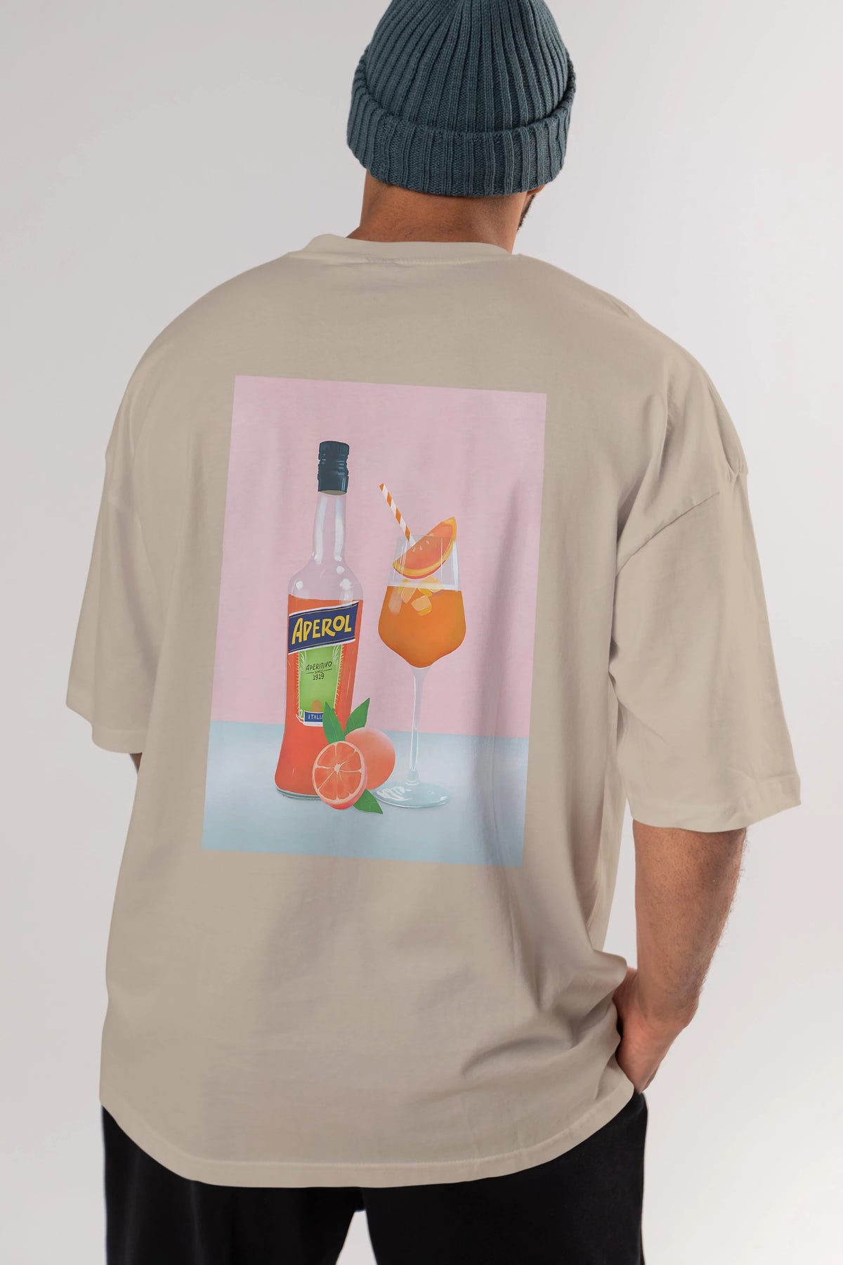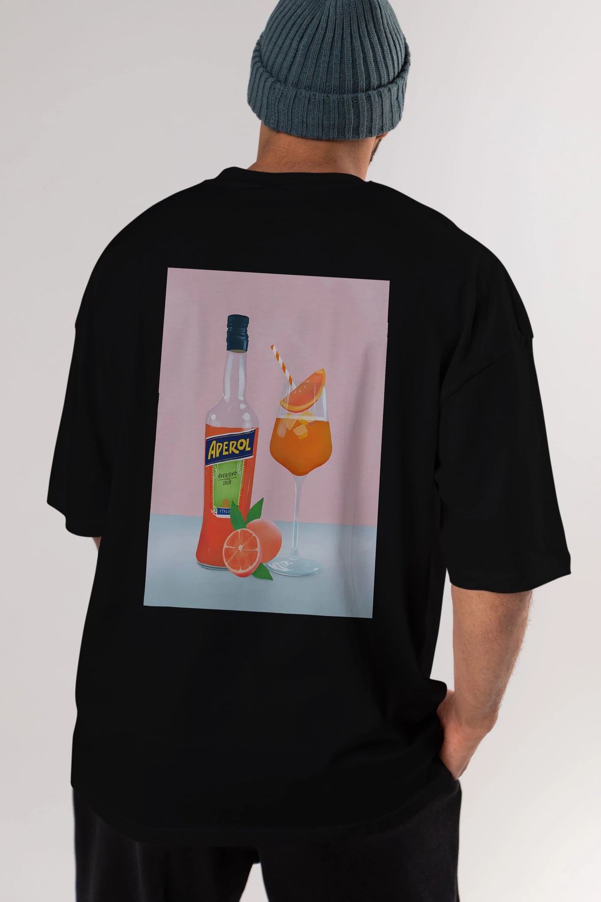 Aperol Spritz 3 Arka Baskılı Oversize t-shirt Erkek Kadın Unisex %100 Pamuk Bisiklet Yaka tişort