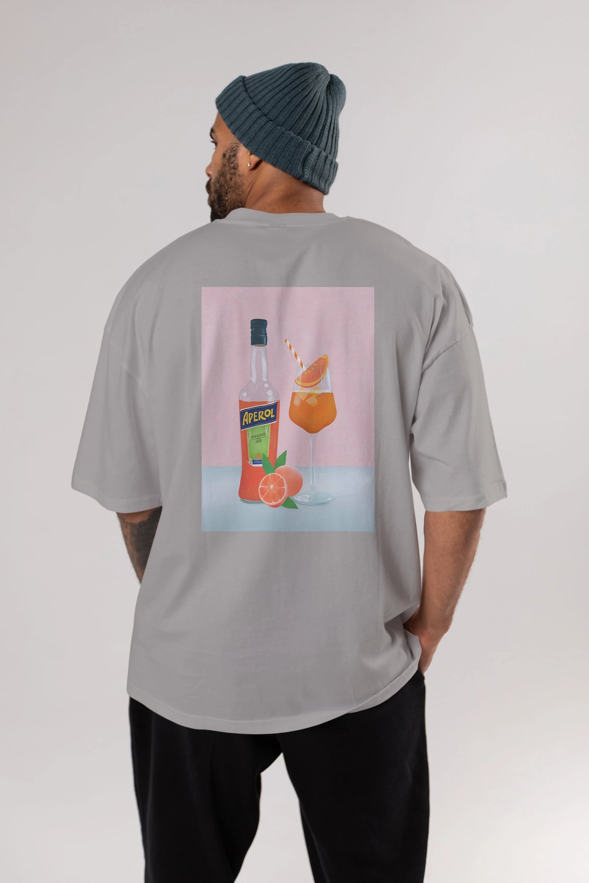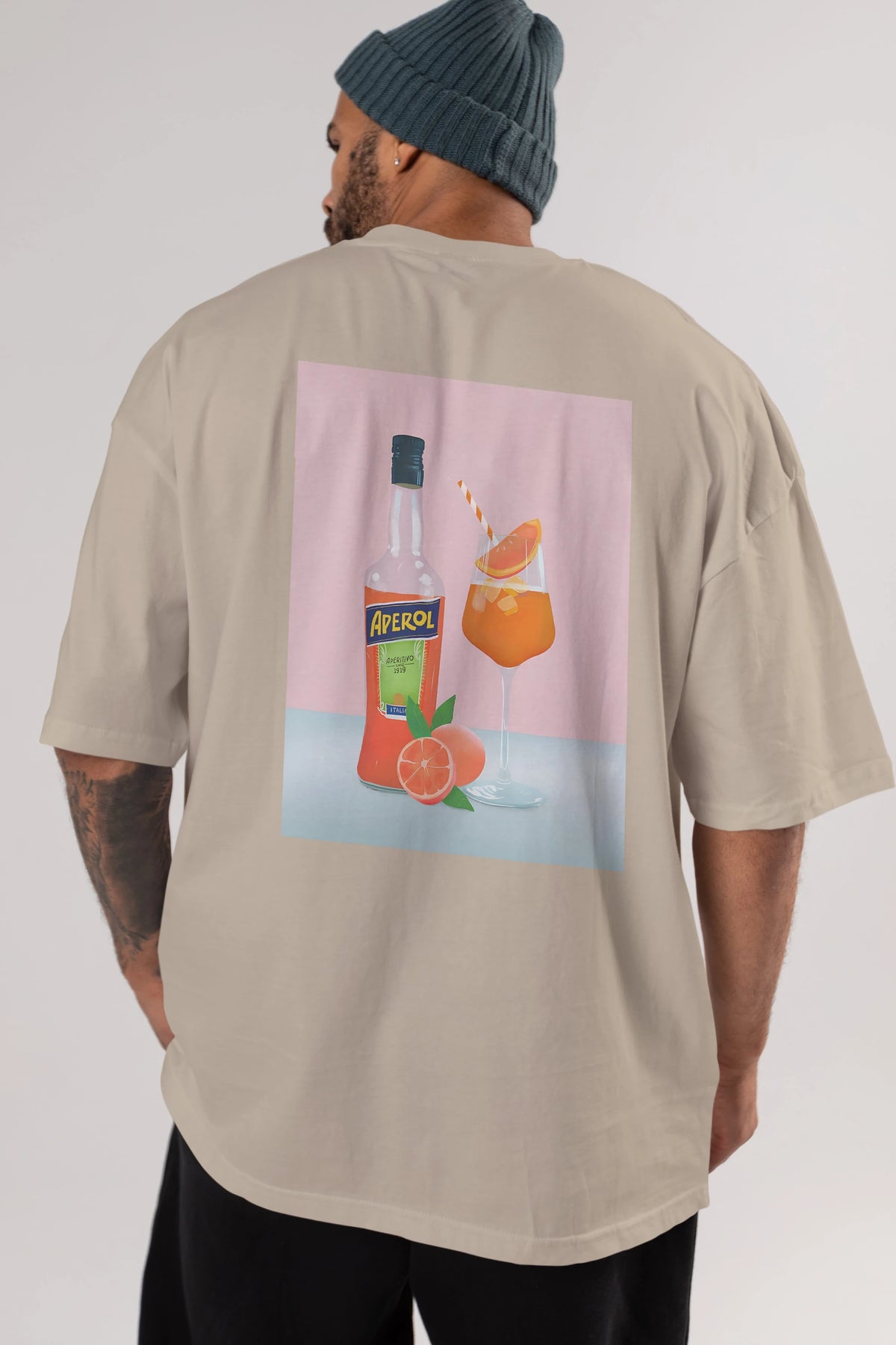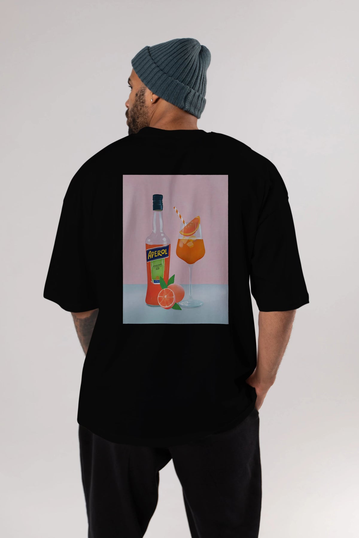 Aperol Spritz 3 Arka Baskılı Oversize t-shirt Erkek Kadın Unisex %100 Pamuk Bisiklet Yaka tişort