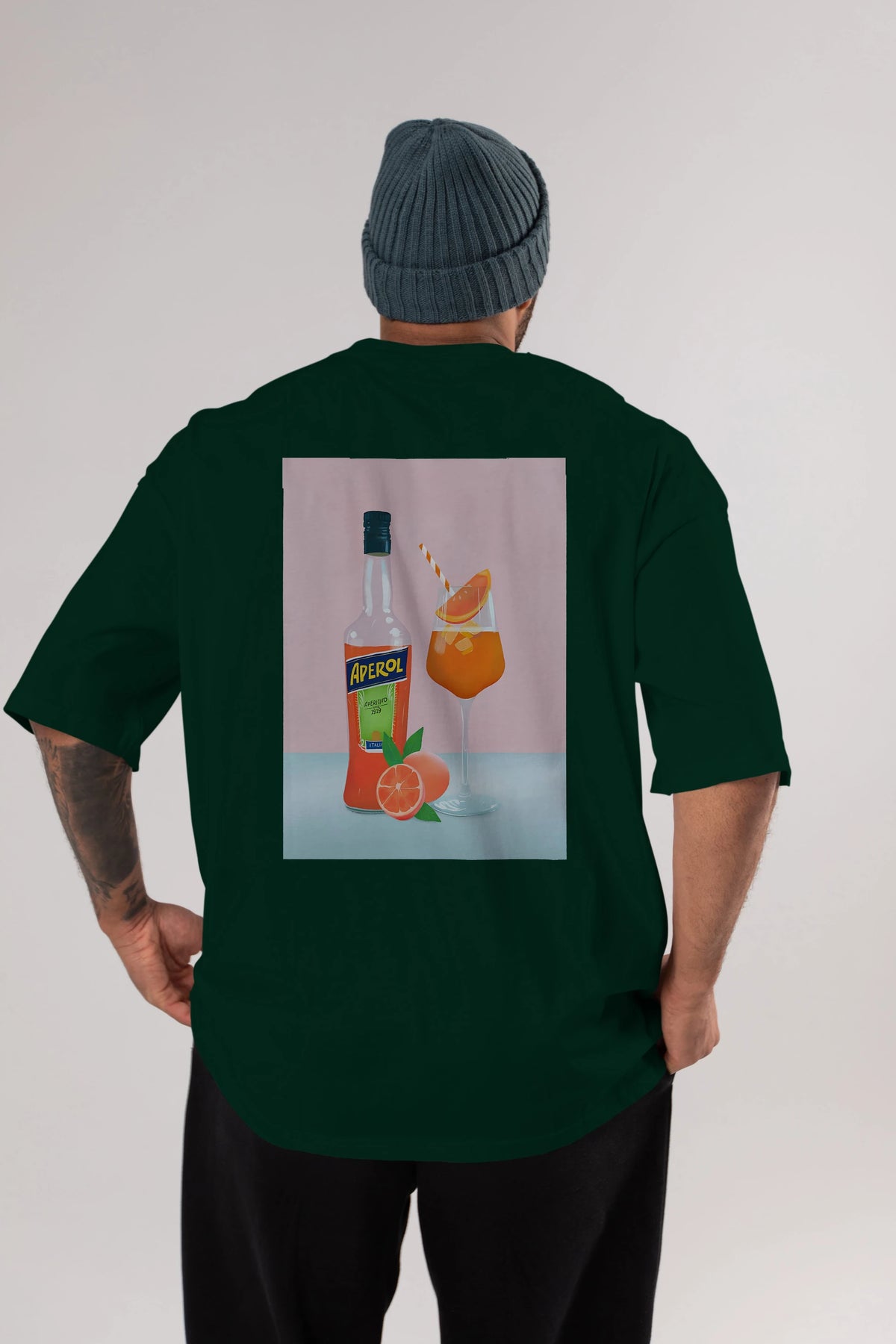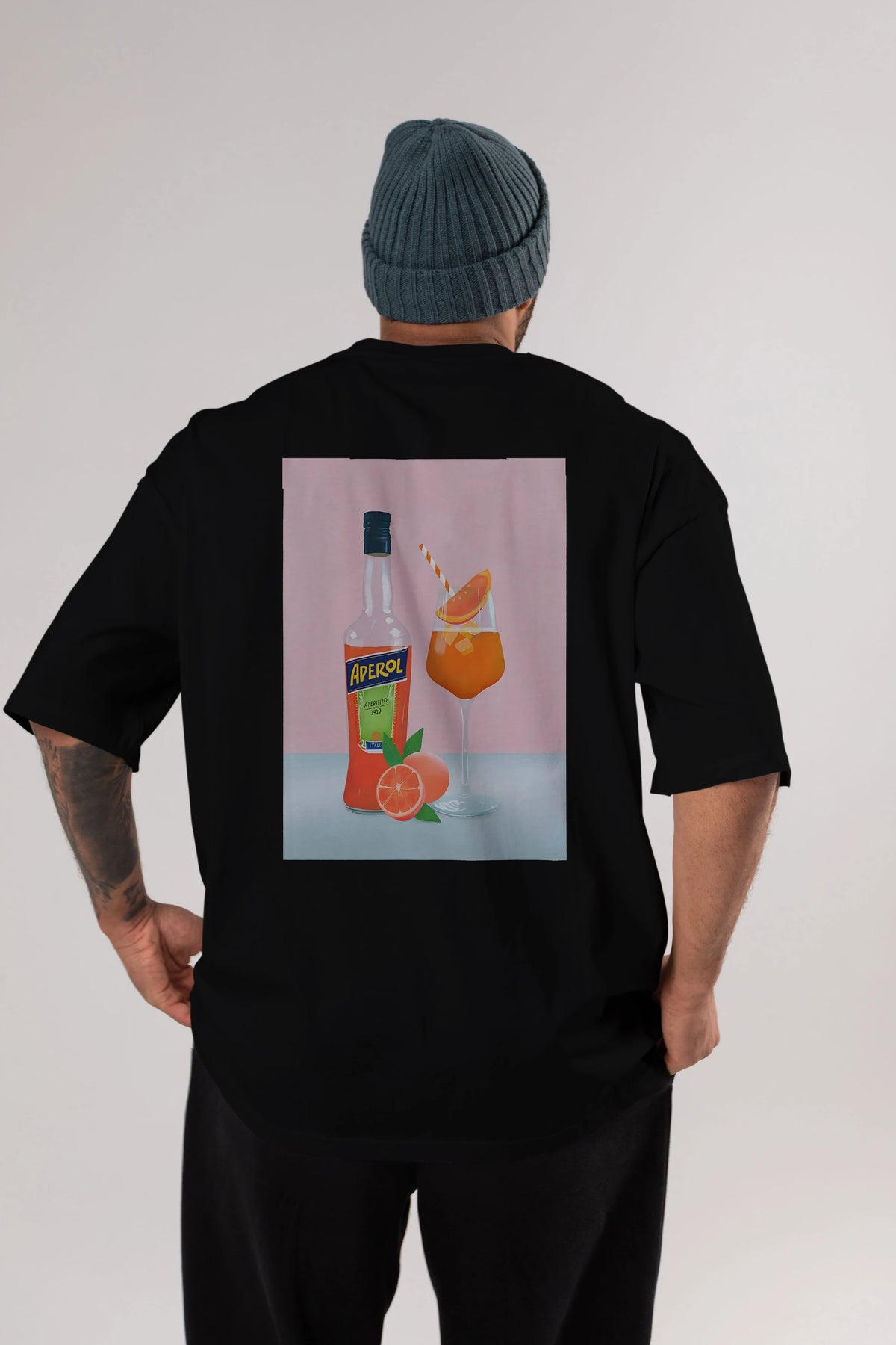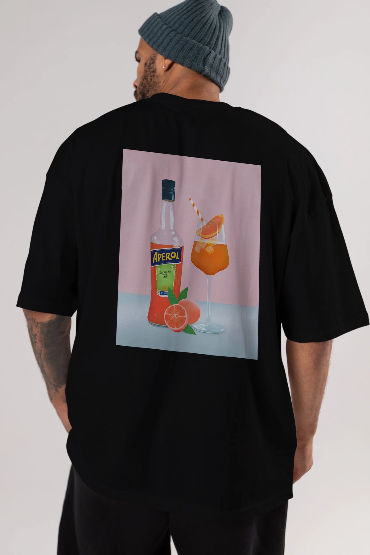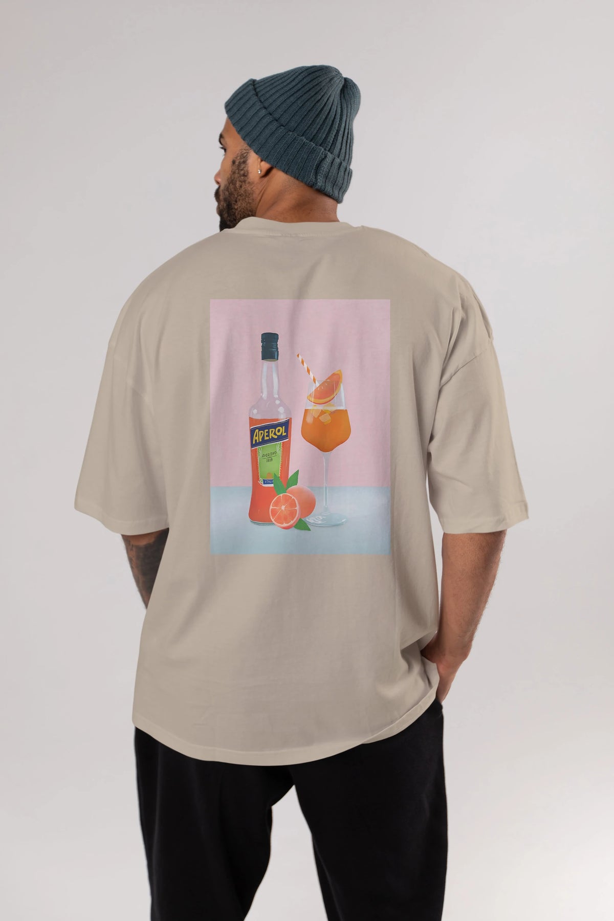 Aperol Spritz 3 Arka Baskılı Oversize t-shirt Erkek Kadın Unisex %100 Pamuk Bisiklet Yaka tişort