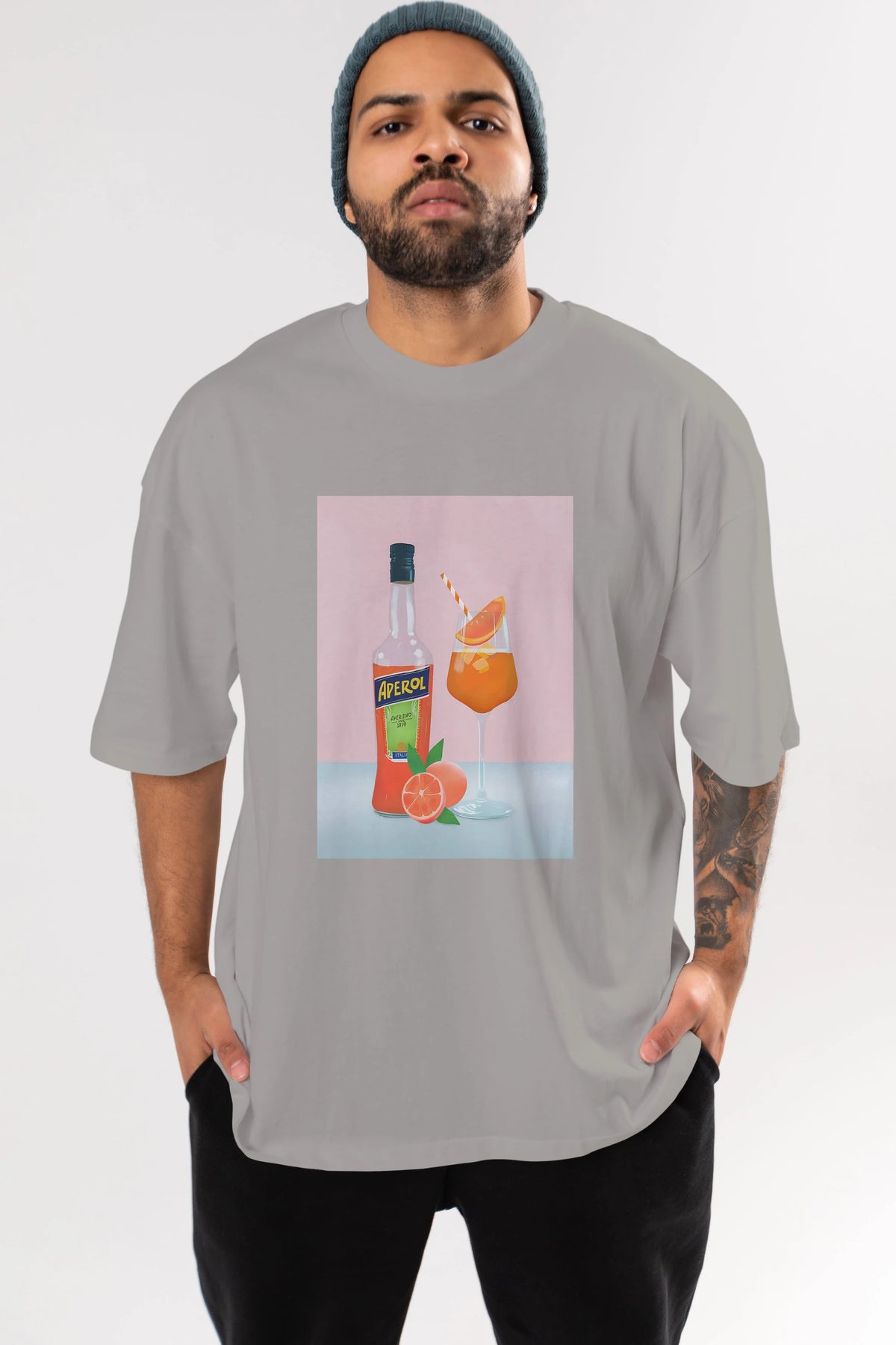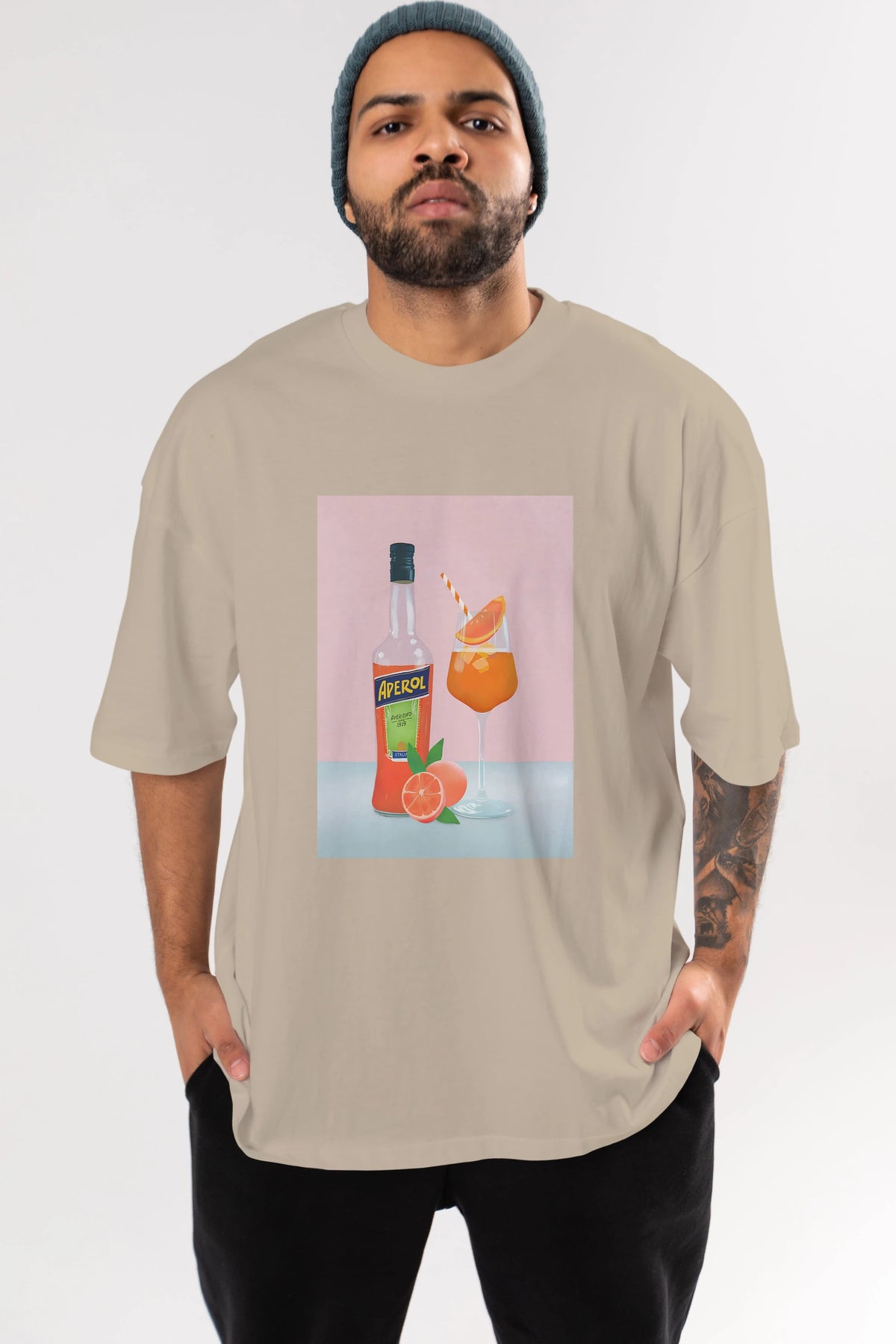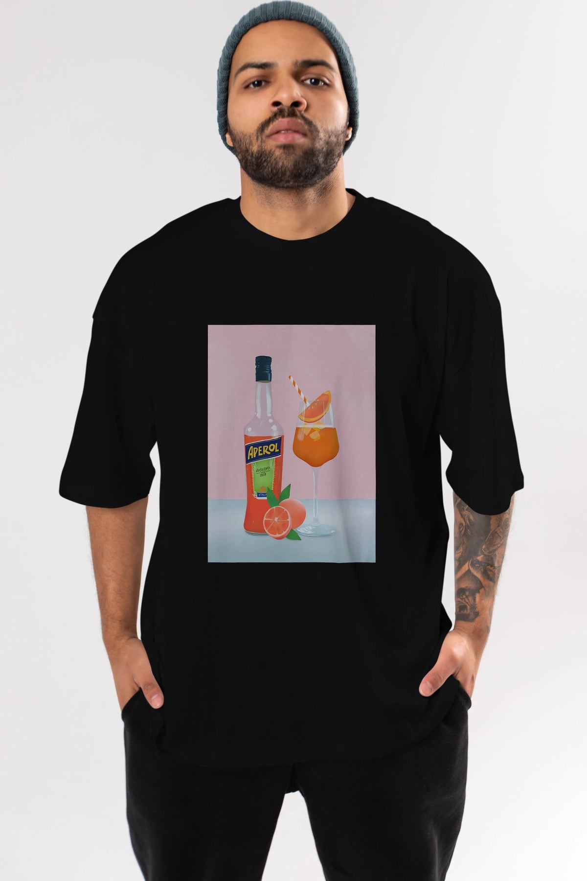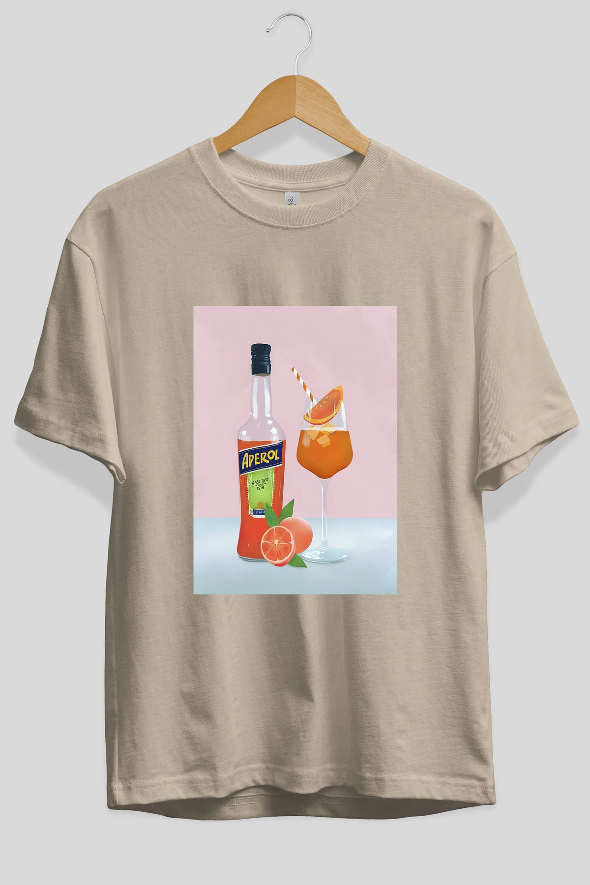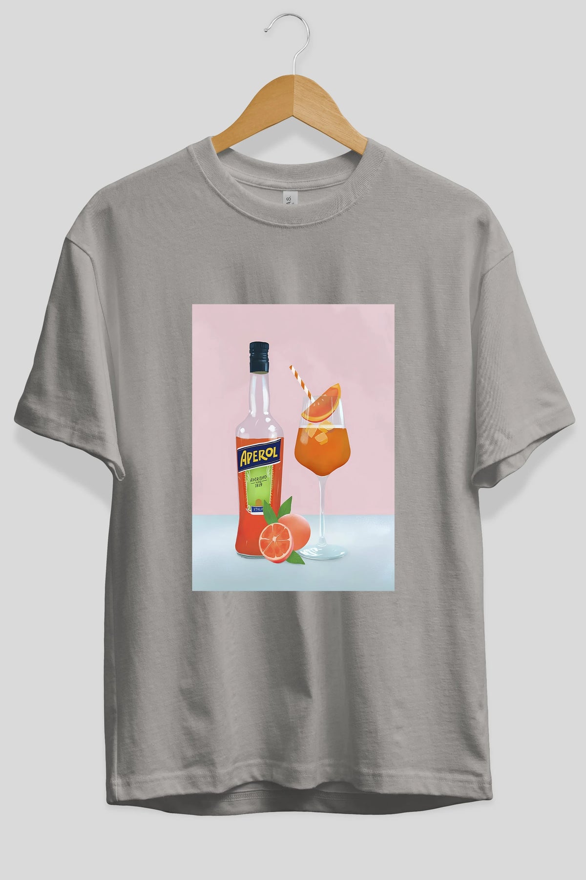 Aperol Spritz 3 Ön Baskılı Oversize t-shirt Erkek Kadın Unisex %100 Pamuk Bisiklet Yaka tişort