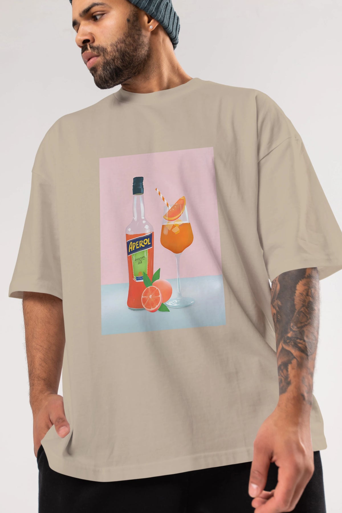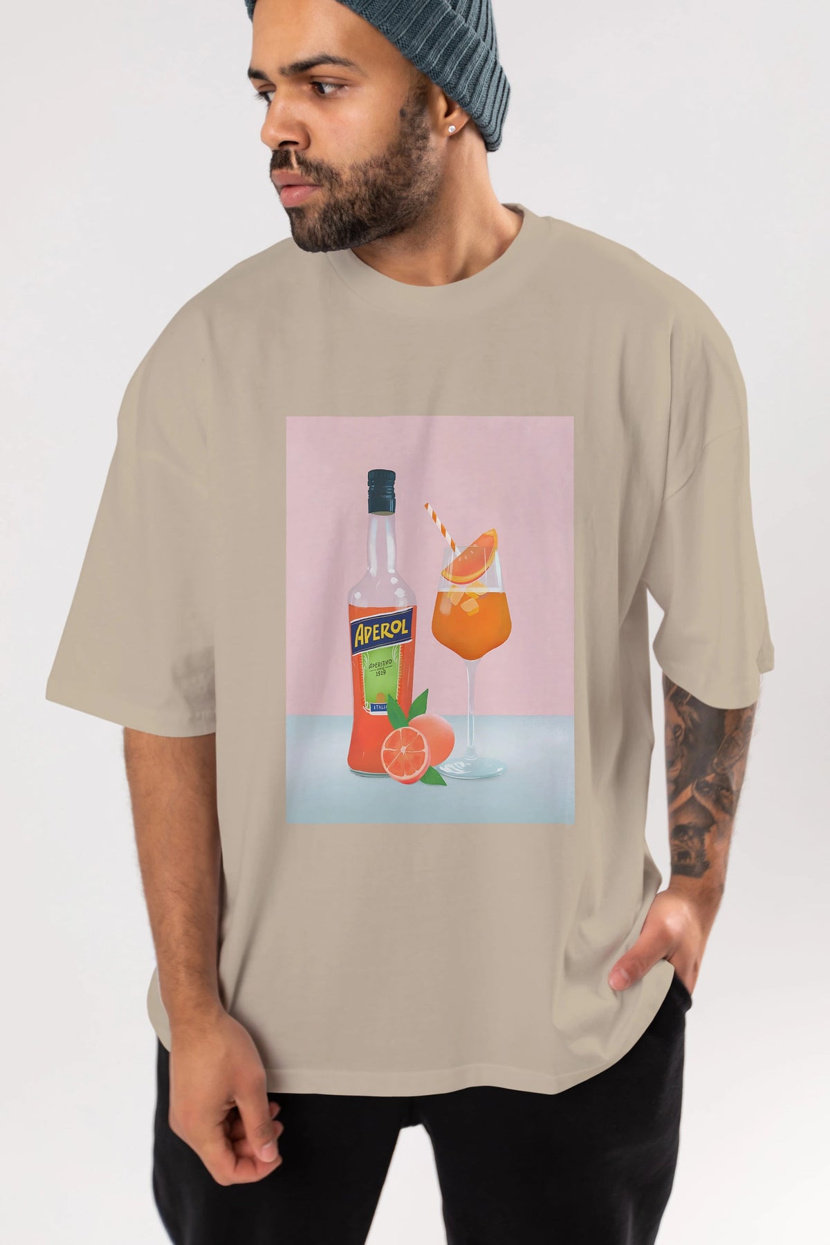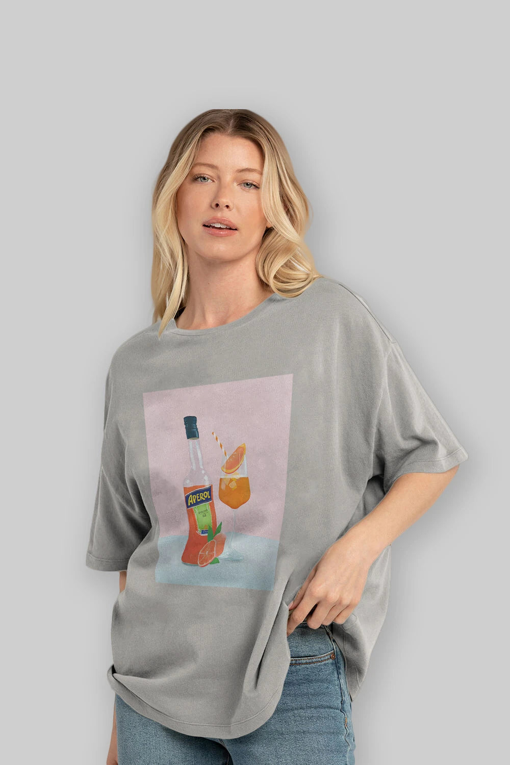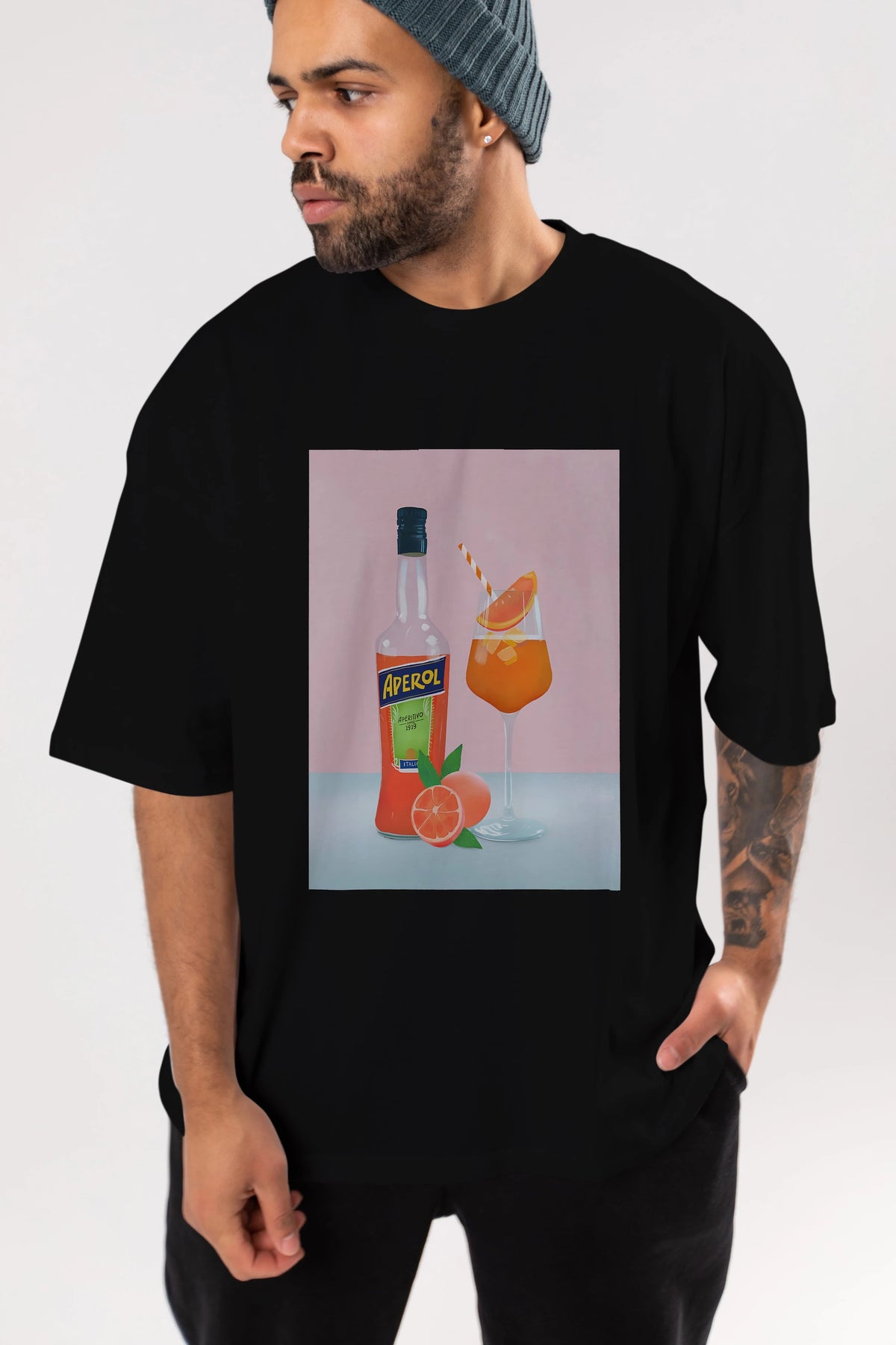 Aperol Spritz 3 Ön Baskılı Oversize t-shirt Erkek Kadın Unisex %100 Pamuk Bisiklet Yaka tişort