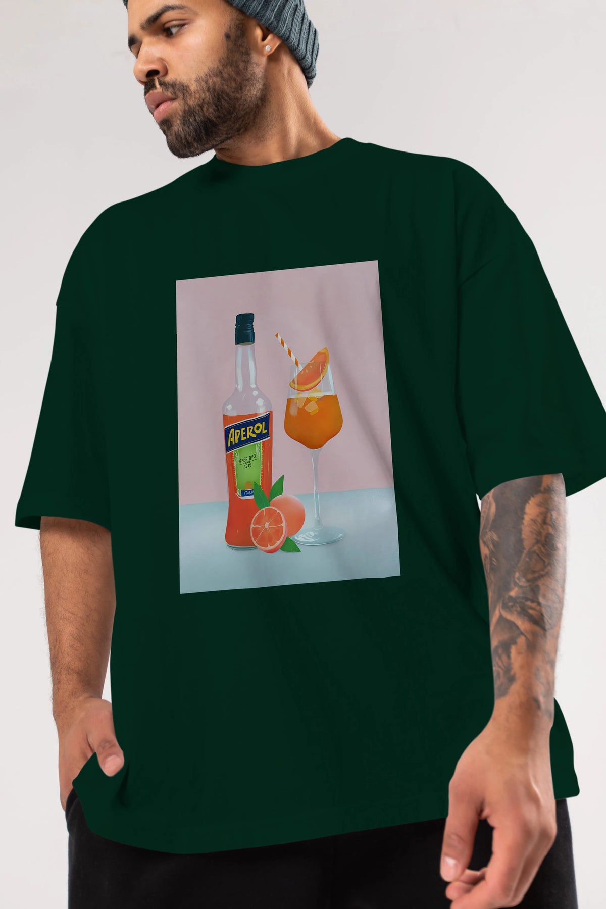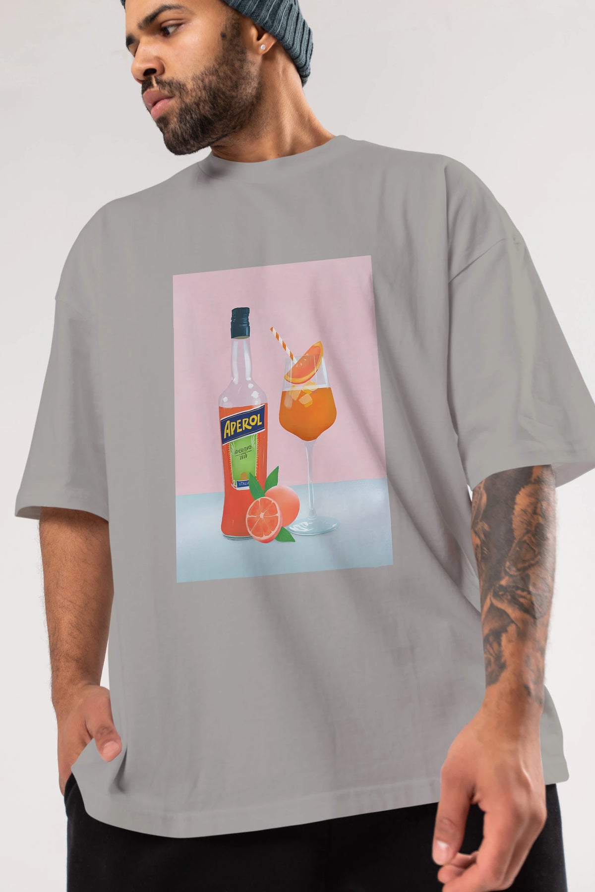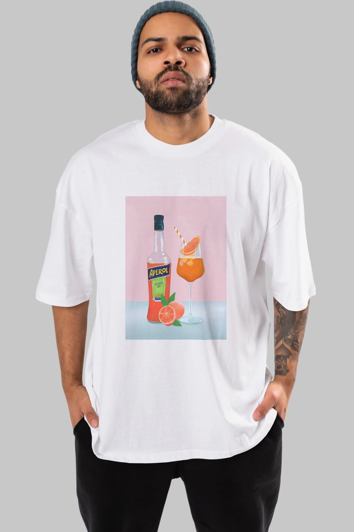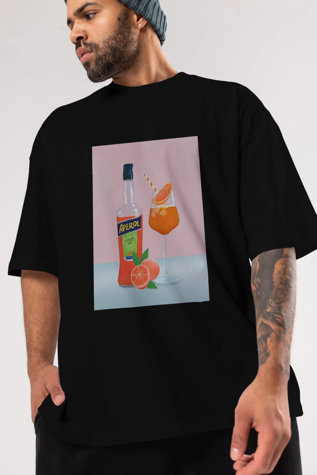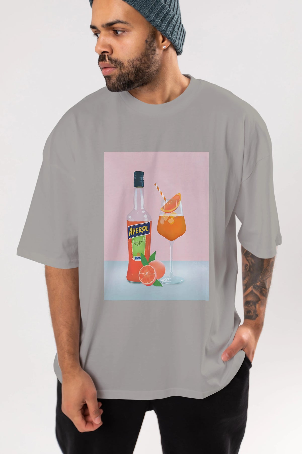 Aperol Spritz 3 Ön Baskılı Oversize t-shirt Erkek Kadın Unisex %100 Pamuk Bisiklet Yaka tişort