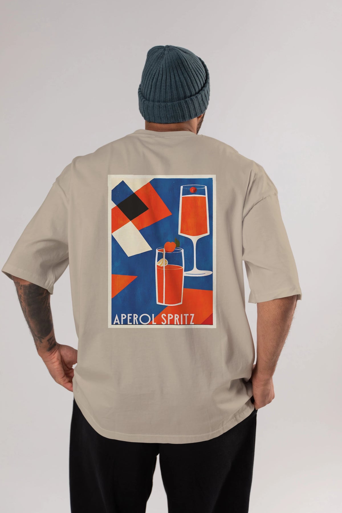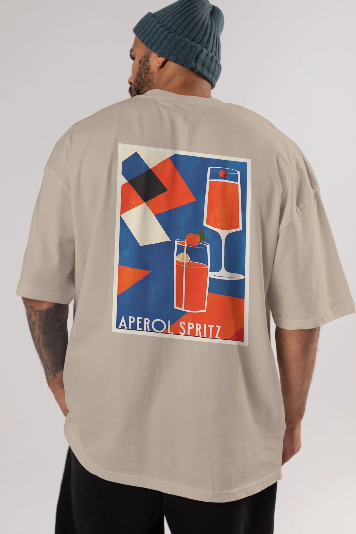 Aperol Spritz 4 Arka Baskılı Oversize t-shirt Erkek Kadın Unisex %100 Pamuk Bisiklet Yaka tişort