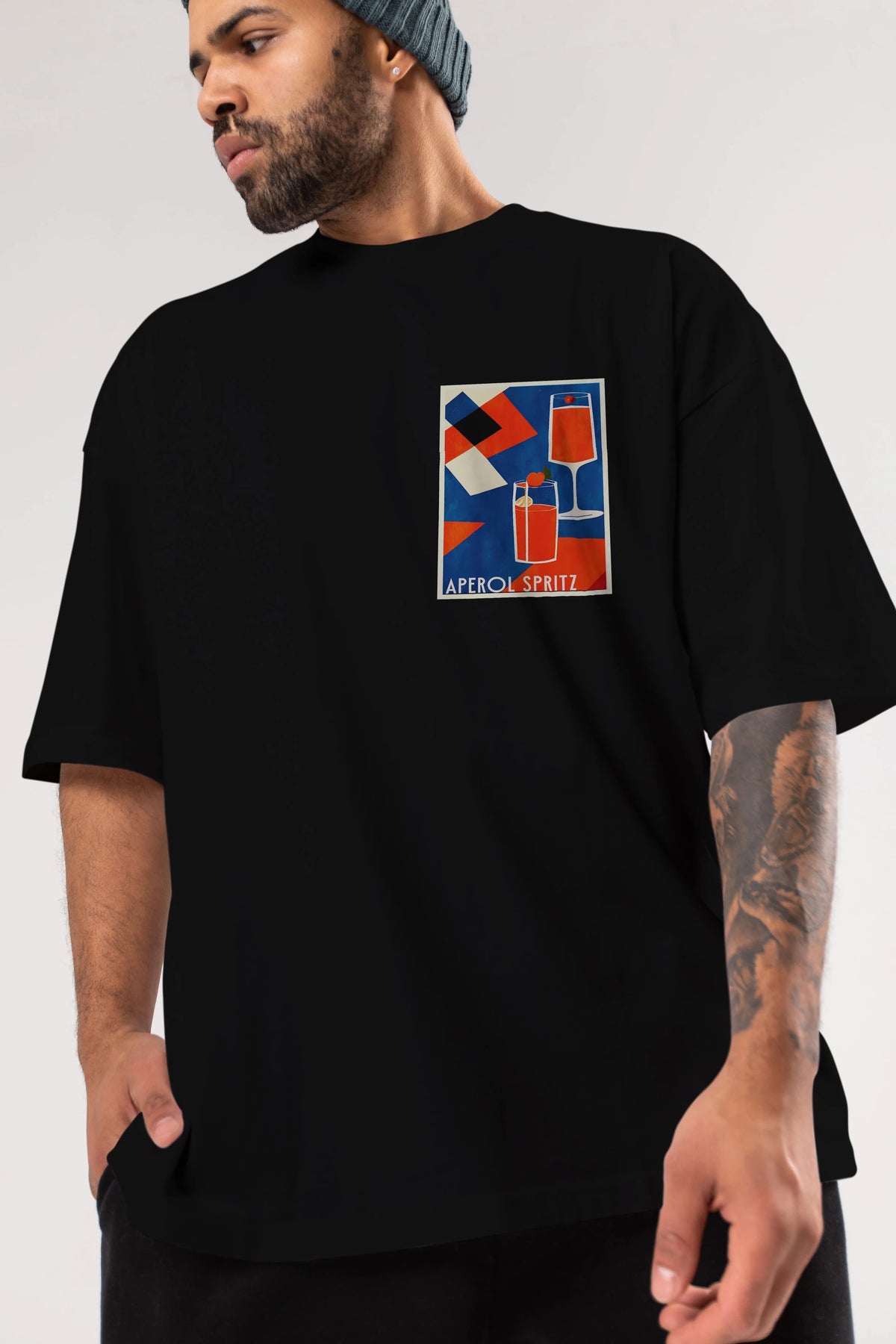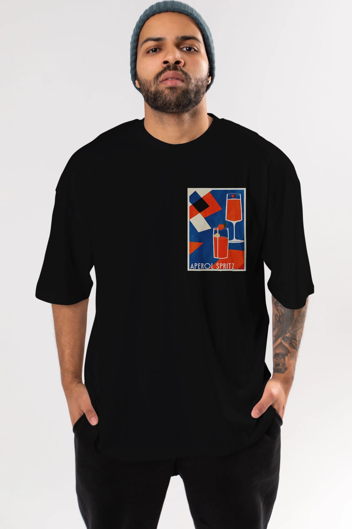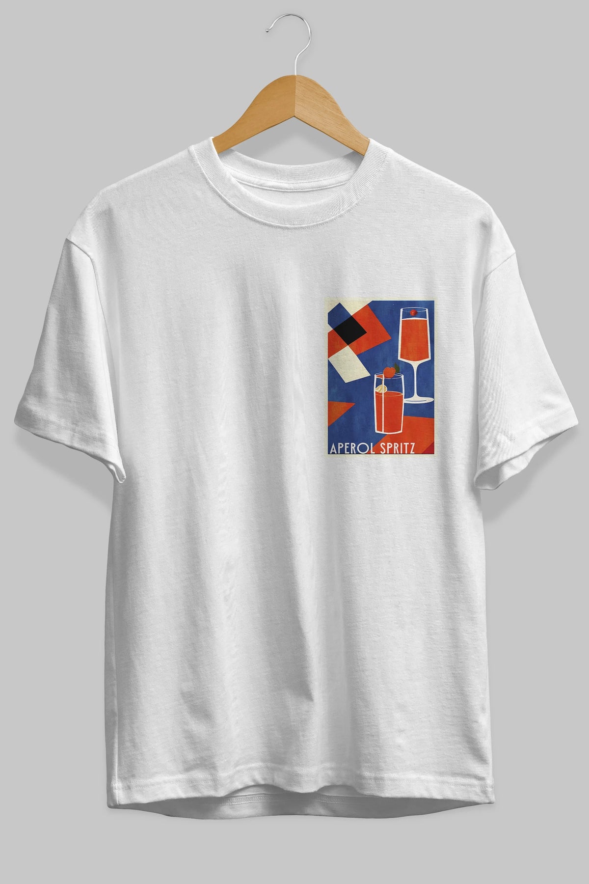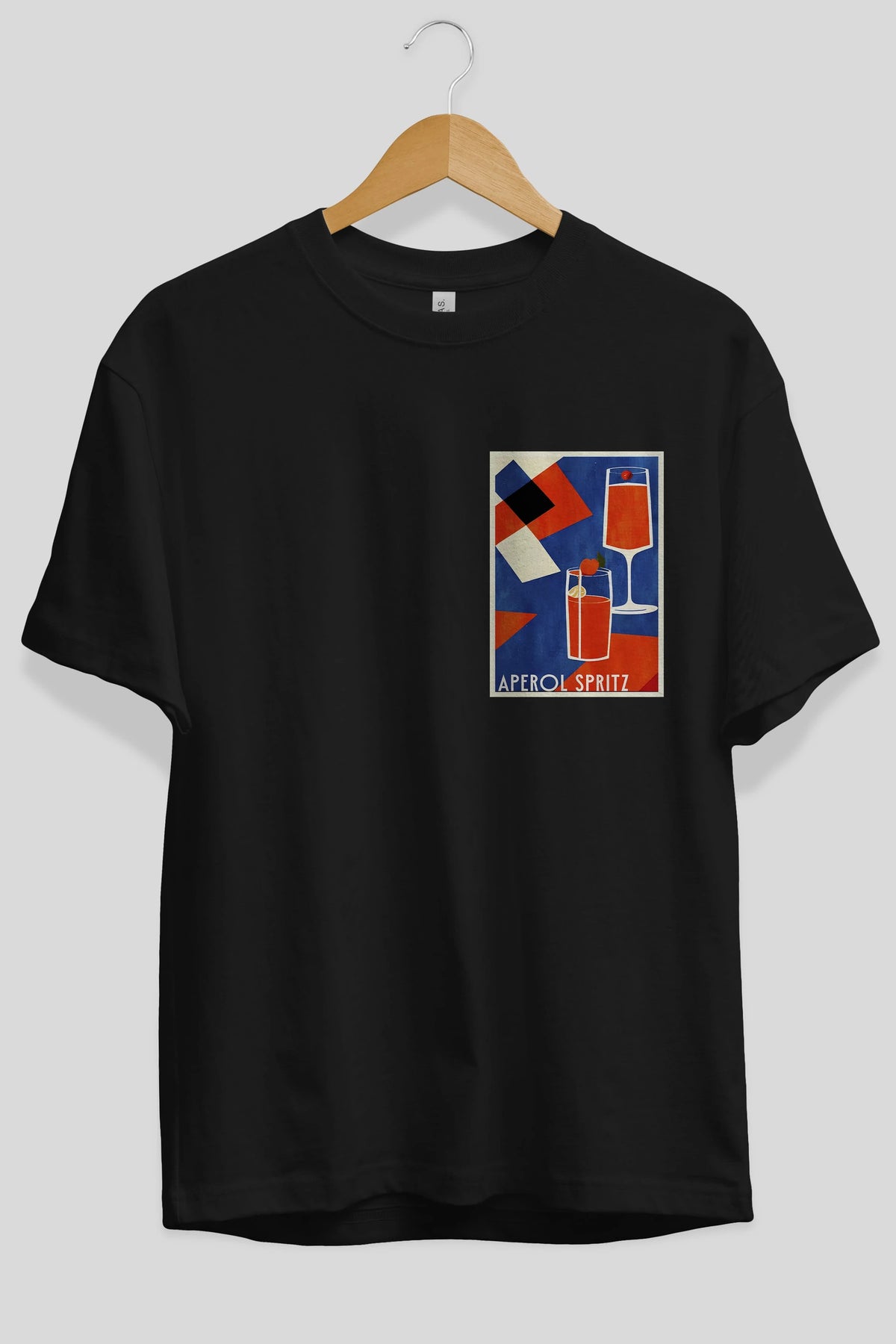 Aperol Spritz 4 Ön Sol Baskılı Oversize t-shirt Erkek Kadın Unisex %100 Pamuk Bisiklet Yaka tişort