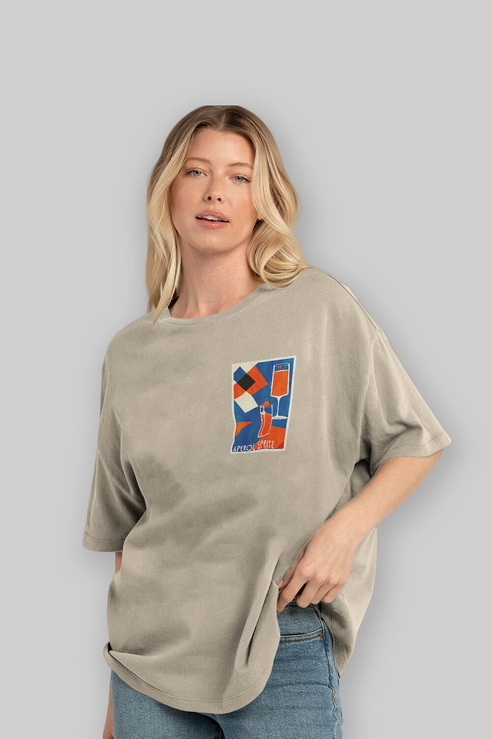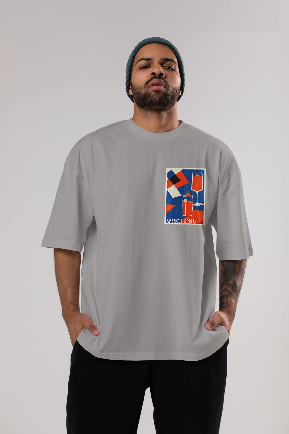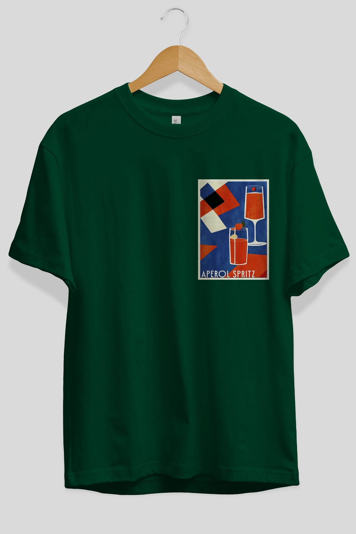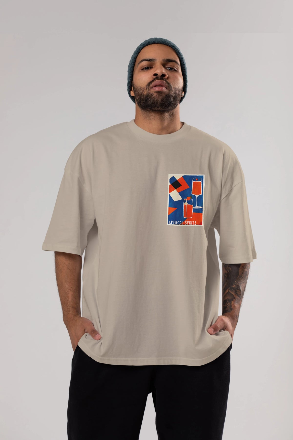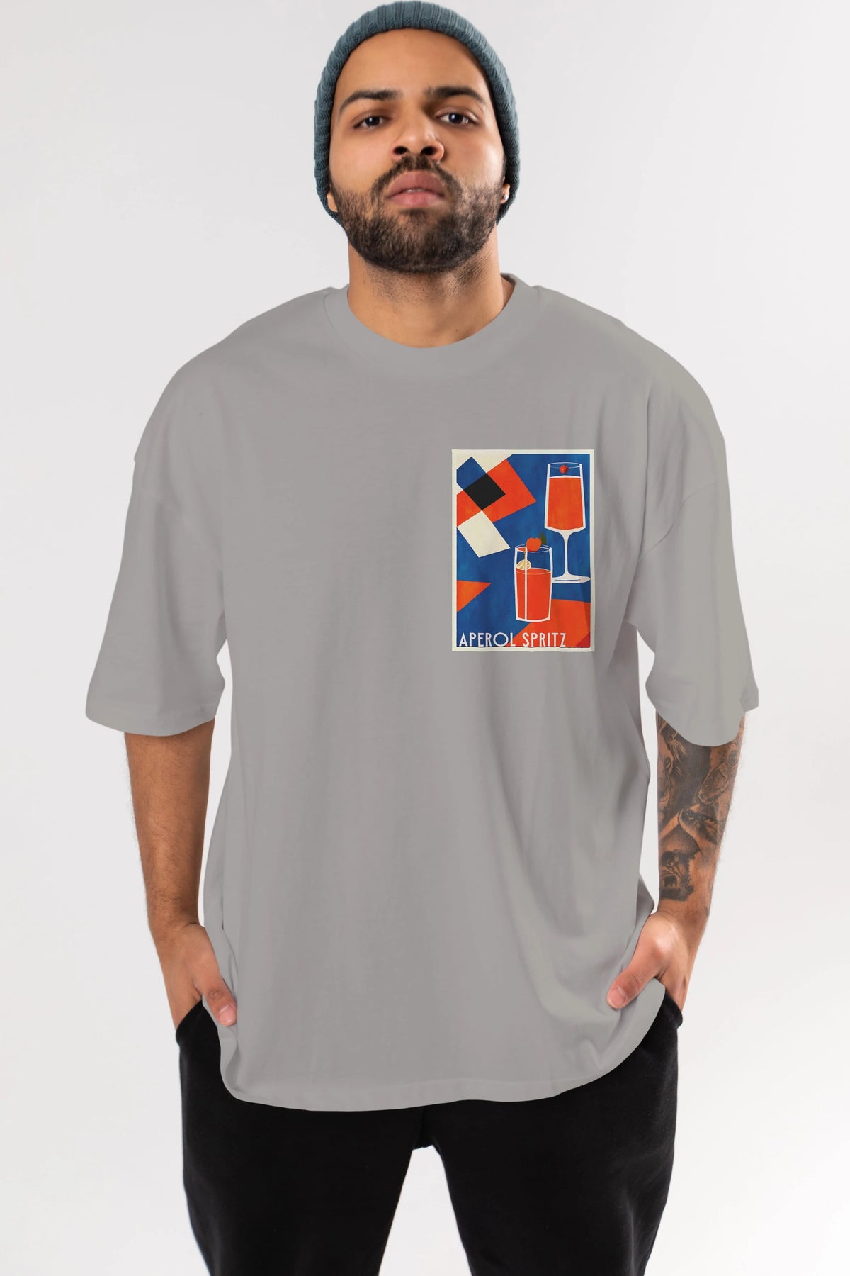 Aperol Spritz 4 Ön Sol Baskılı Oversize t-shirt Erkek Kadın Unisex %100 Pamuk Bisiklet Yaka tişort