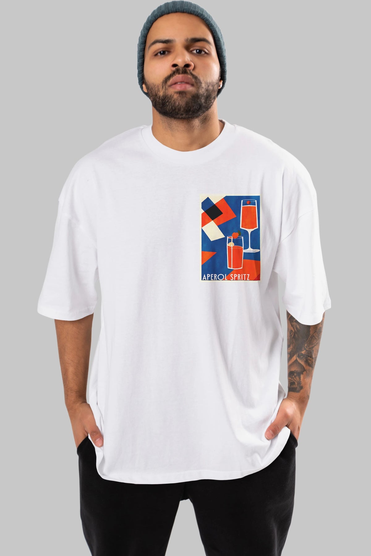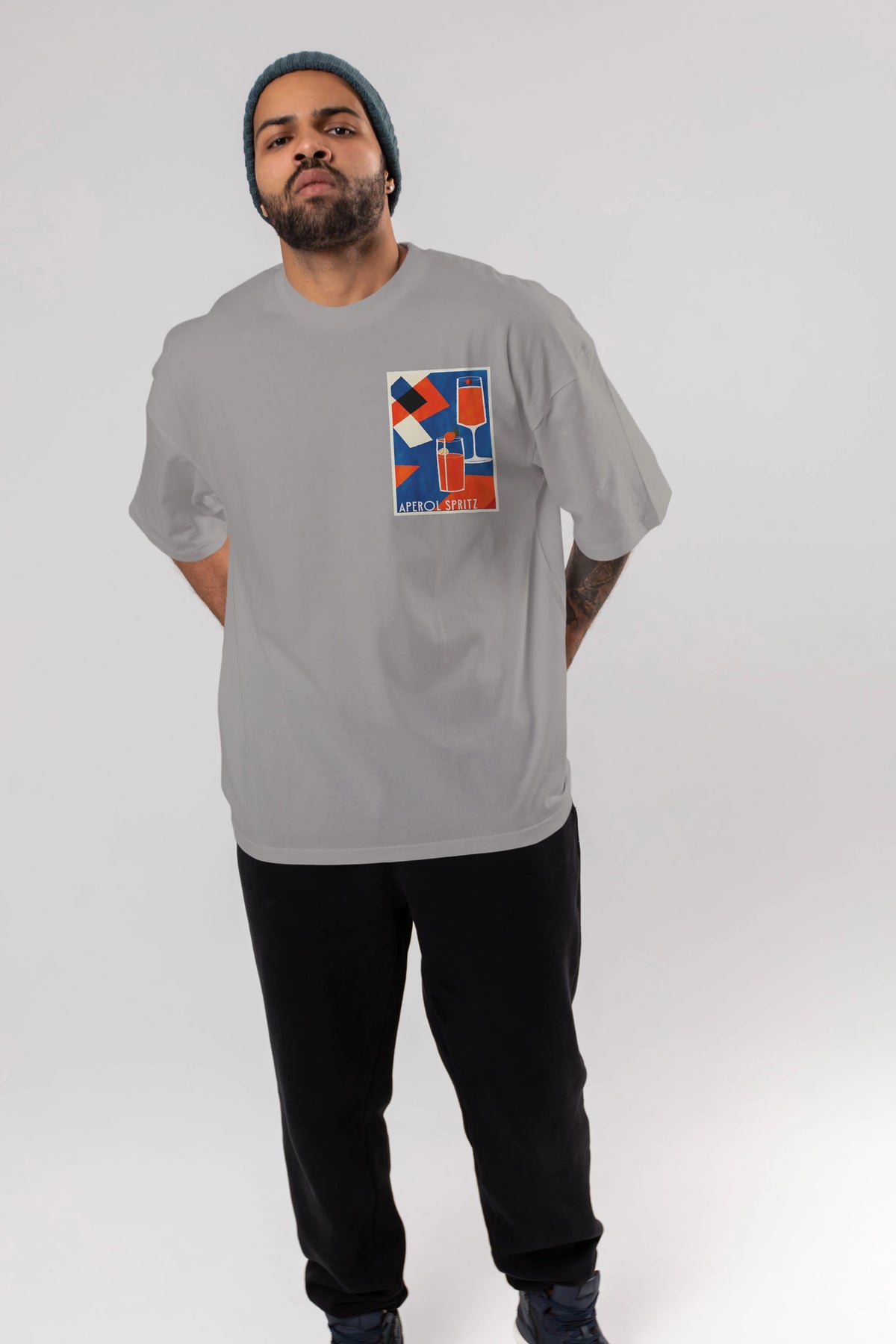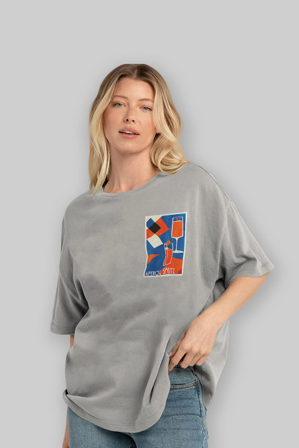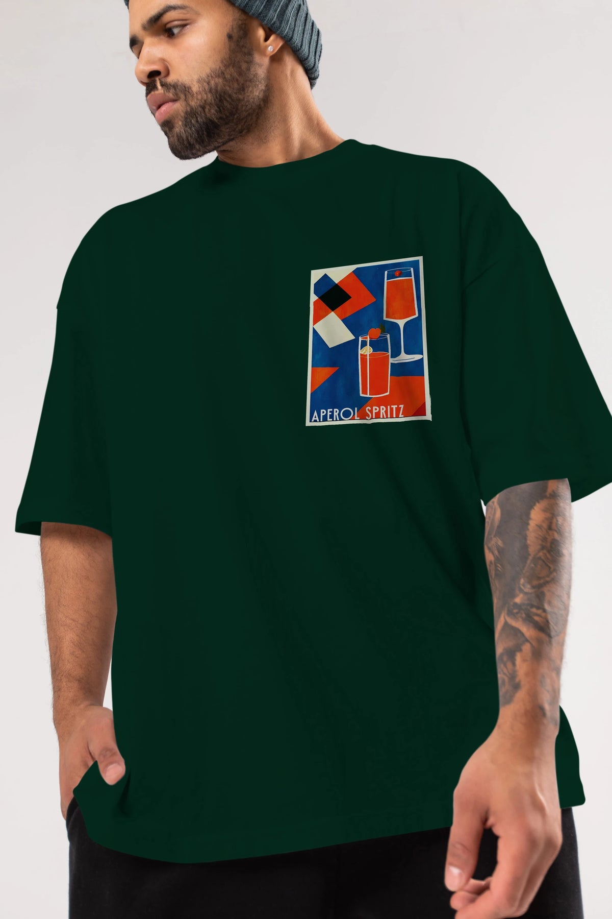 Aperol Spritz 4 Ön Sol Baskılı Oversize t-shirt Erkek Kadın Unisex %100 Pamuk Bisiklet Yaka tişort