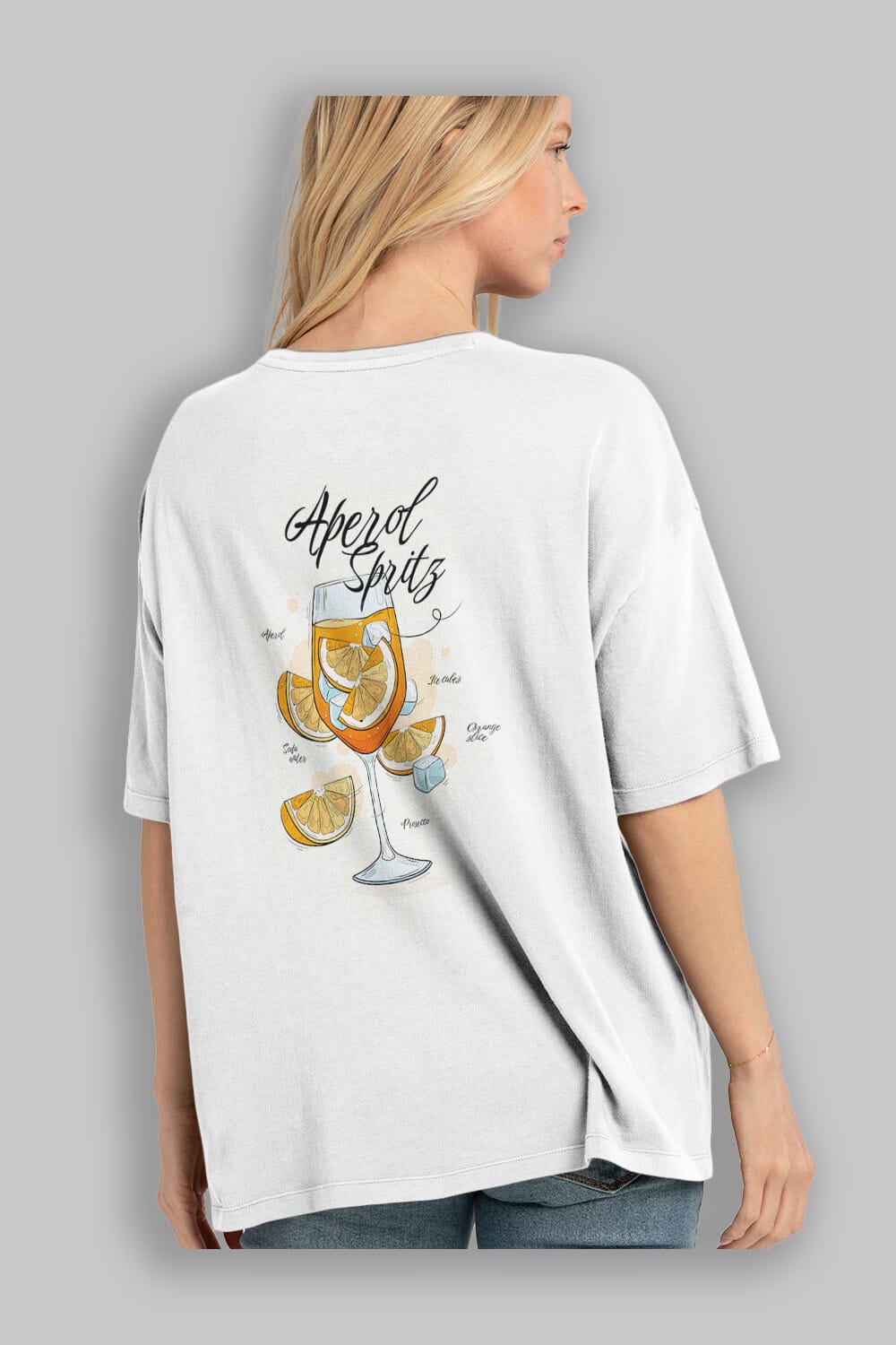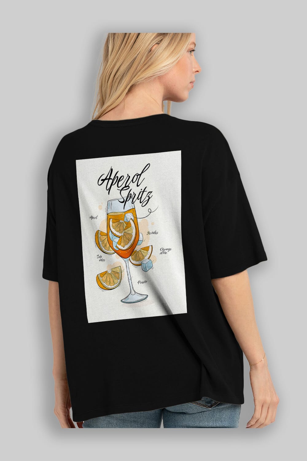 Aperol Spritz 6 Arka Baskılı Oversize t-shirt Erkek Kadın Unisex %100 Pamuk Bisiklet Yaka tişort