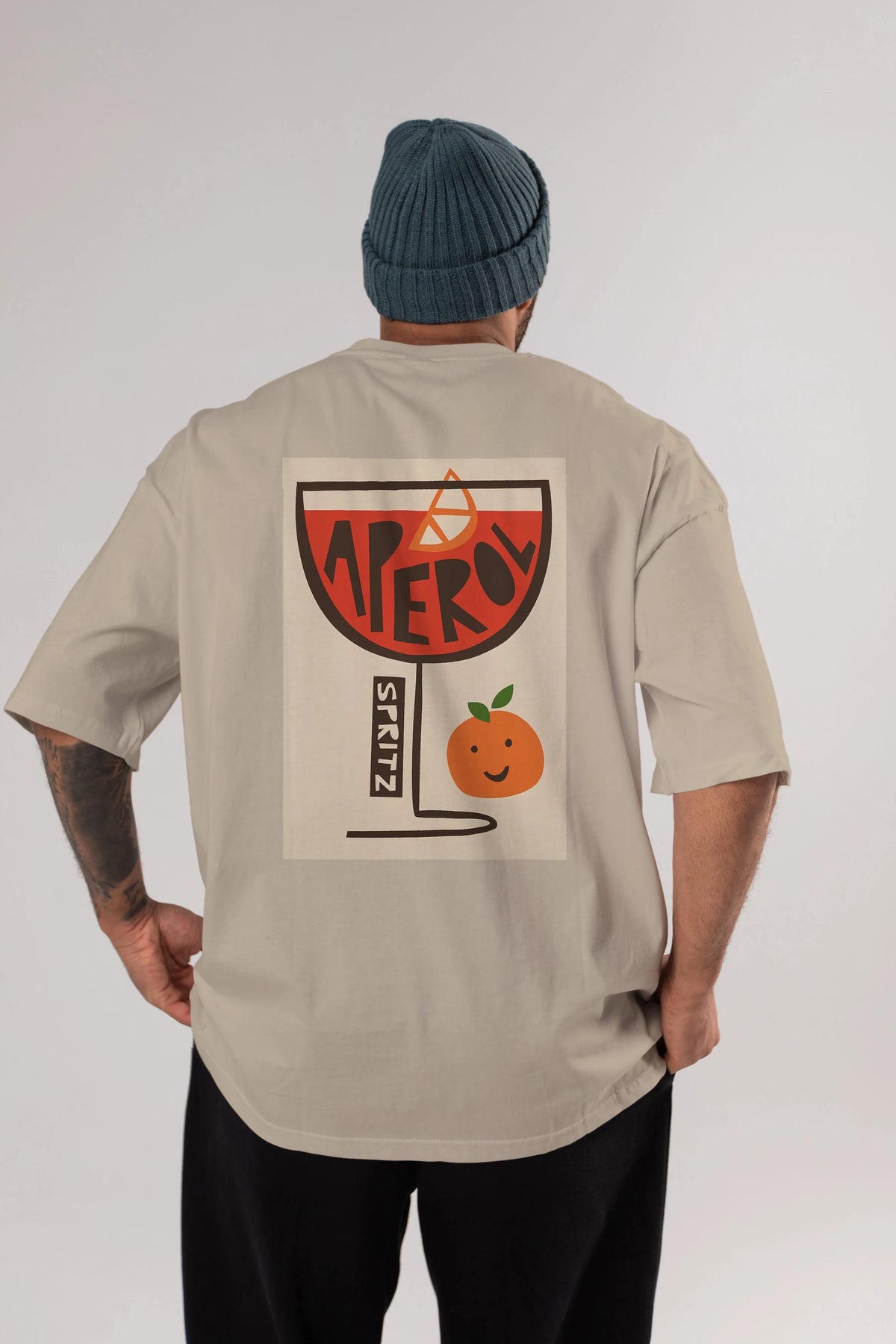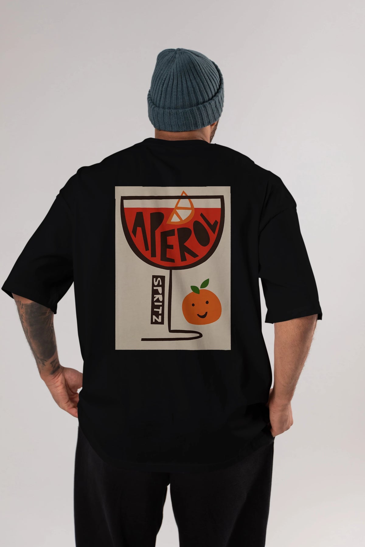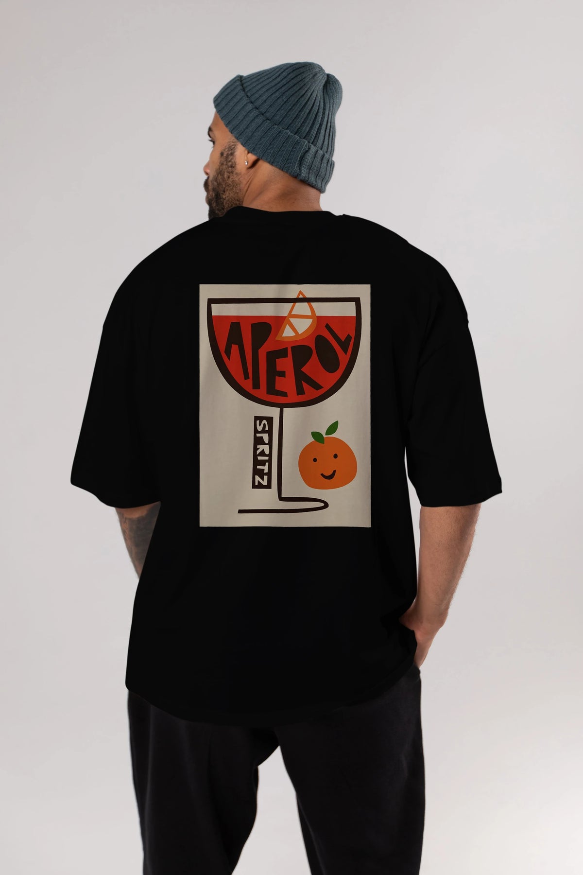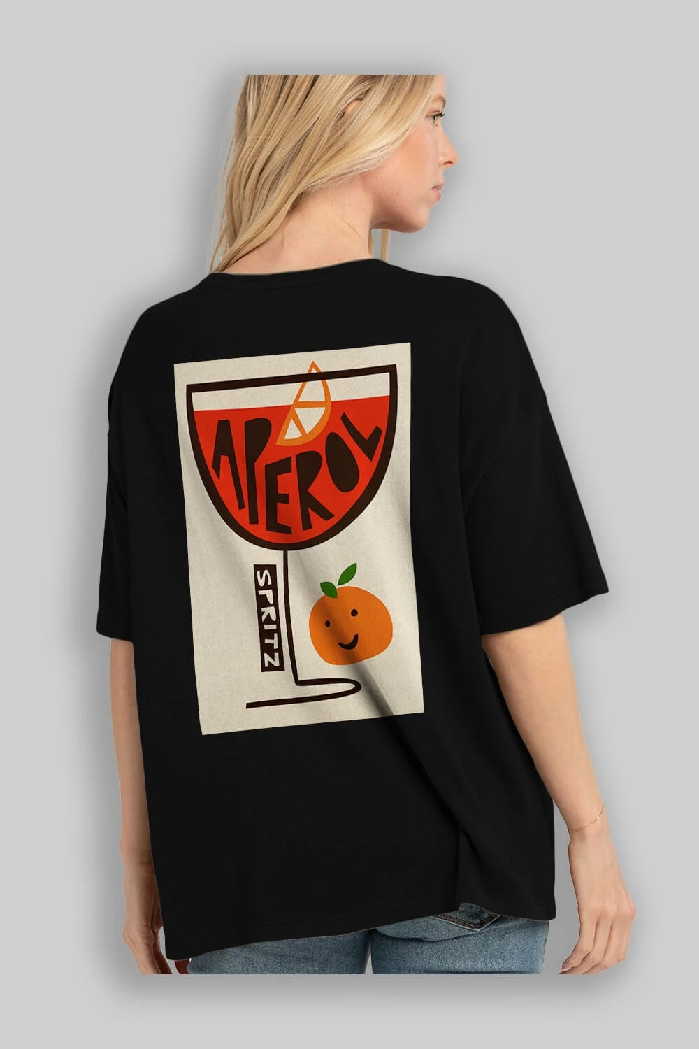 Aperol Spritz 9 Arka Baskılı Oversize t-shirt Erkek Kadın Unisex %100 Pamuk Bisiklet Yaka tişort