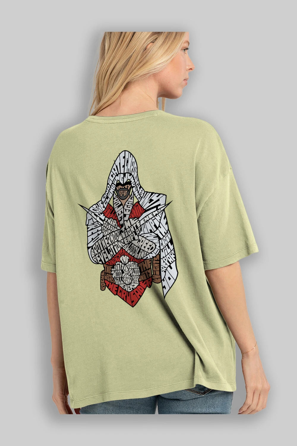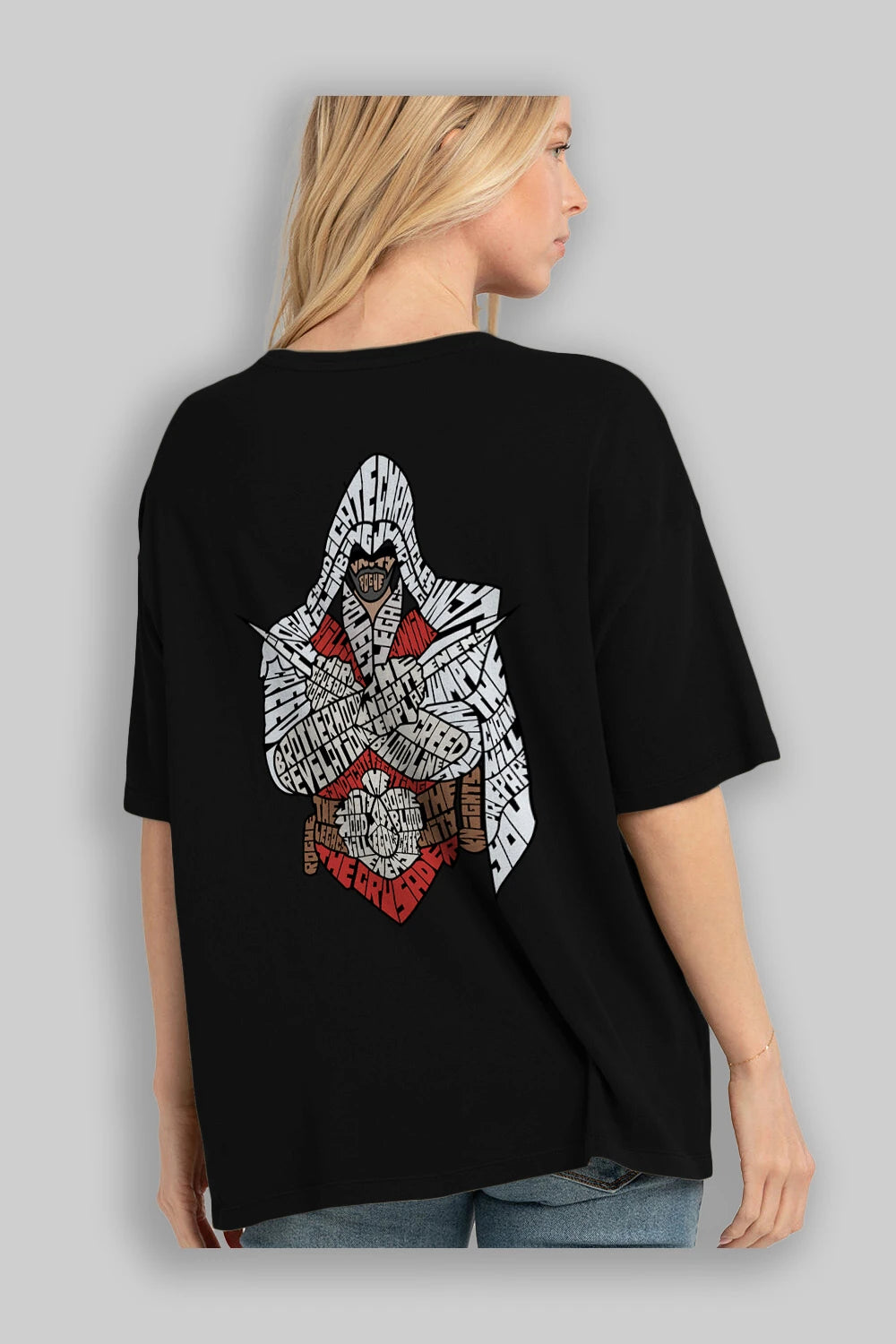 Assassins Arka Baskılı Oversize t-shirt %100 pamuk Erkek Kadın Unisex