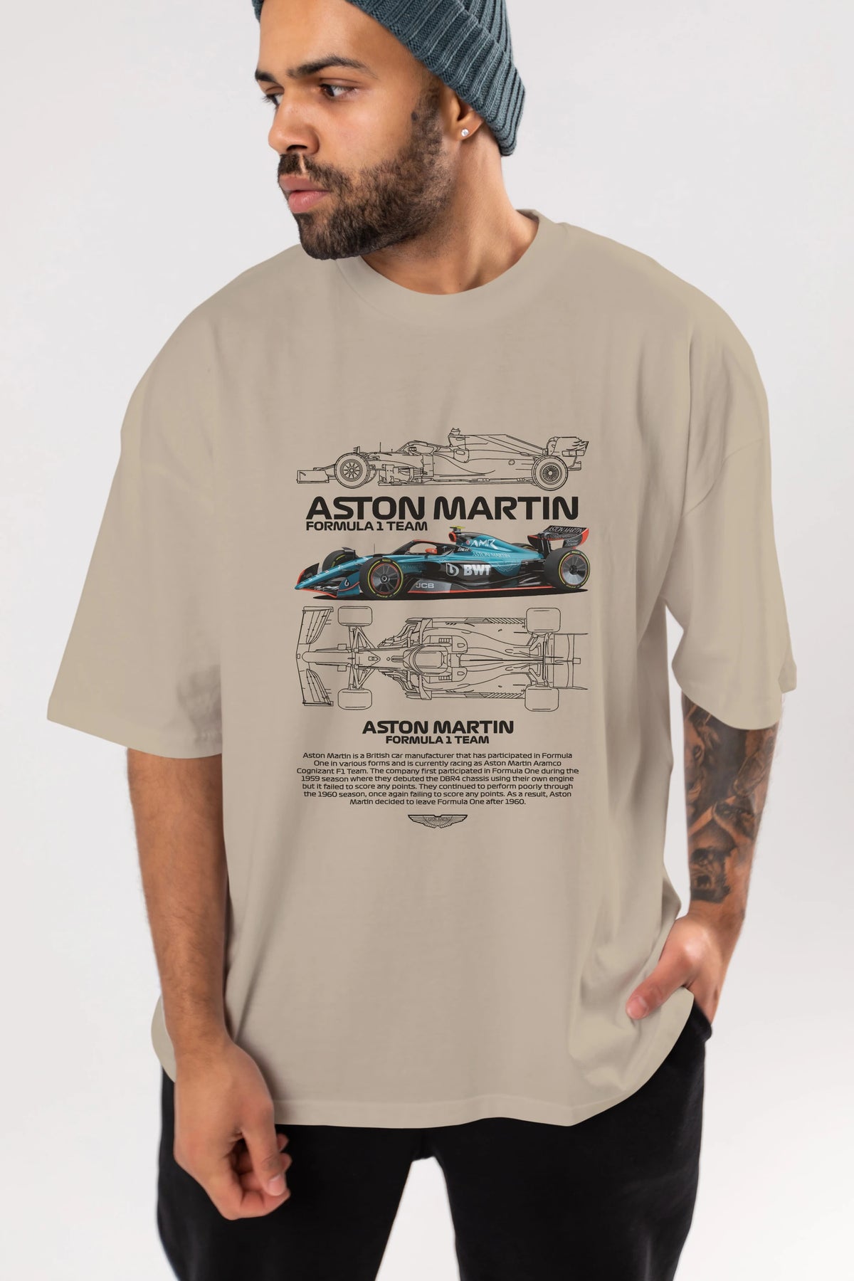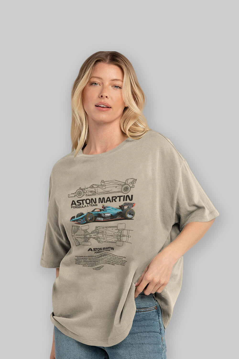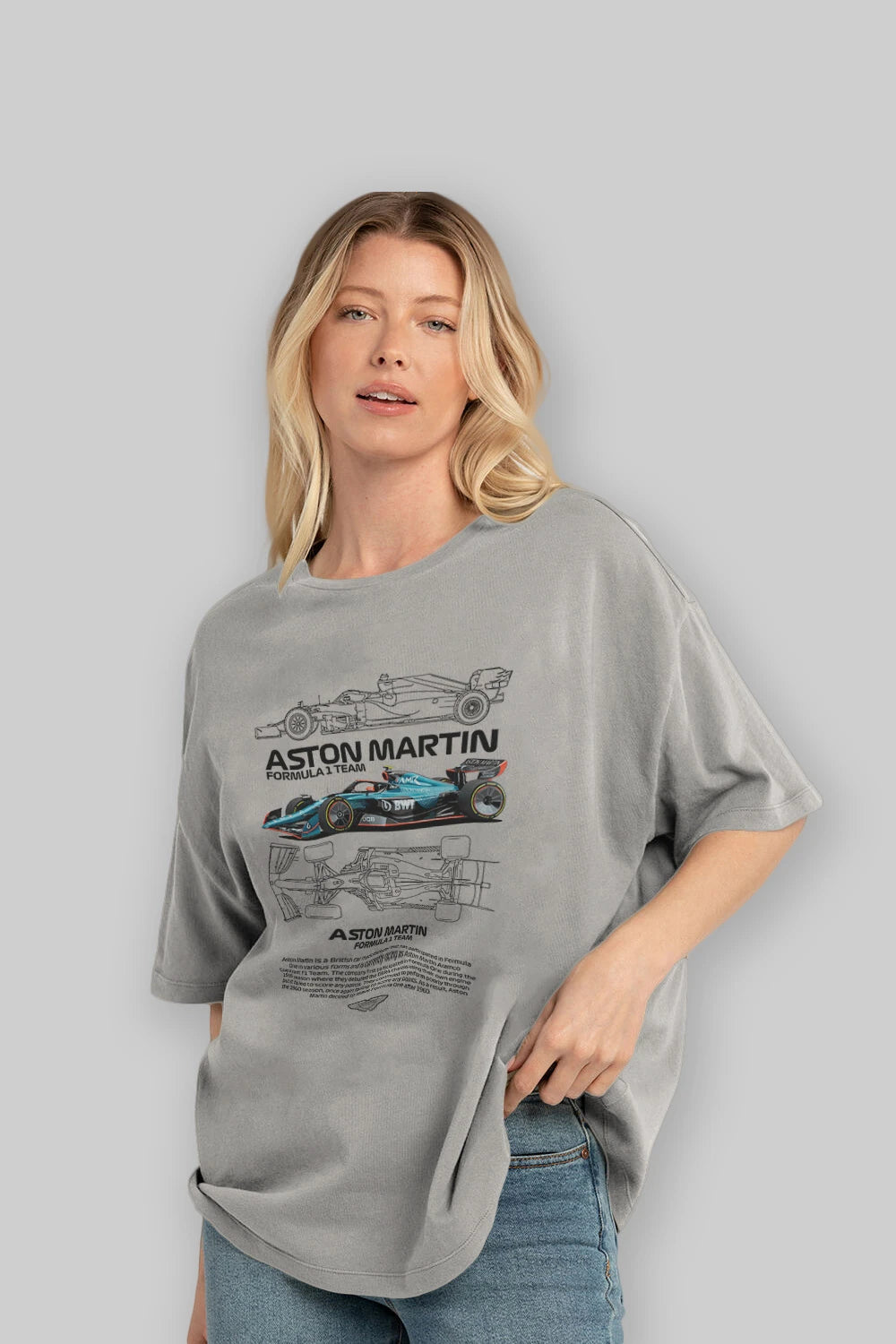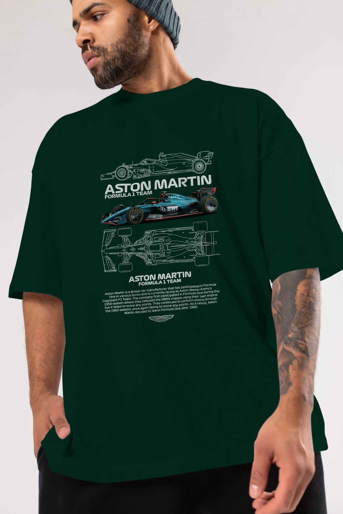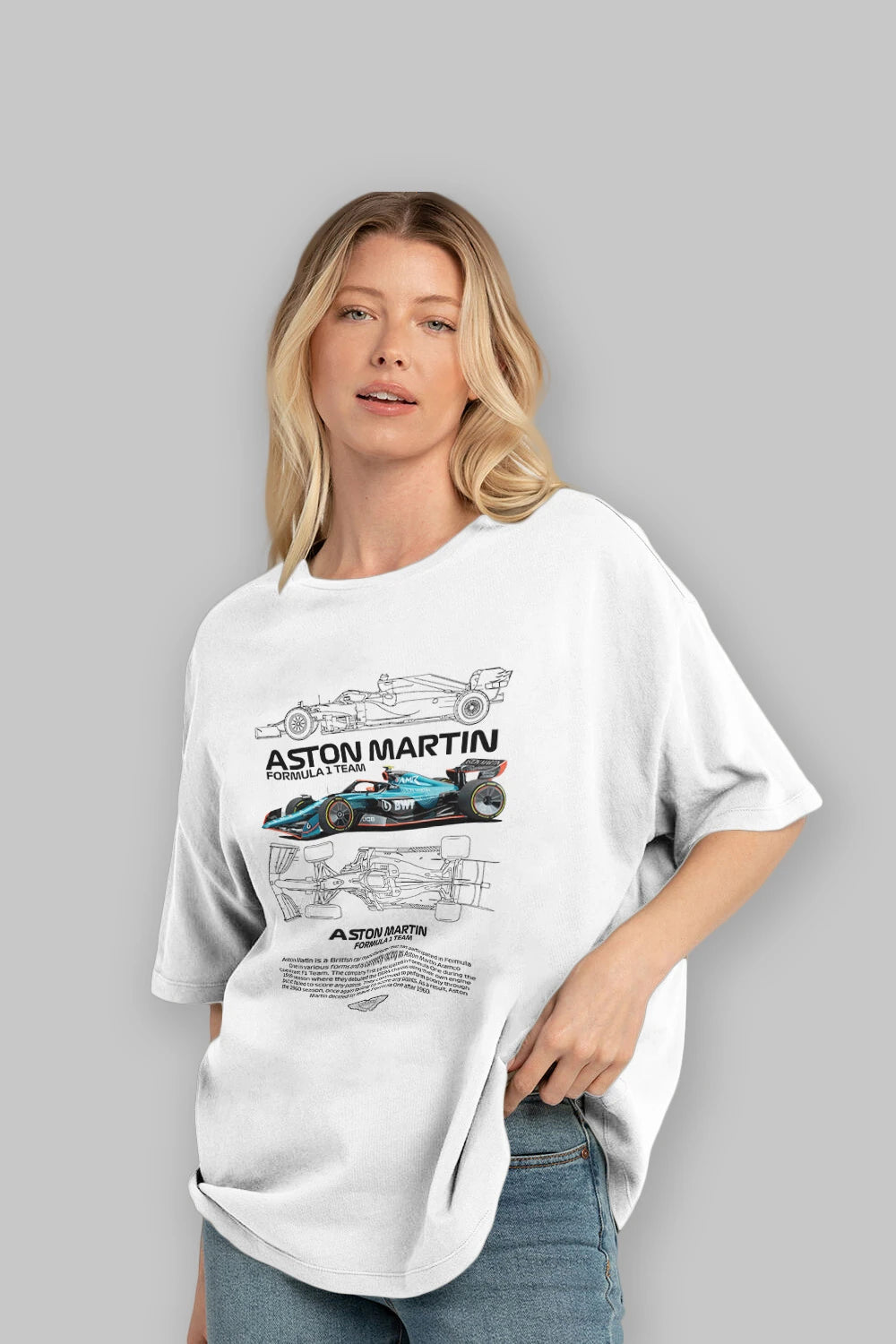 ASTON MARTIN FORMULA 1 TEAM Ön Baskılı Oversize t-shirt Erkek Kadın Unisex %100 Pamuk Bisiklet Yaka tişort