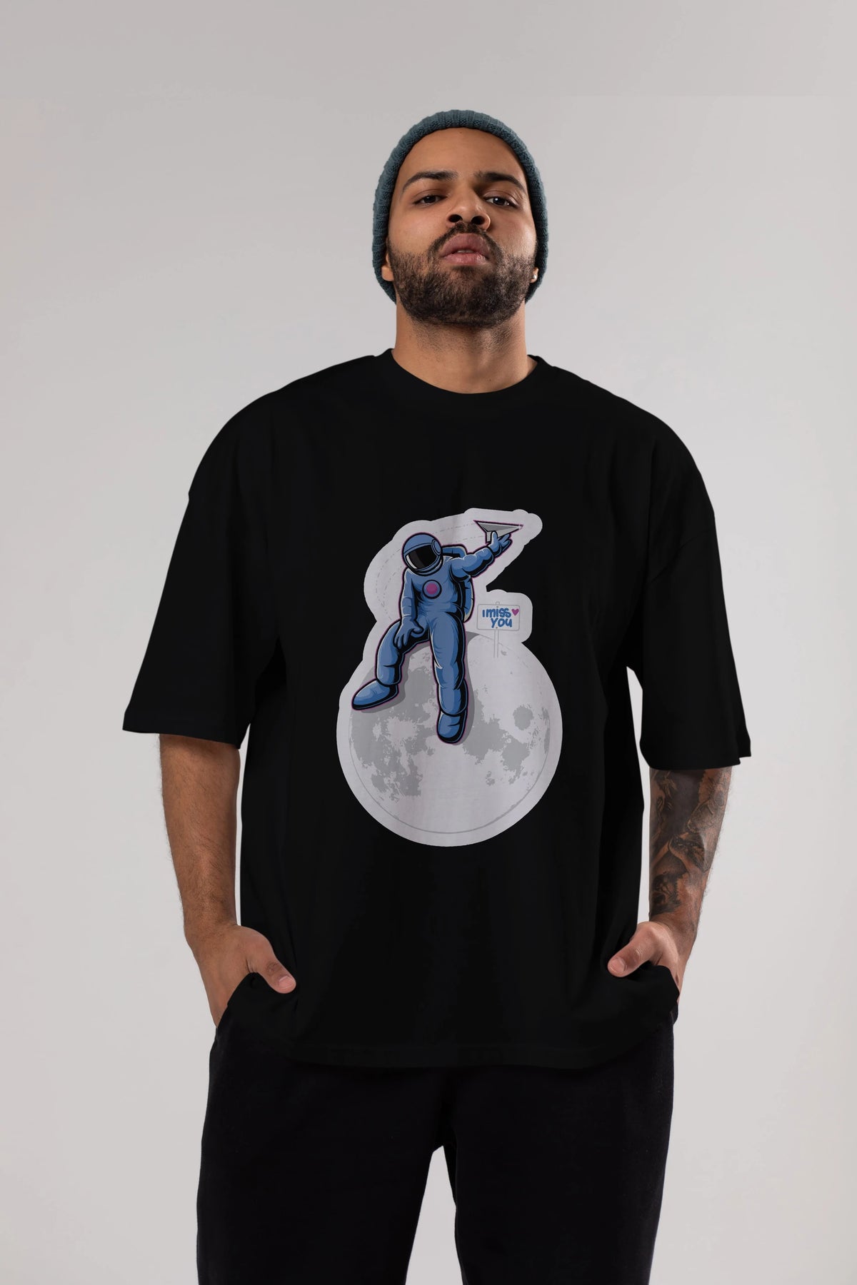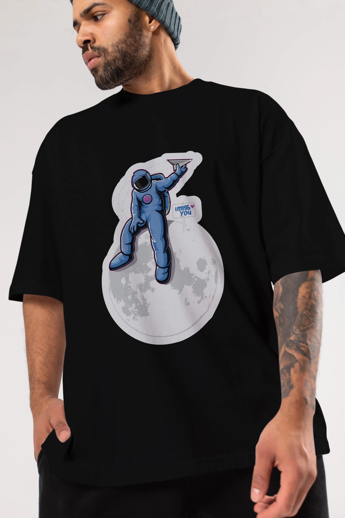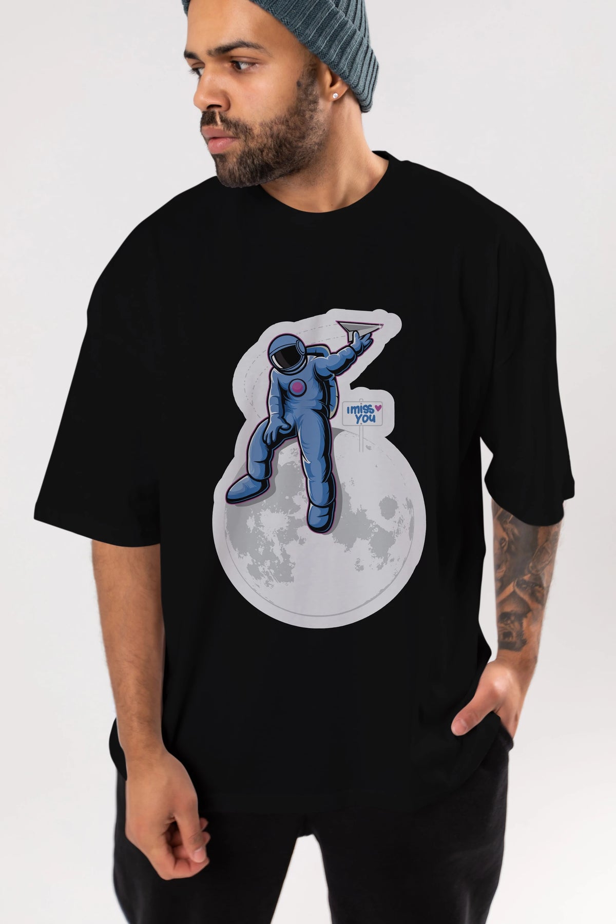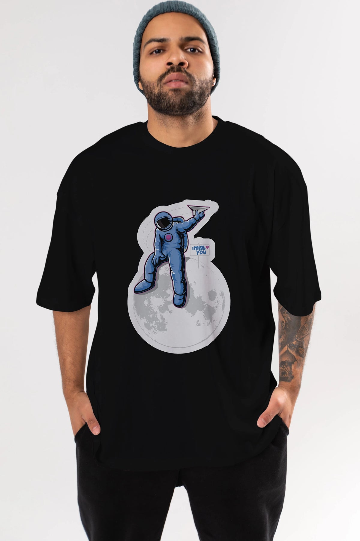 Astro Missing Earth Sticker Ön Baskılı Oversize t-shirt Erkek Kadın Unisex