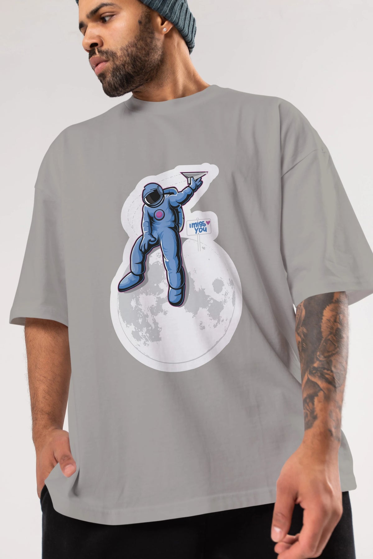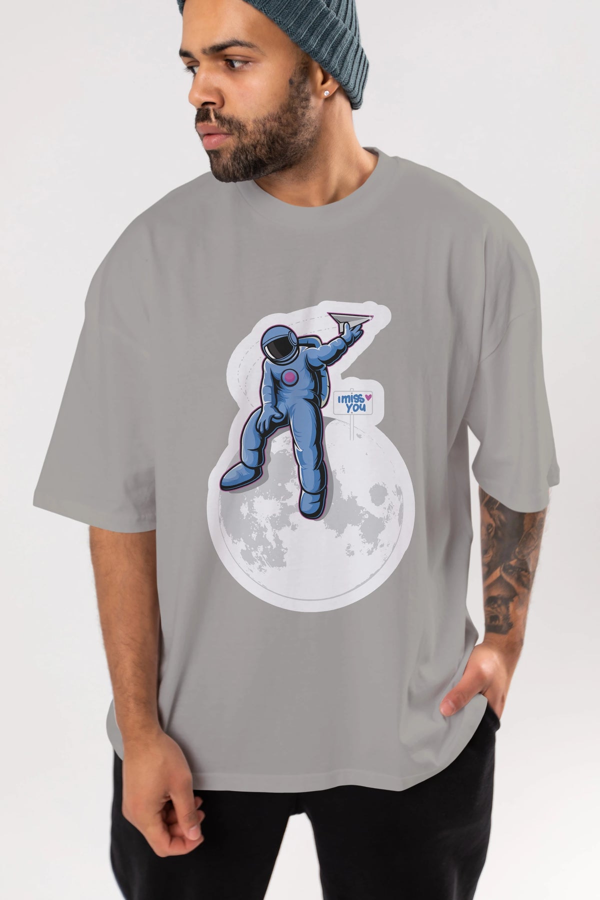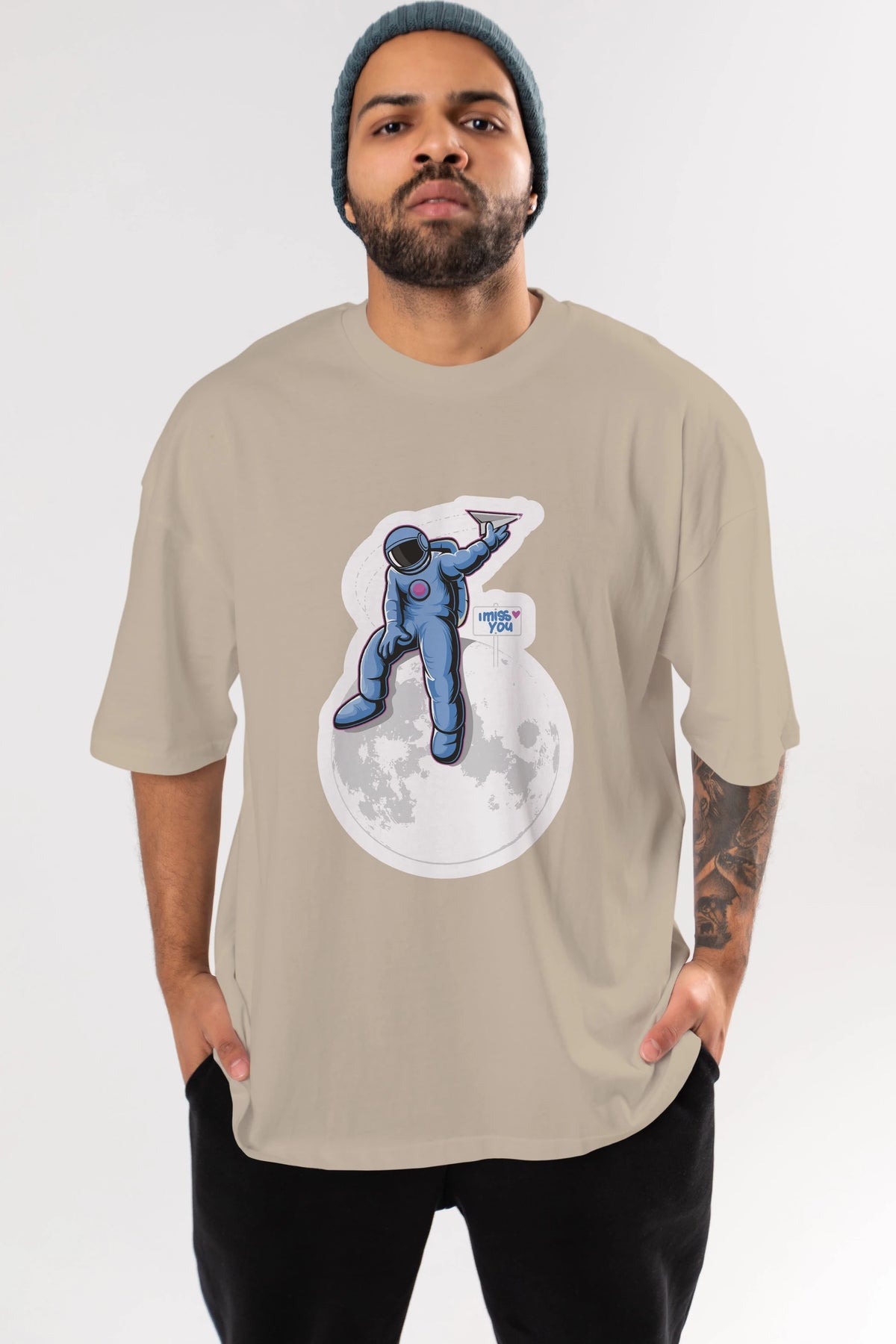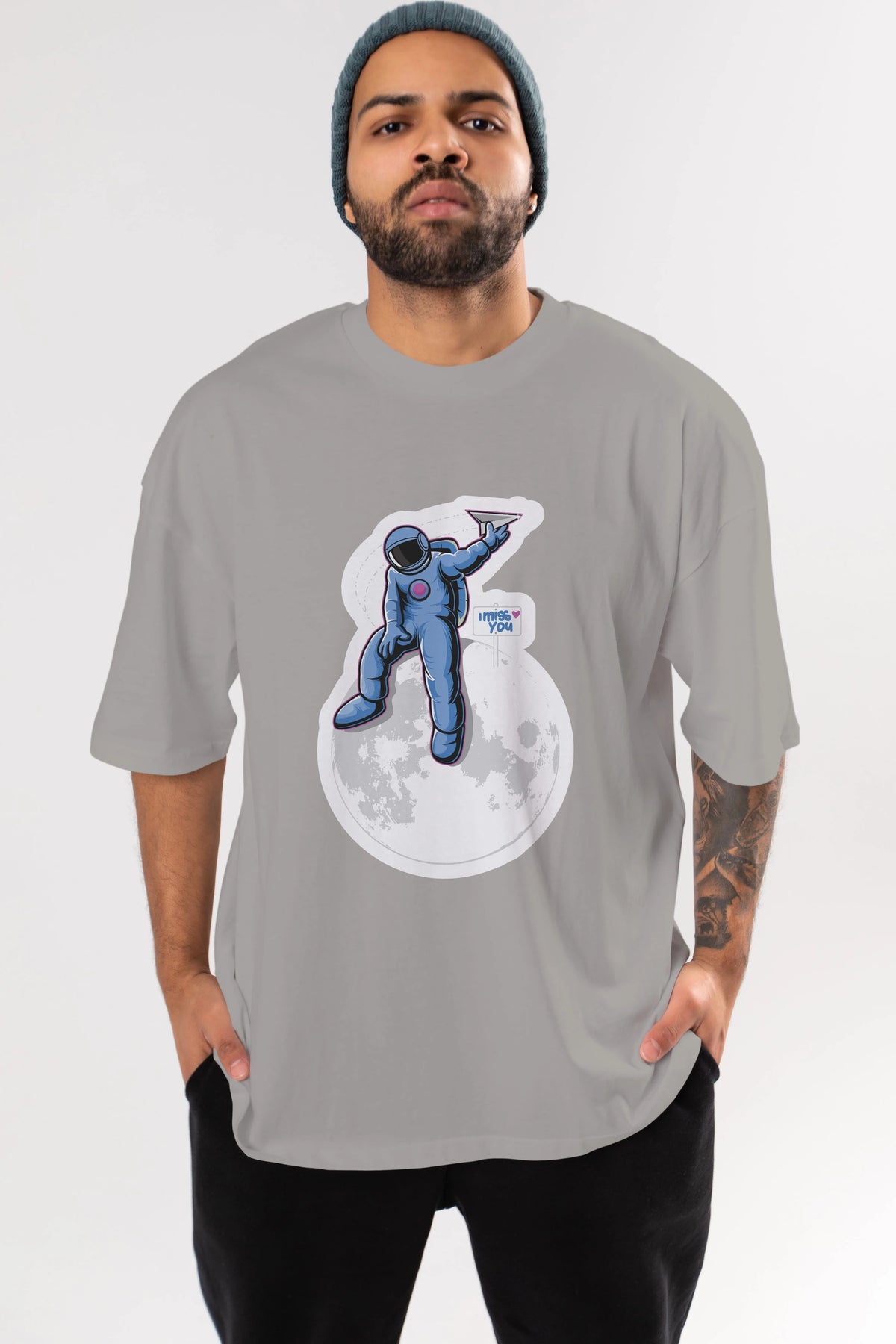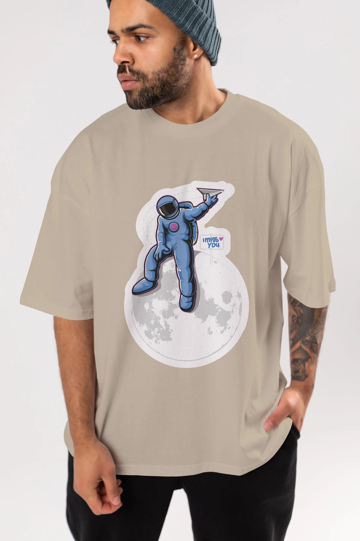 Astro Missing Earth Sticker Ön Baskılı Oversize t-shirt Erkek Kadın Unisex