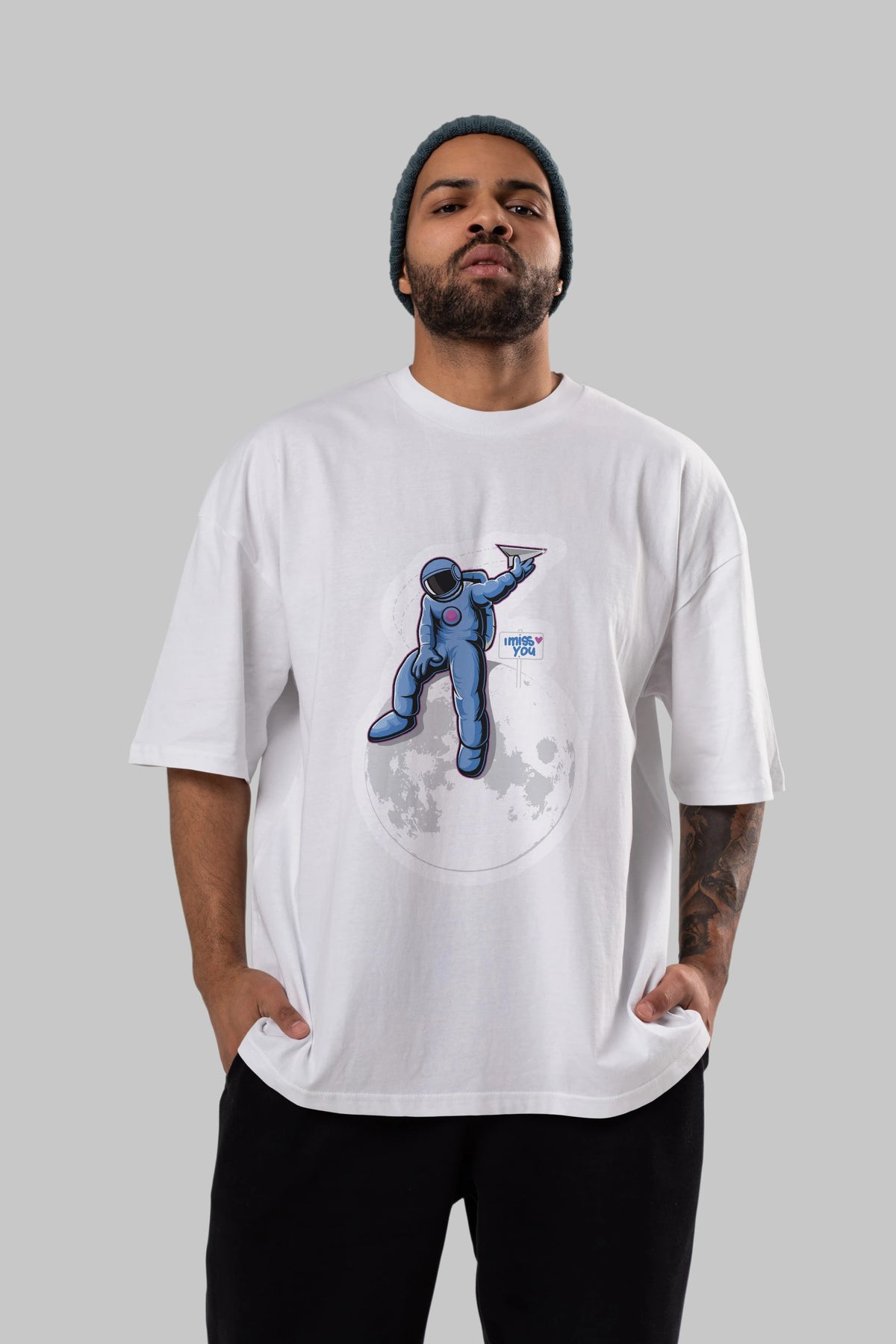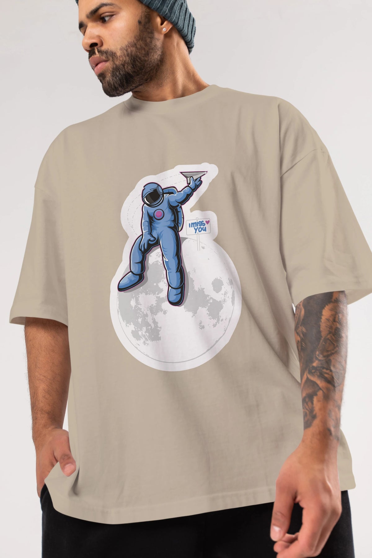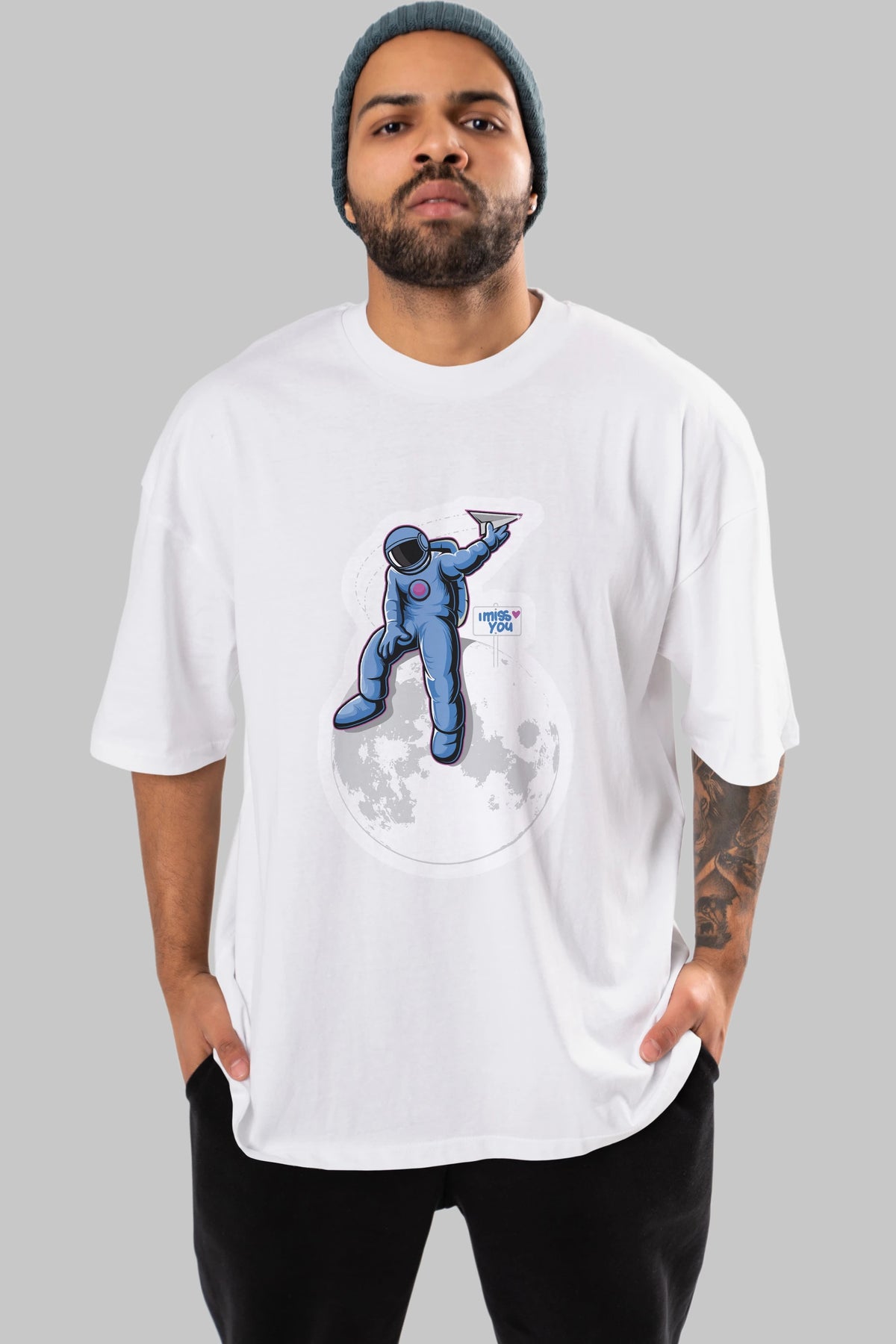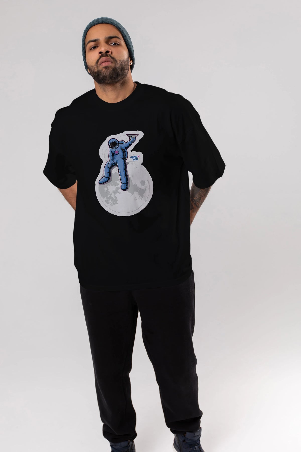 Astro Missing Earth Sticker Ön Baskılı Oversize t-shirt Erkek Kadın Unisex