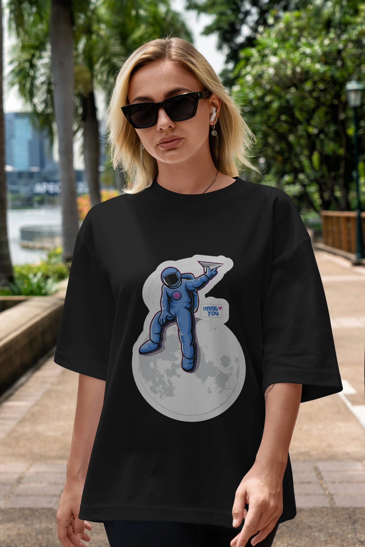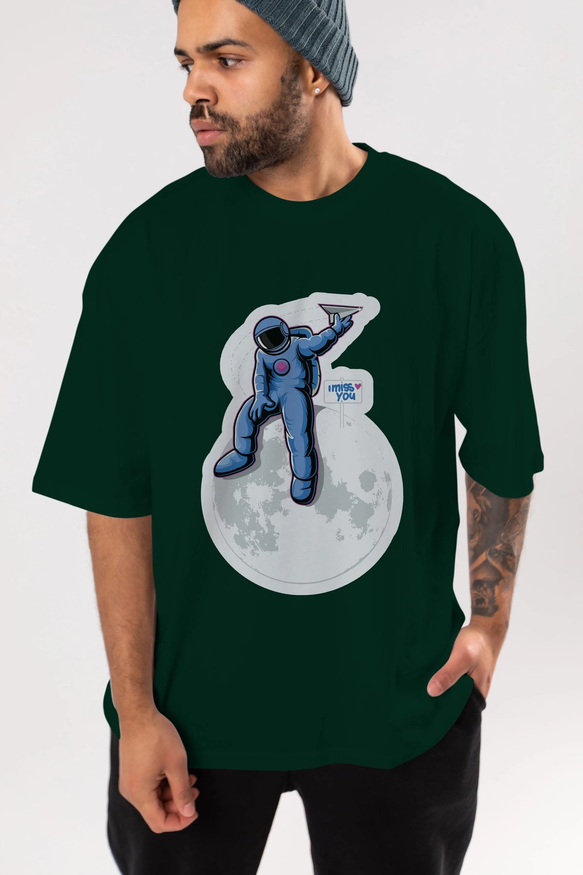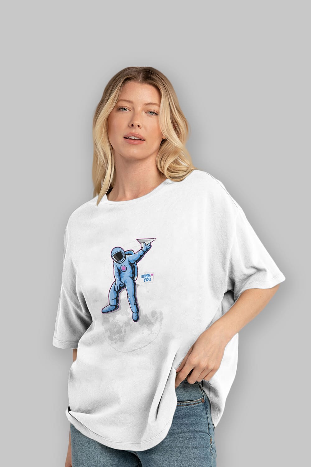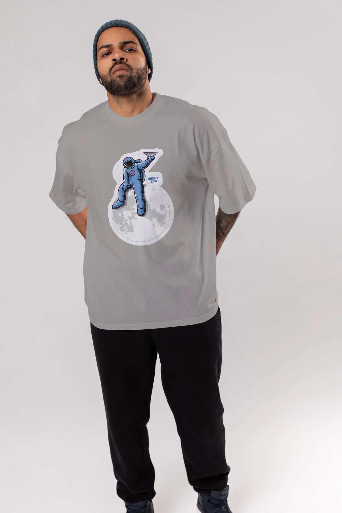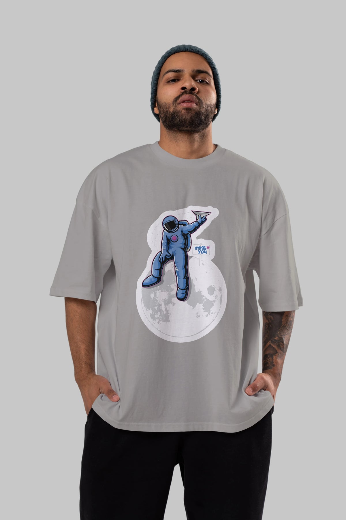 Astro Missing Earth Sticker Ön Baskılı Oversize t-shirt Erkek Kadın Unisex