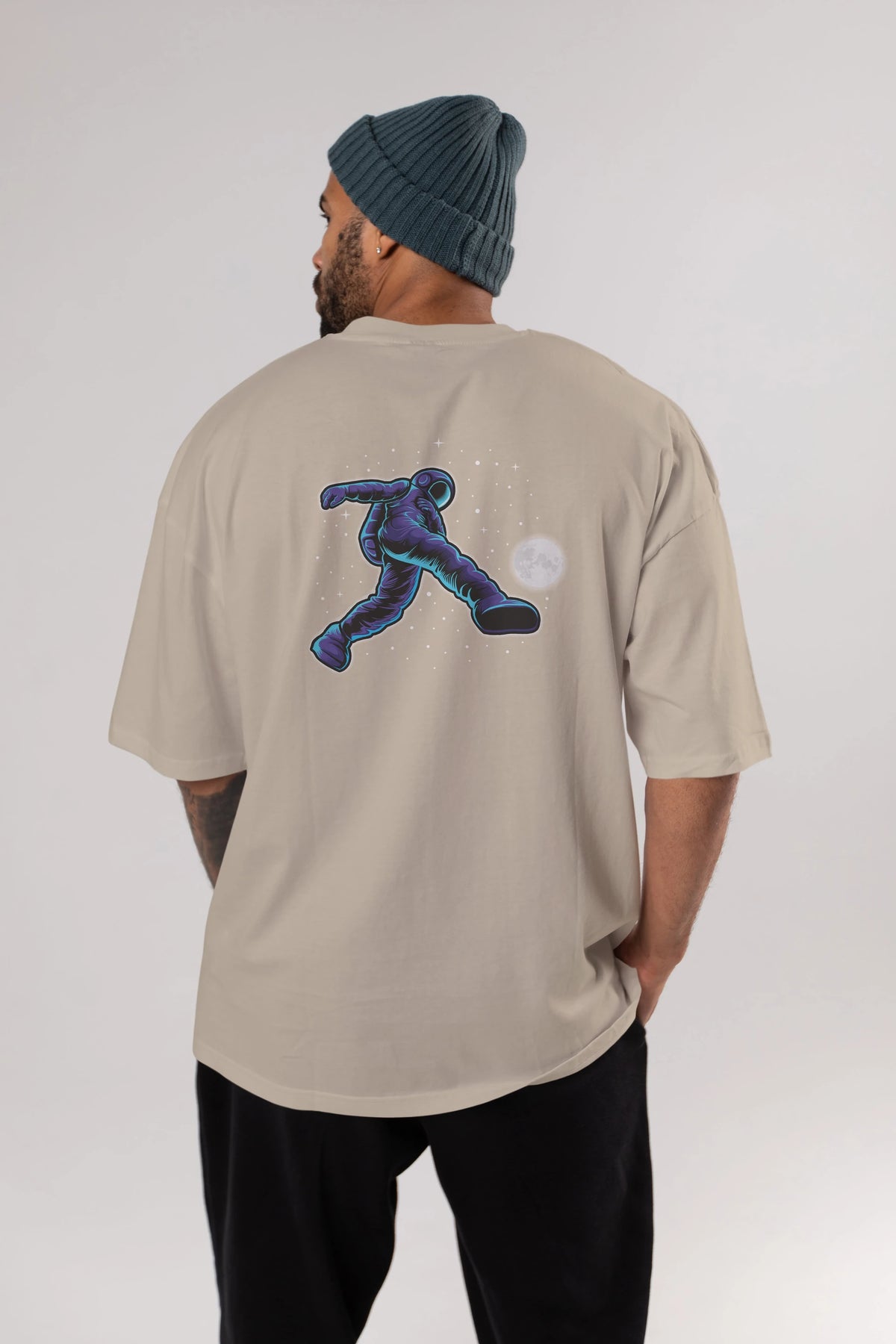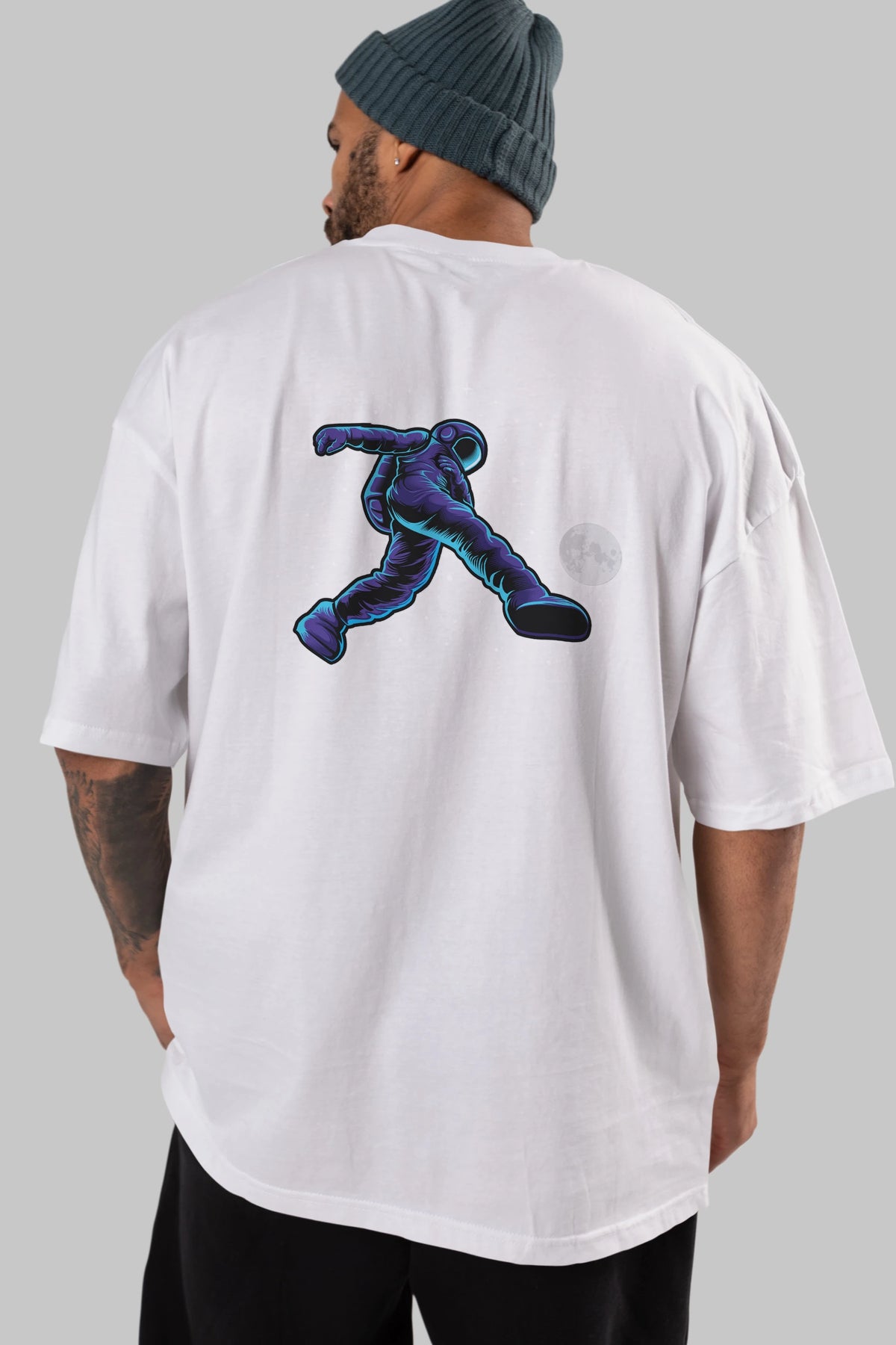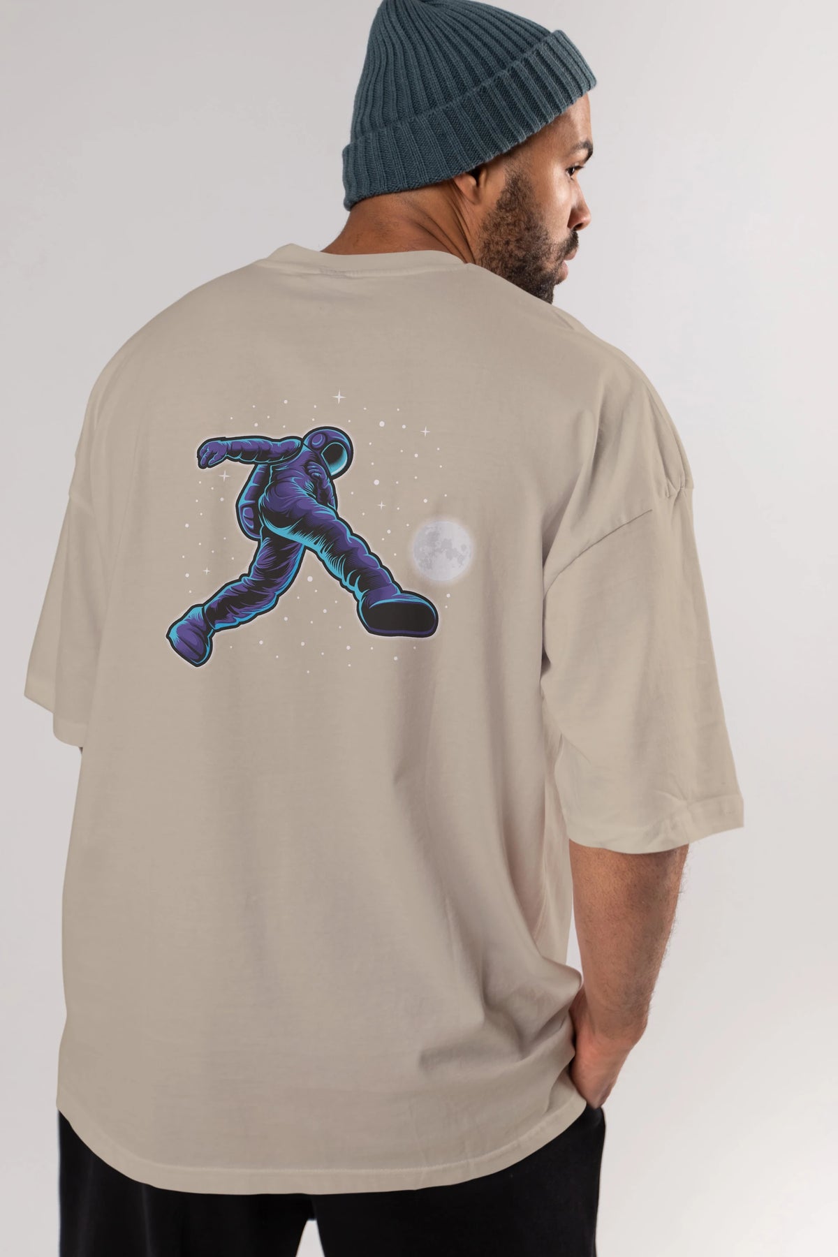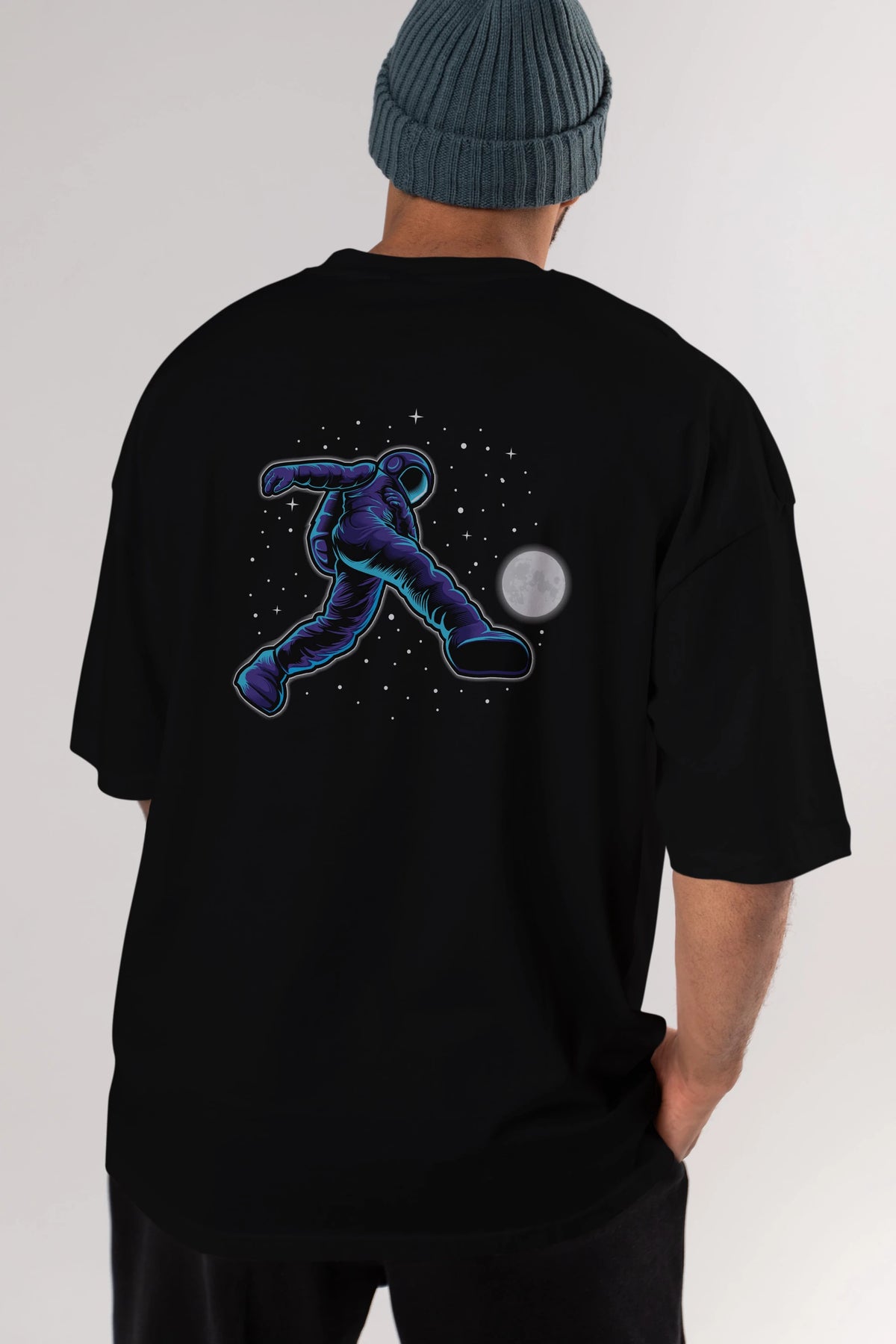 Astroball in Space Arka Baskılı Oversize t-shirt Erkek Kadın Unisex
