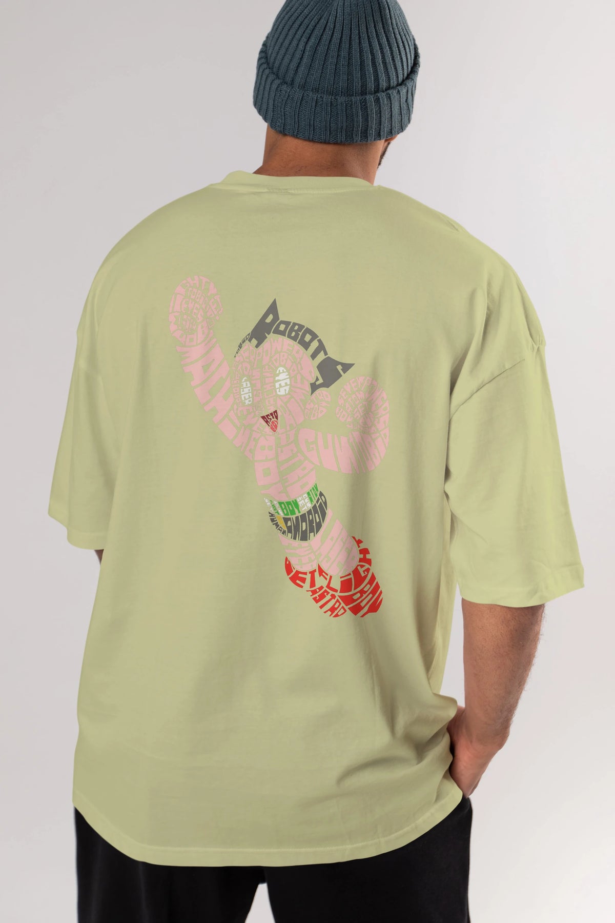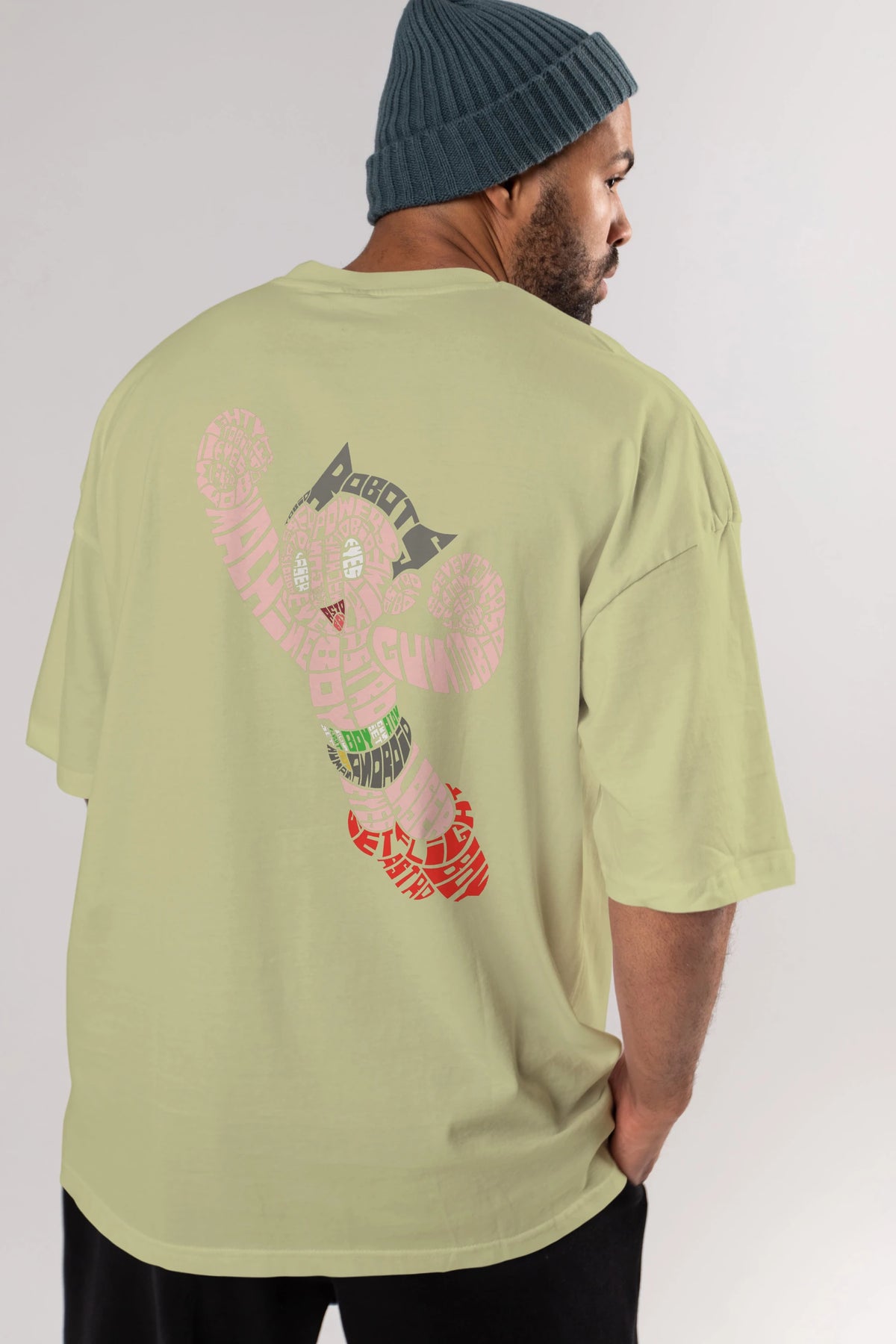 Hem erkekler hem de kadınlar için uygun, taze, modern bir baskıya sahip baskılı oversize t-shirt.