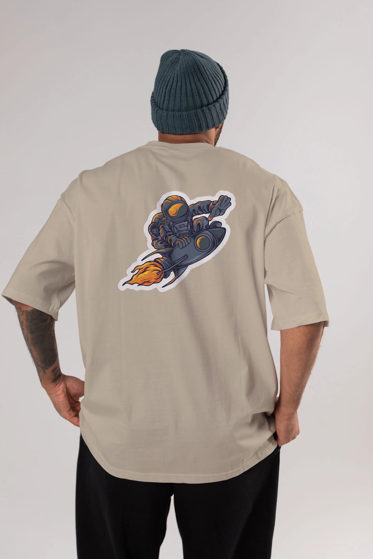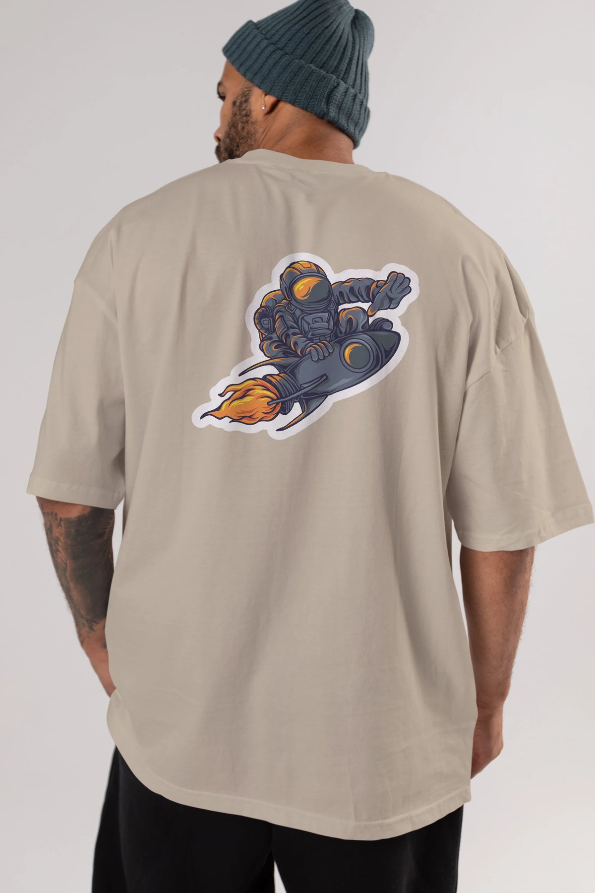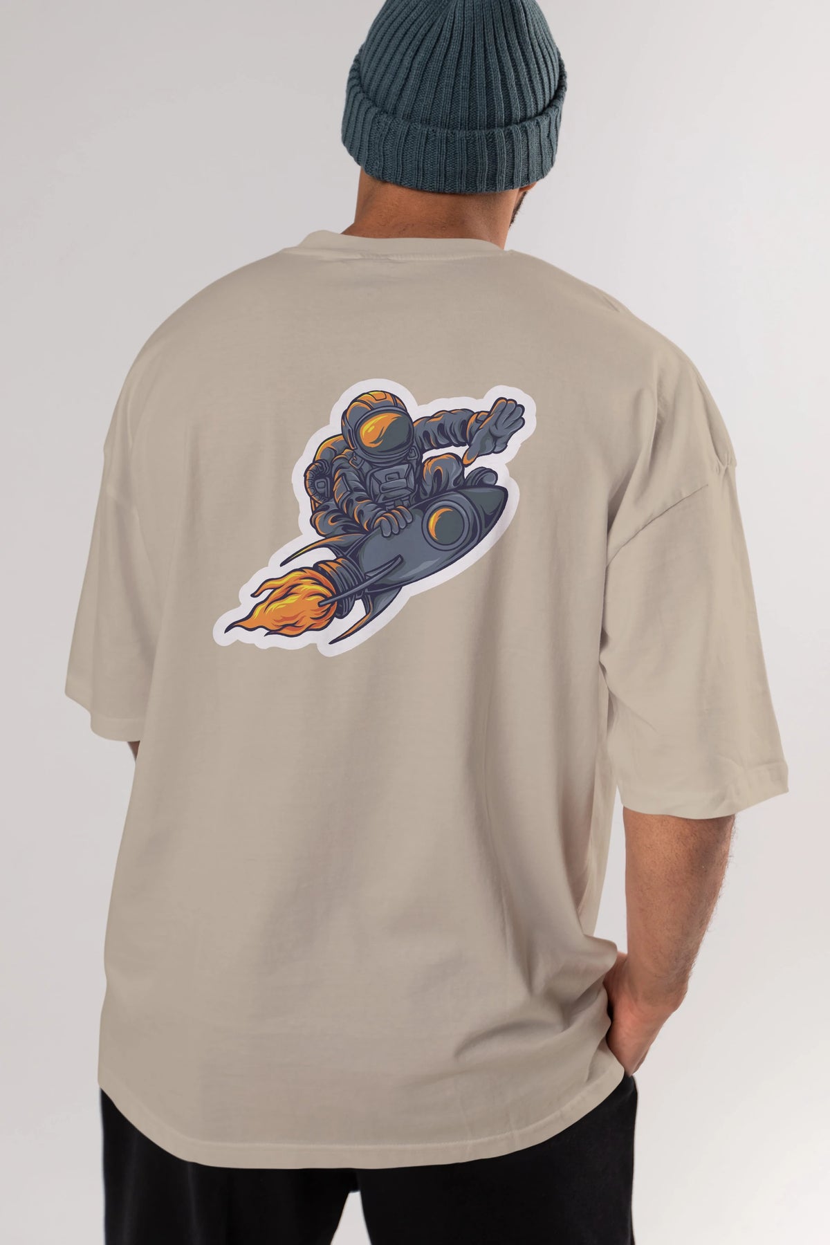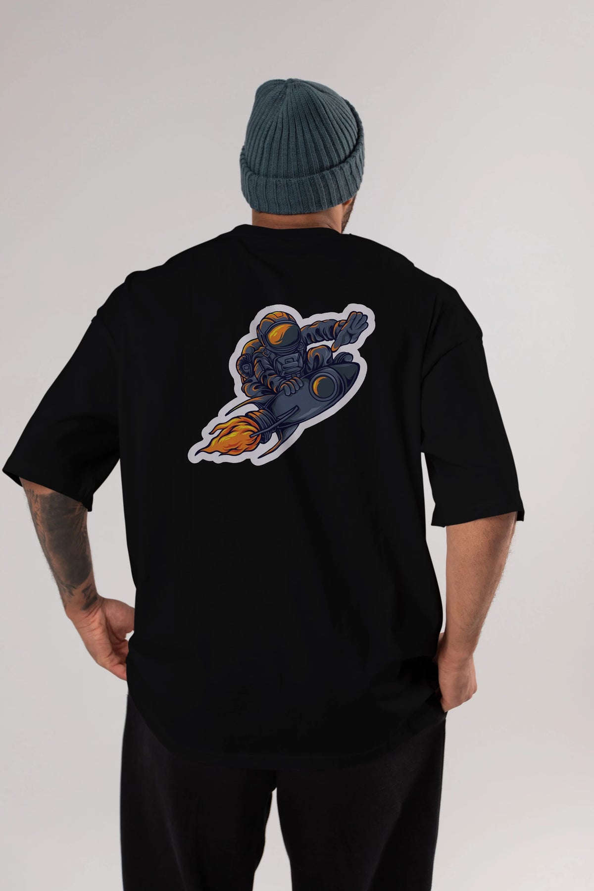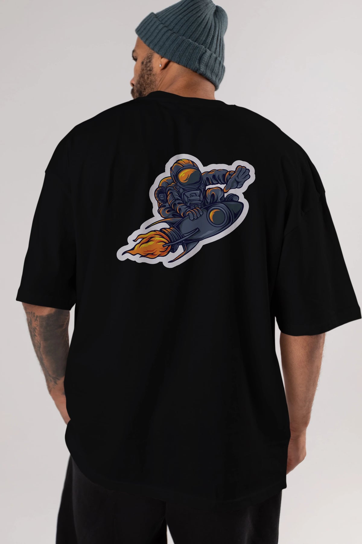 Astrocket Illustration Sticker Arka Baskılı Oversize t-shirt Erkek Kadın Unisex