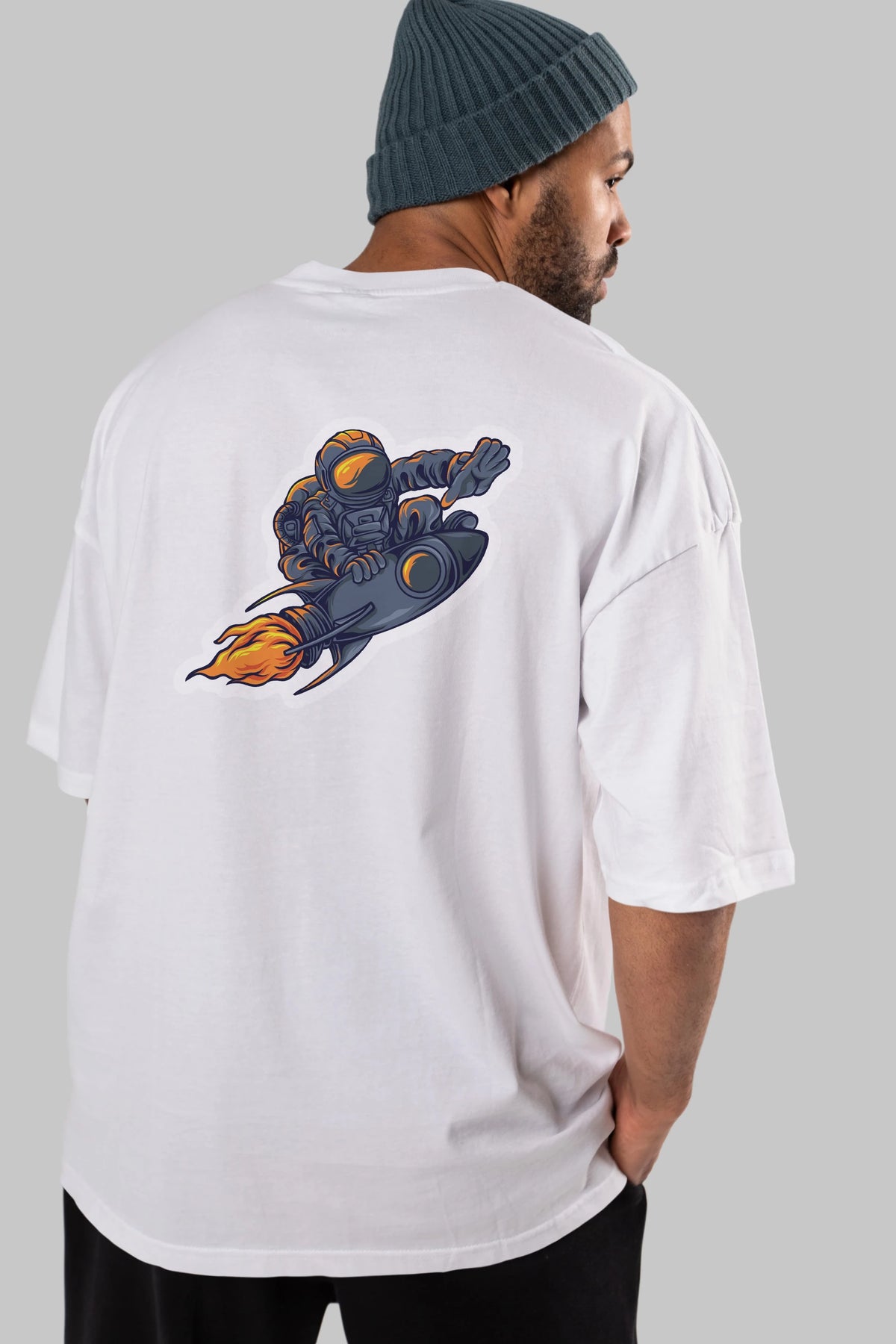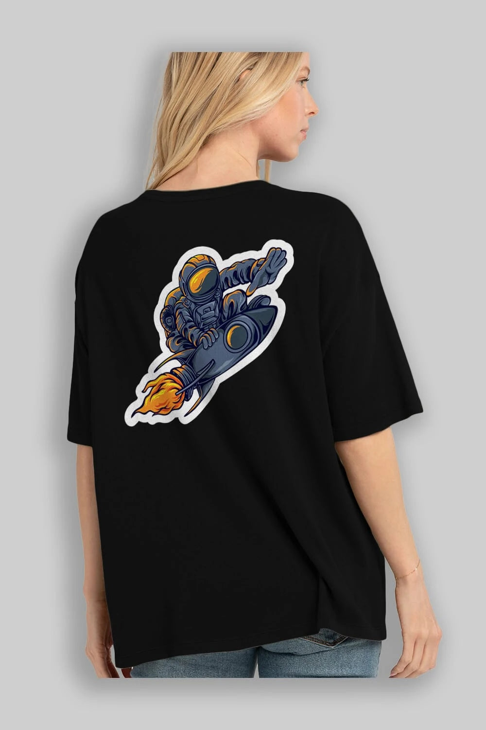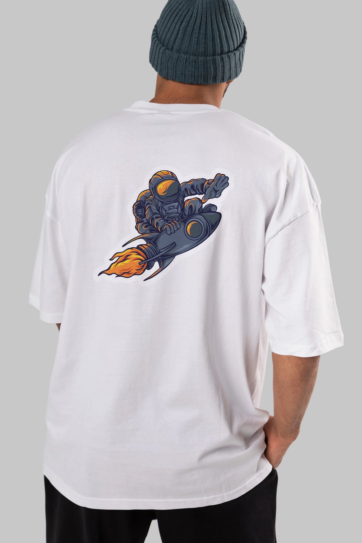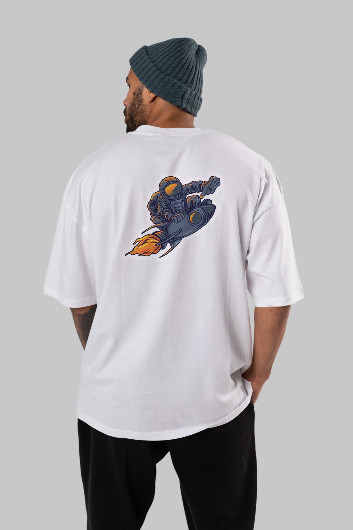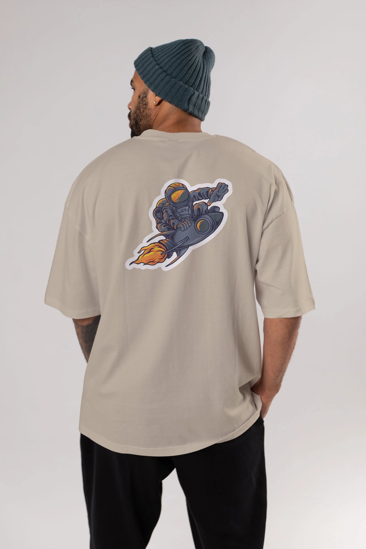 Astrocket Illustration Sticker Arka Baskılı Oversize t-shirt Erkek Kadın Unisex