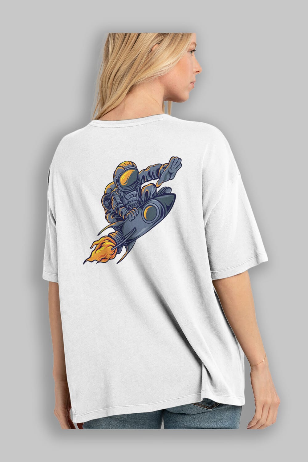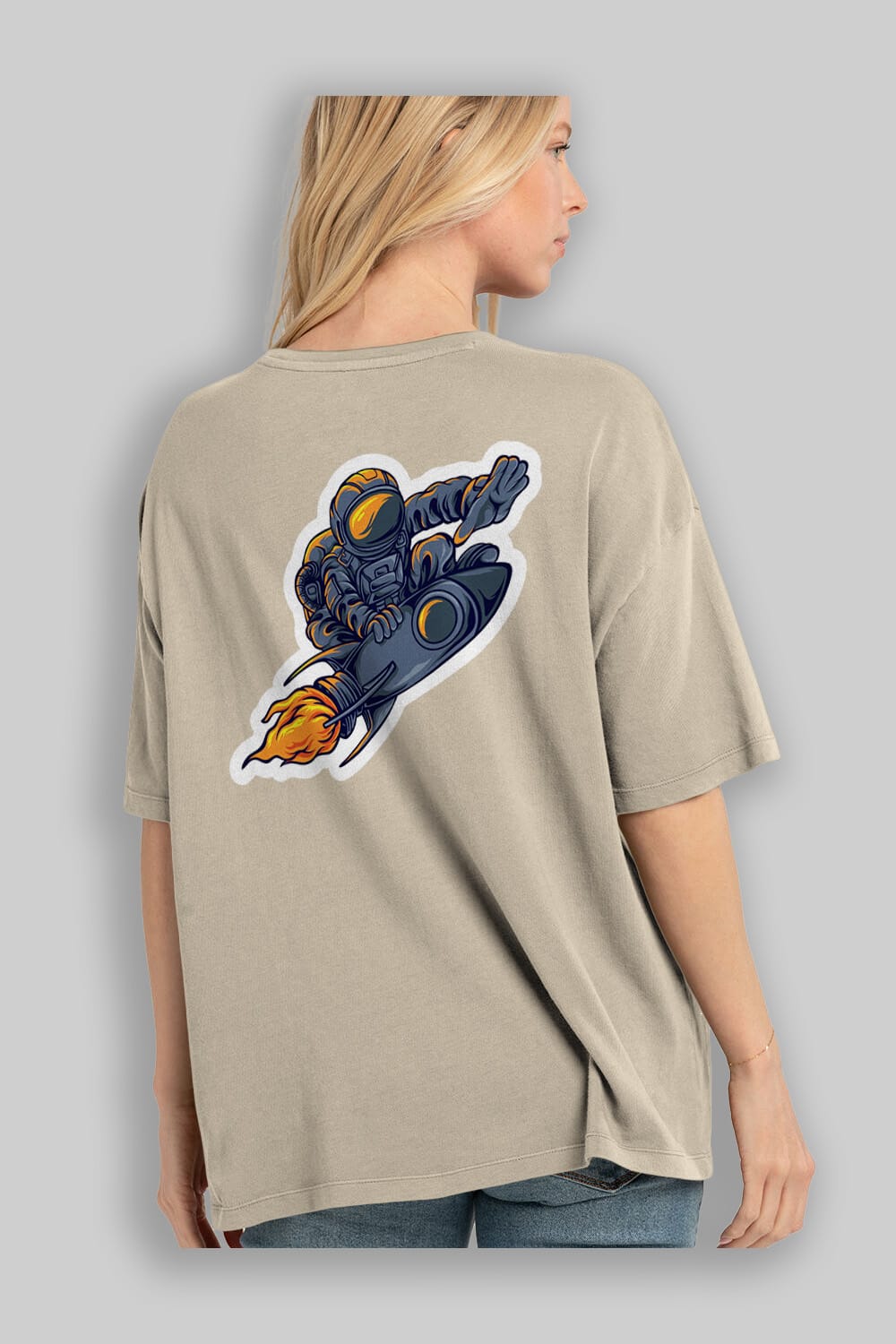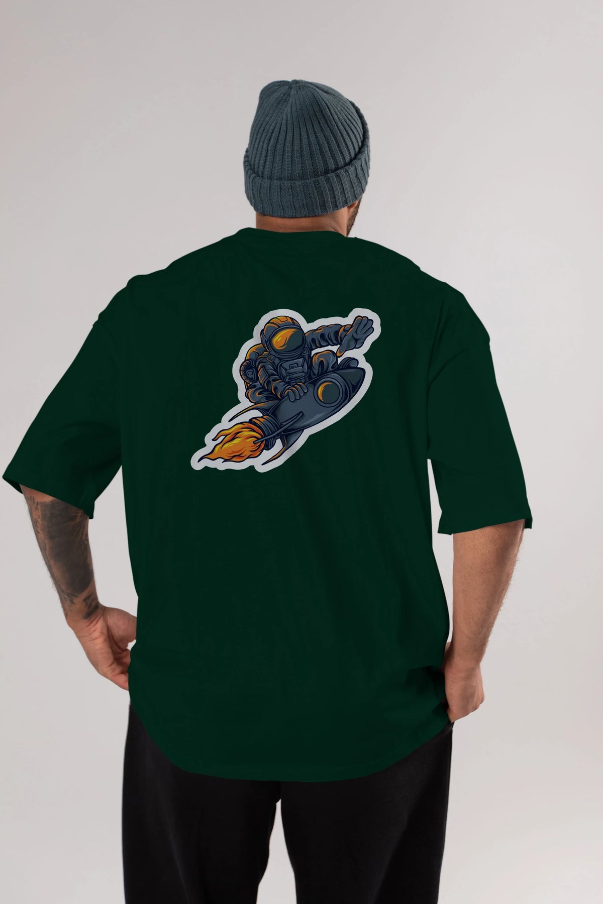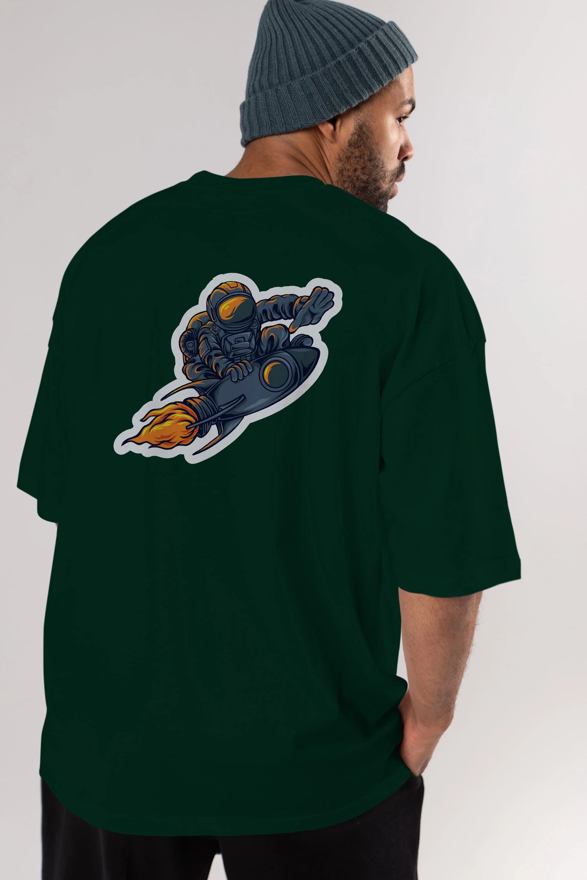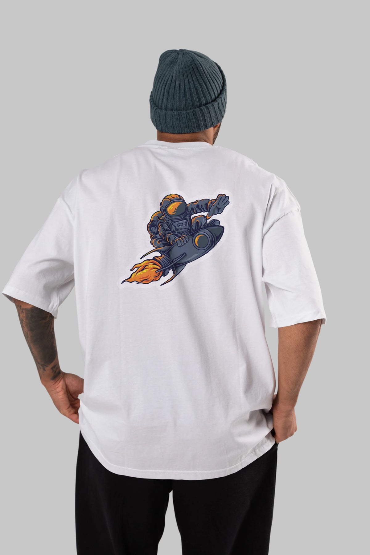 Astrocket Illustration Sticker Arka Baskılı Oversize t-shirt Erkek Kadın Unisex