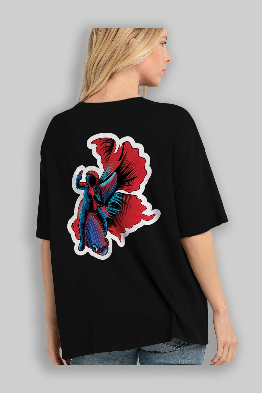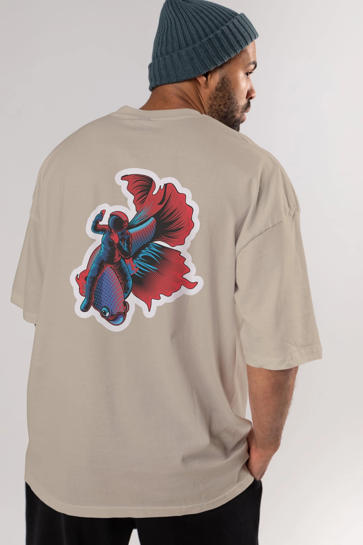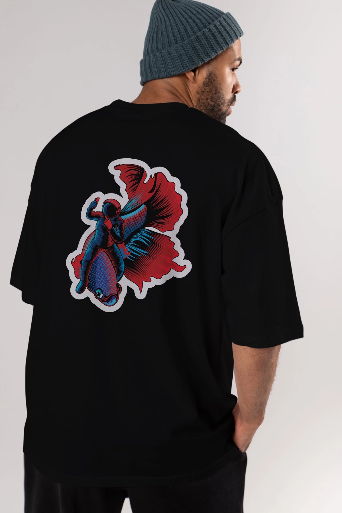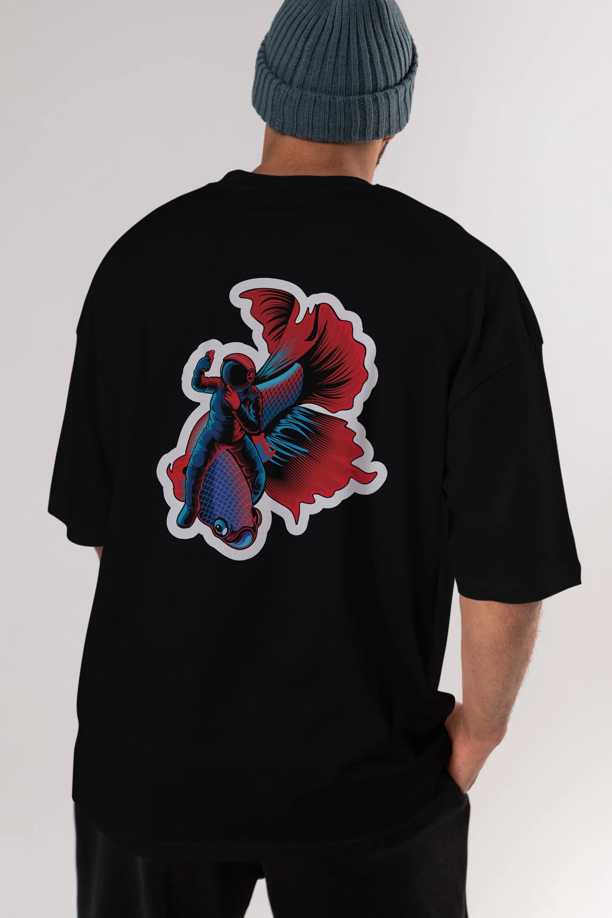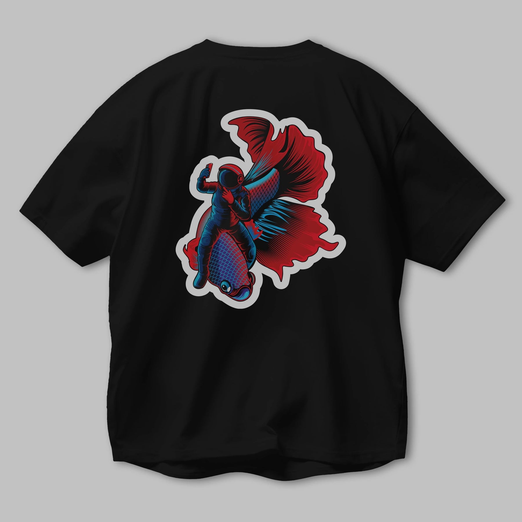 Astrofish selfie sticker Arka Baskılı Oversize t-shirt Erkek Kadın Unisex