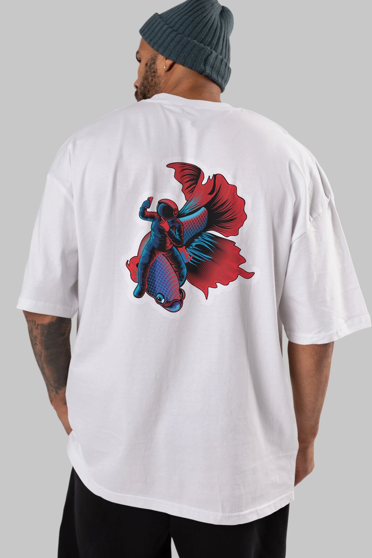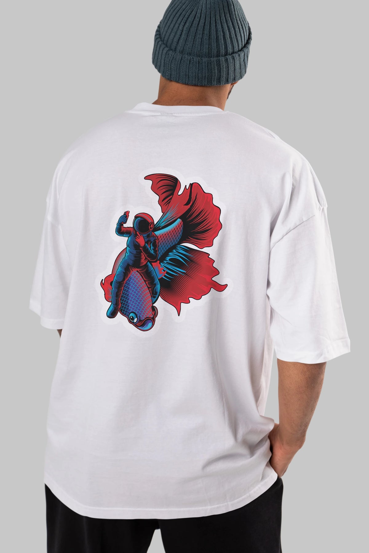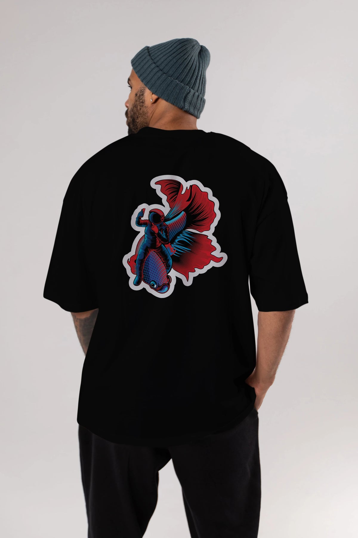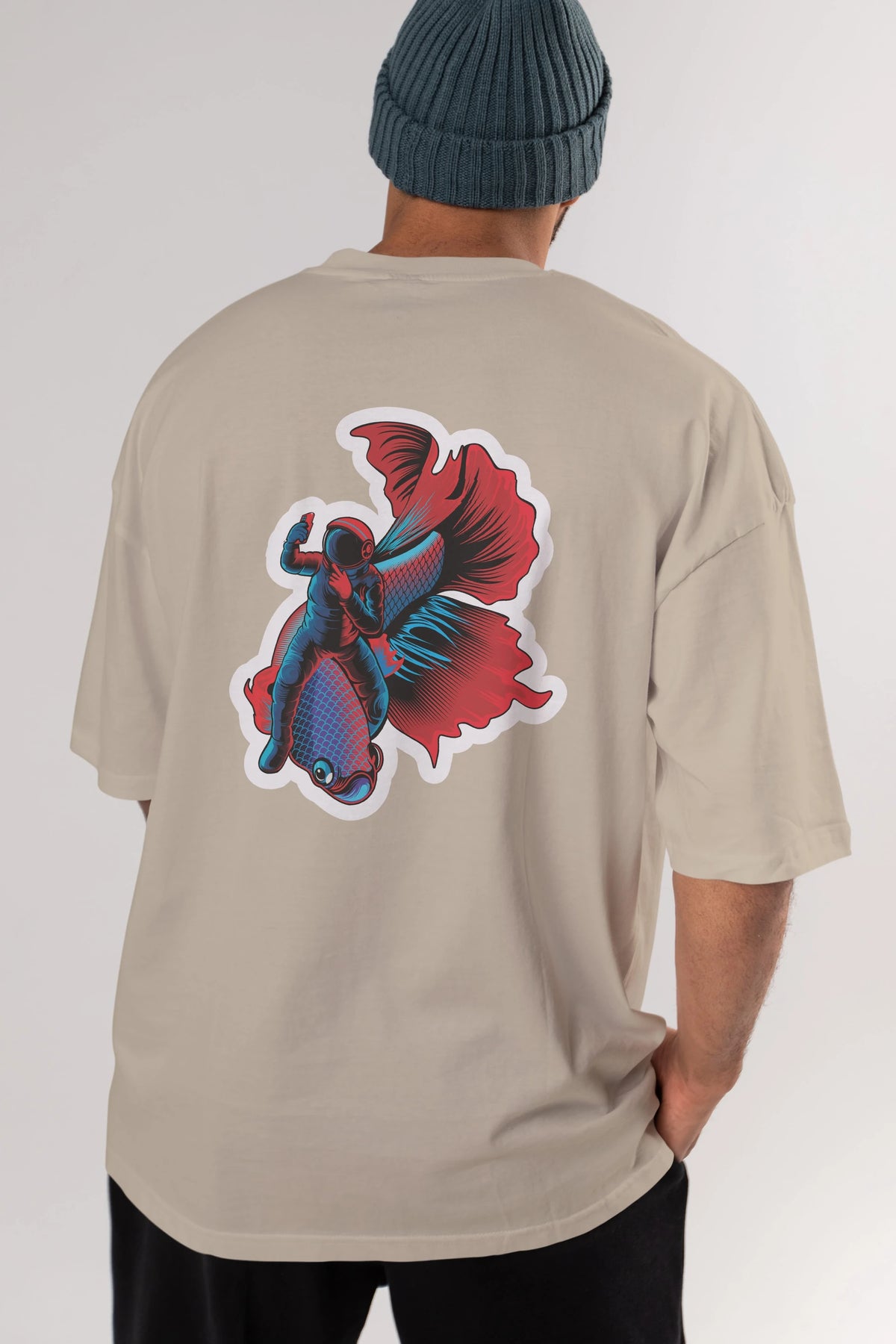 Astrofish selfie sticker Arka Baskılı Oversize t-shirt Erkek Kadın Unisex