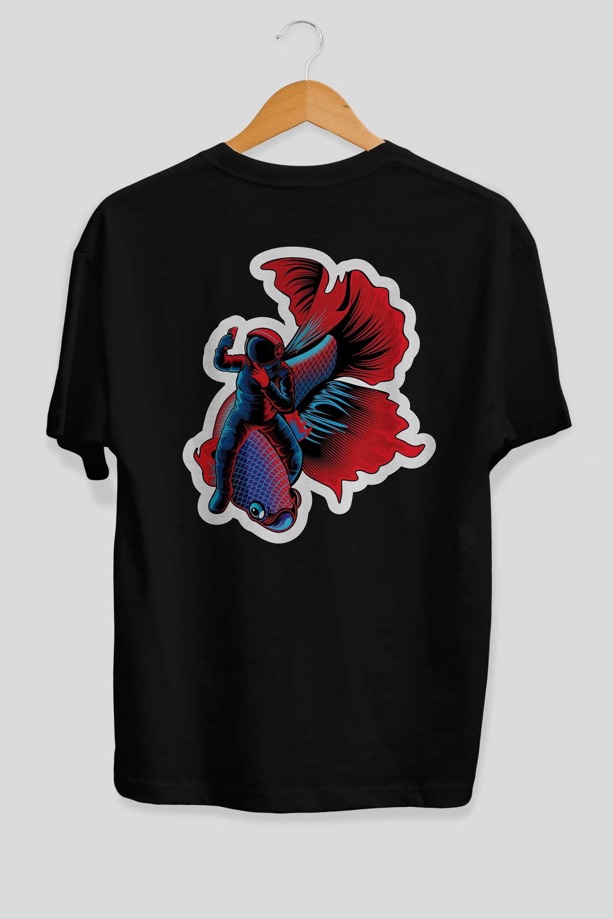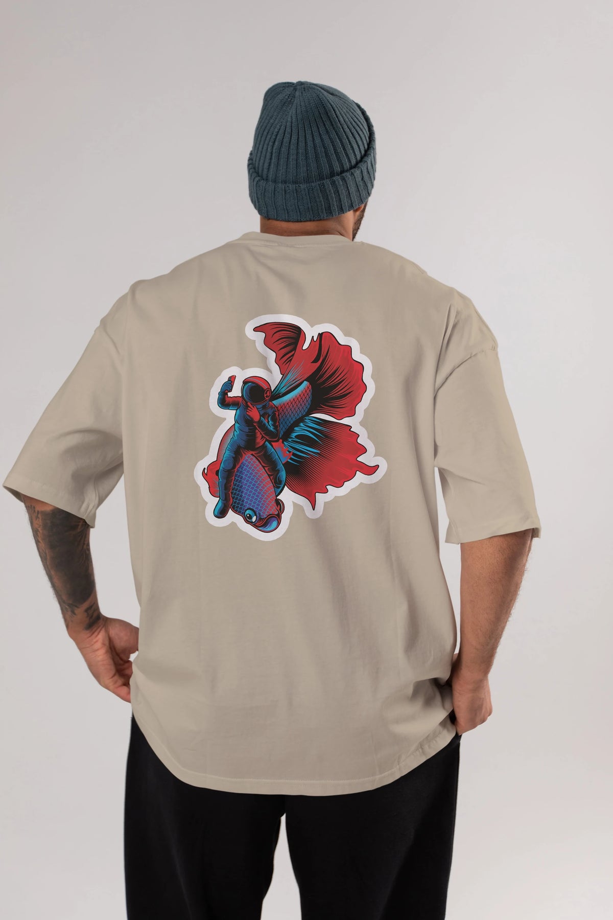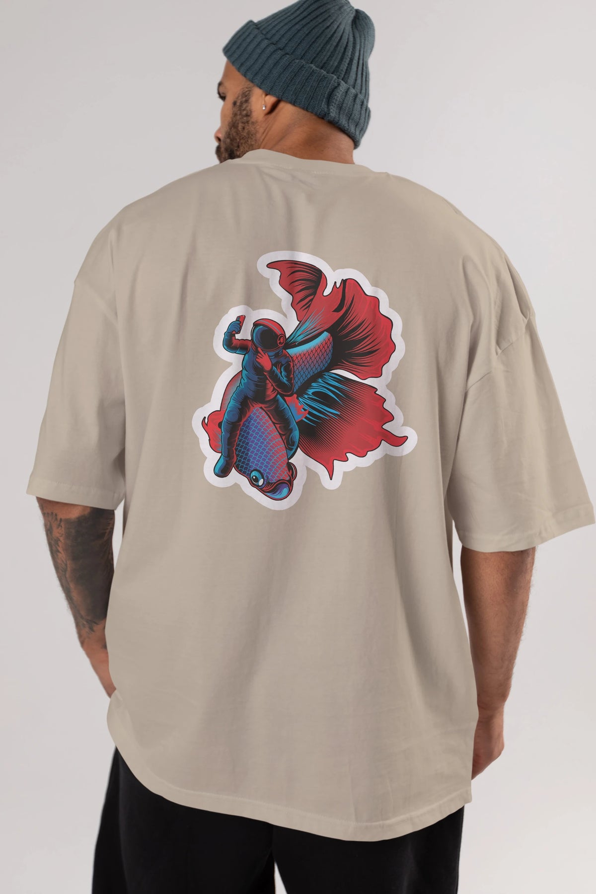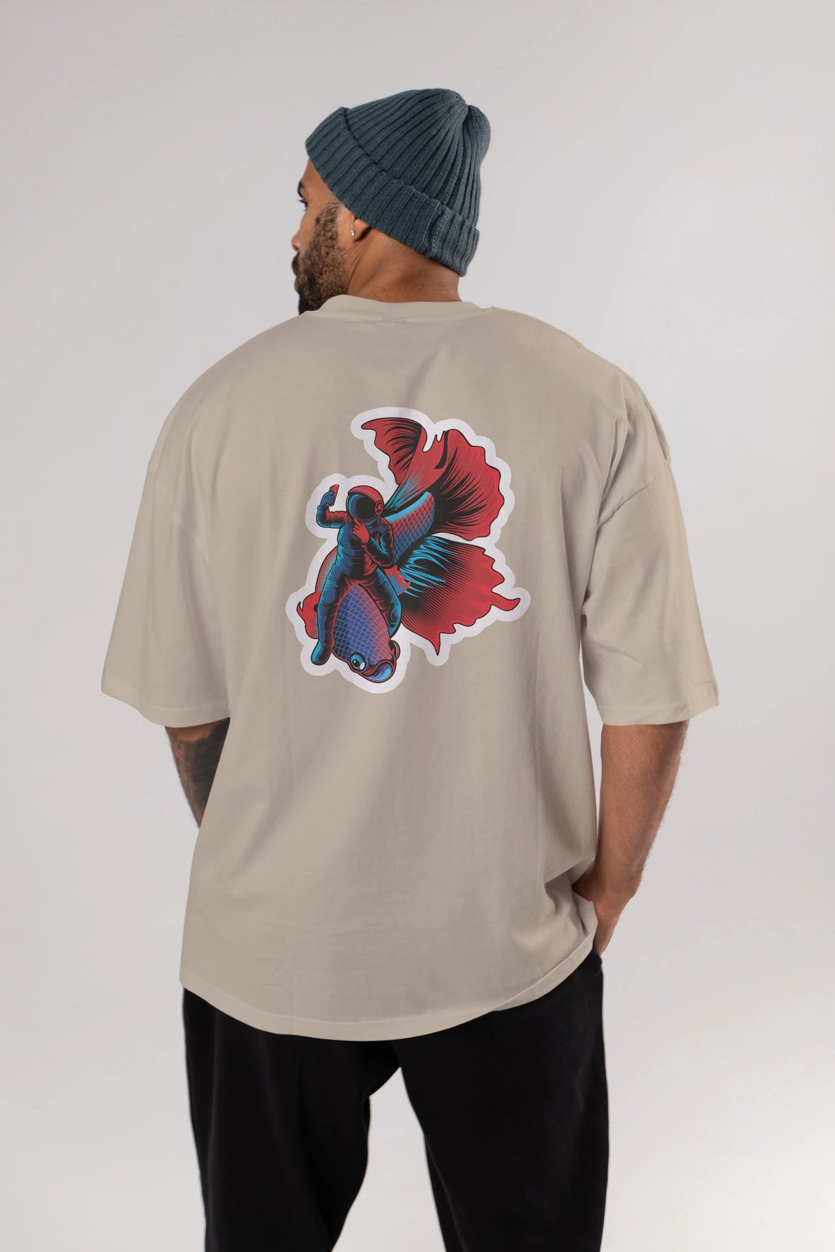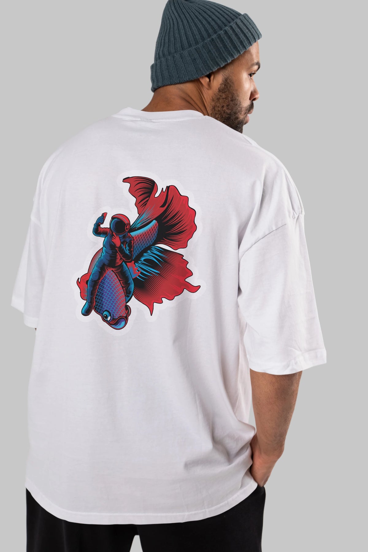 Astrofish selfie sticker Arka Baskılı Oversize t-shirt Erkek Kadın Unisex