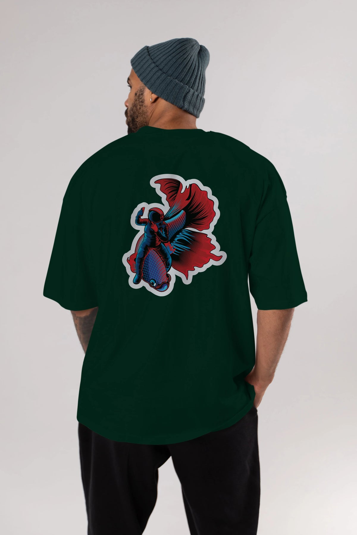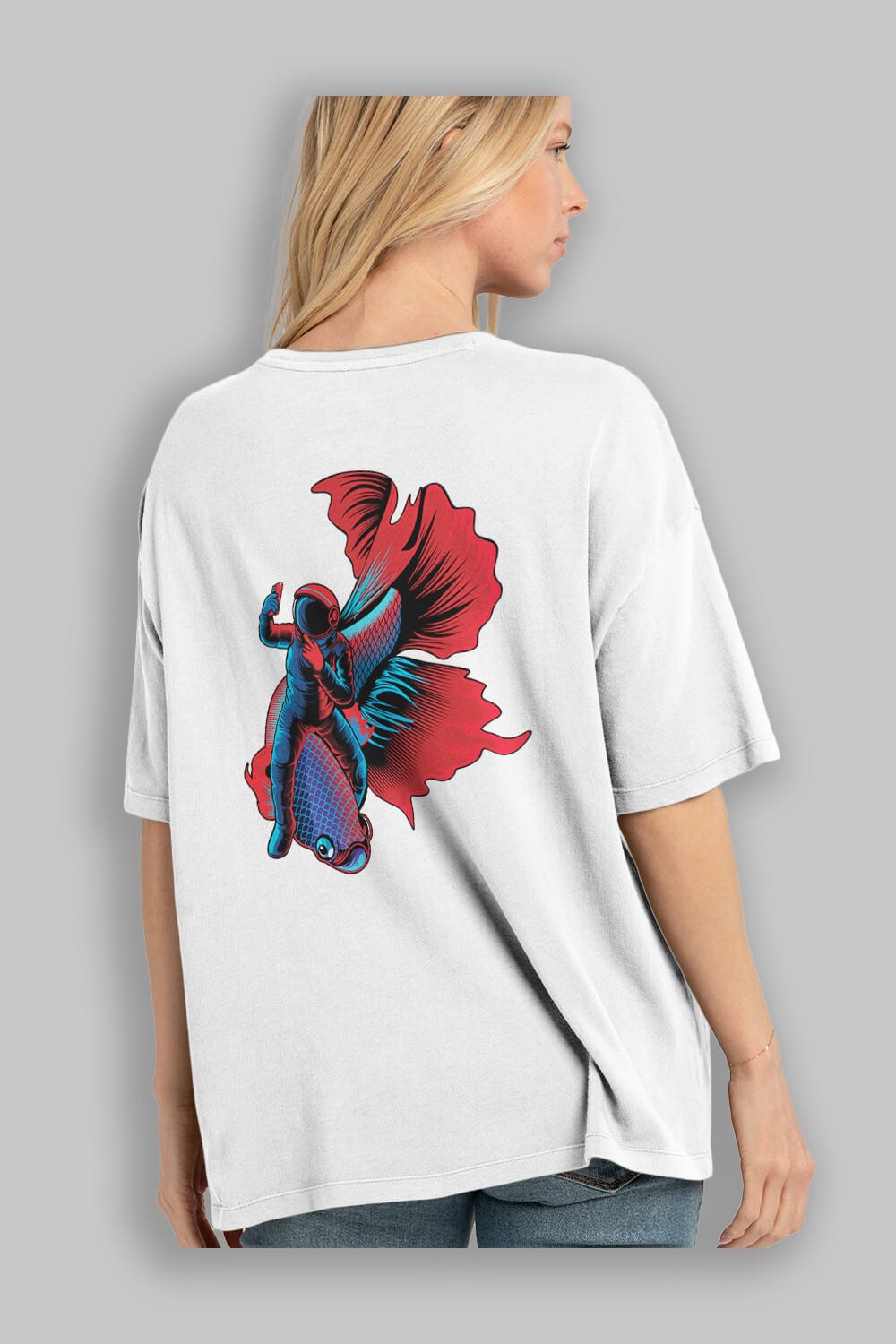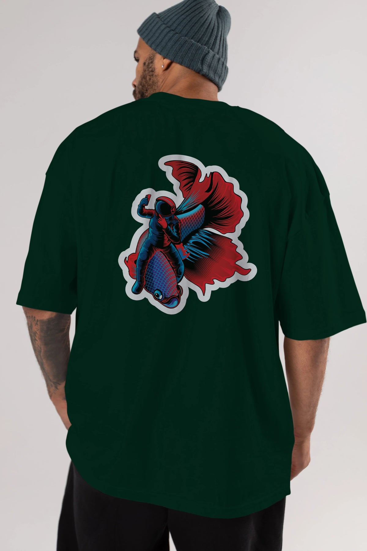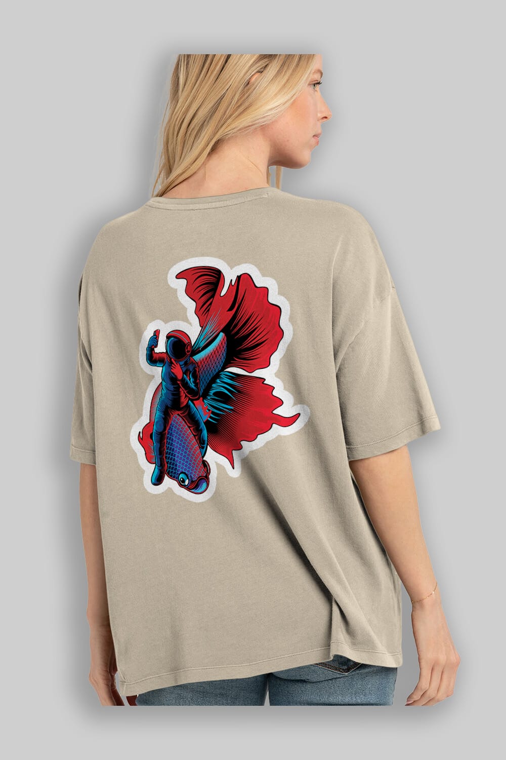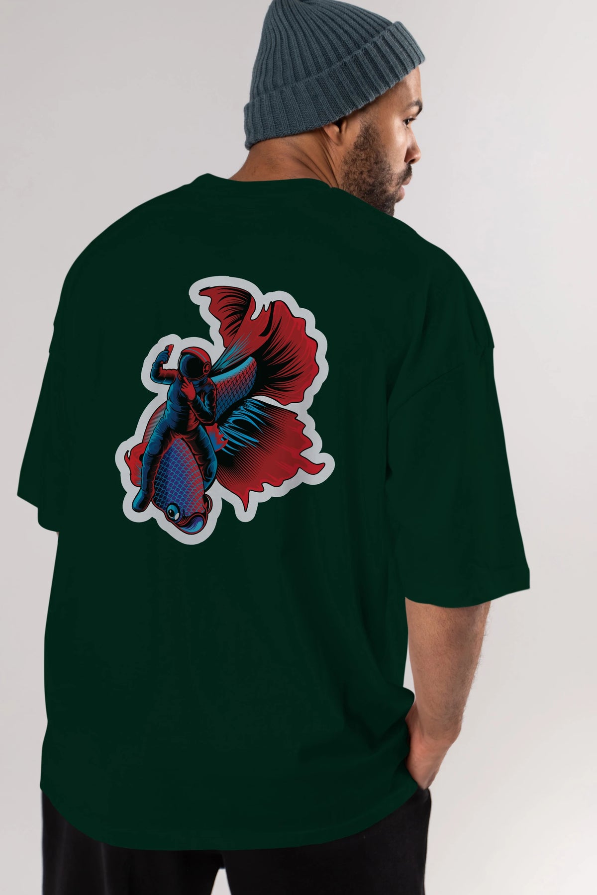 Astrofish selfie sticker Arka Baskılı Oversize t-shirt Erkek Kadın Unisex