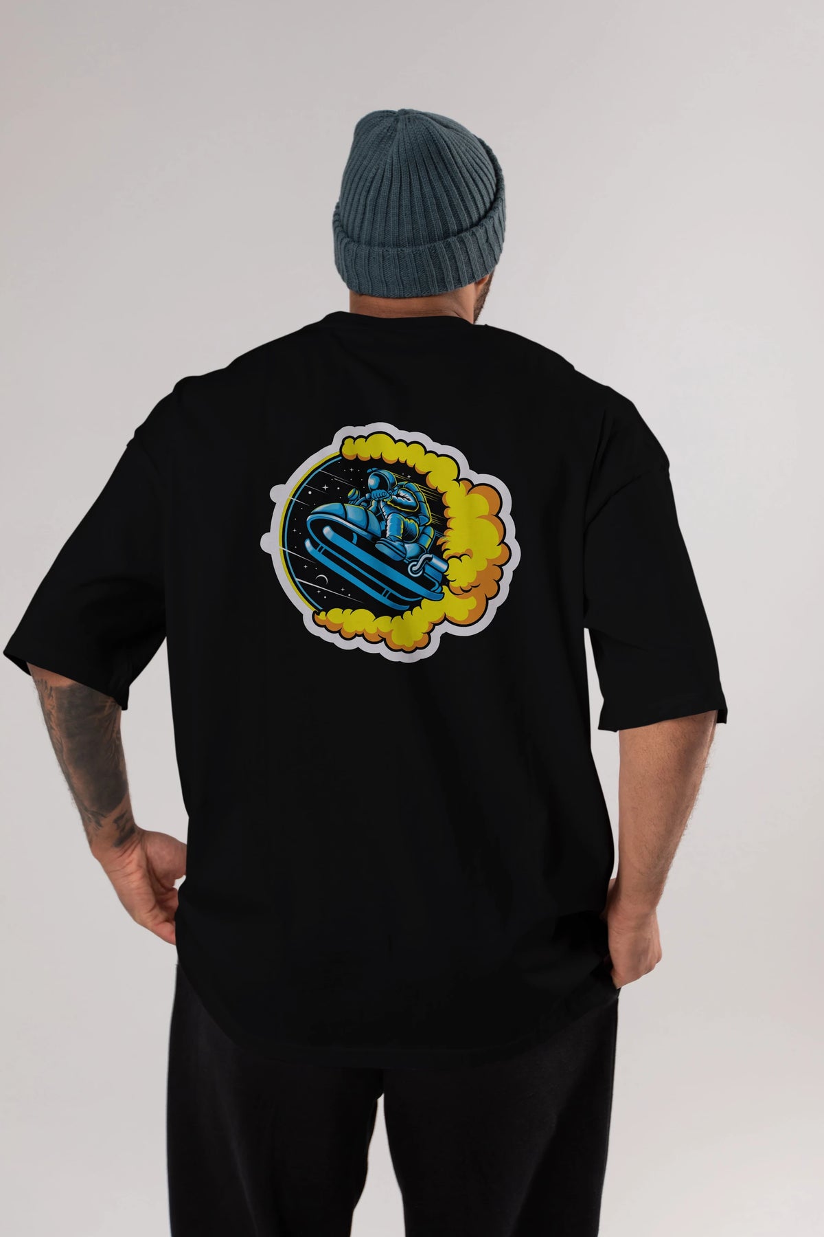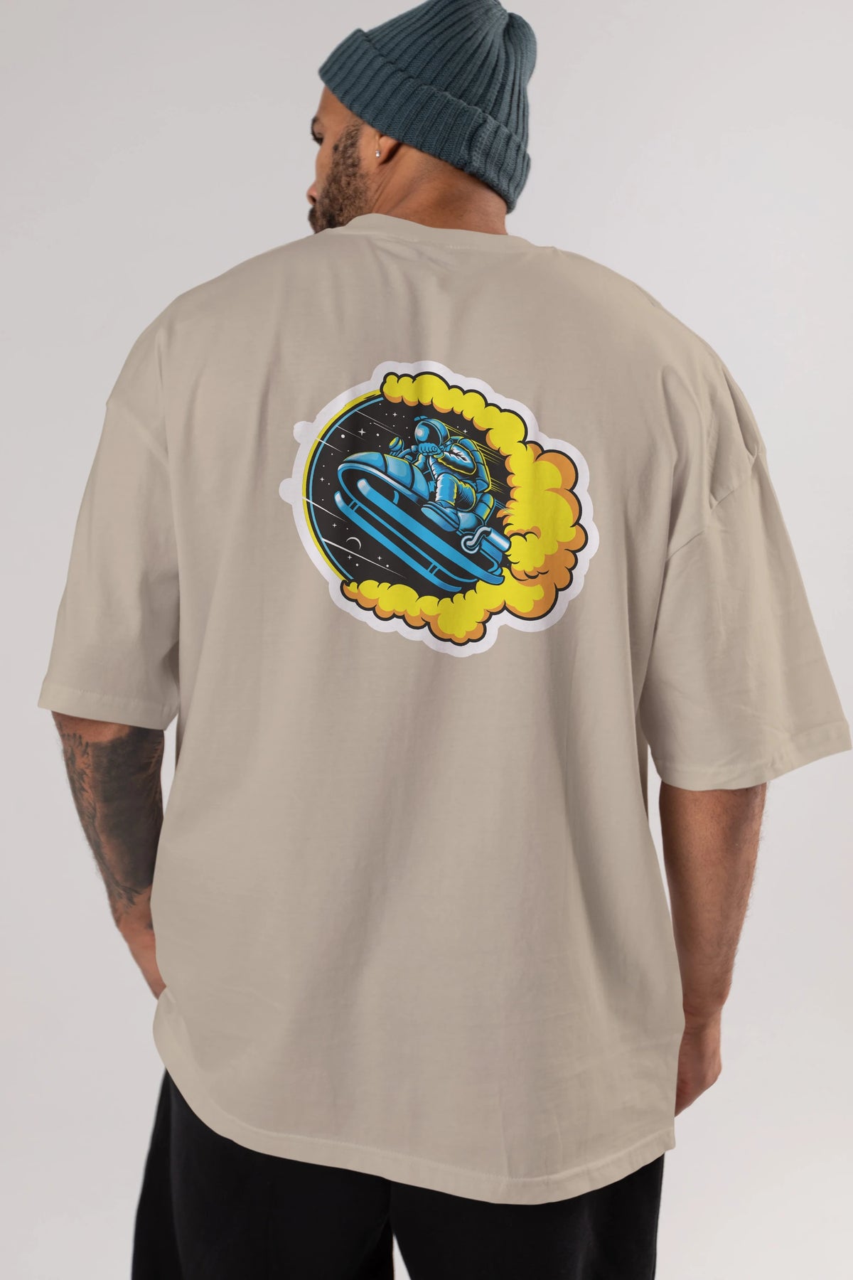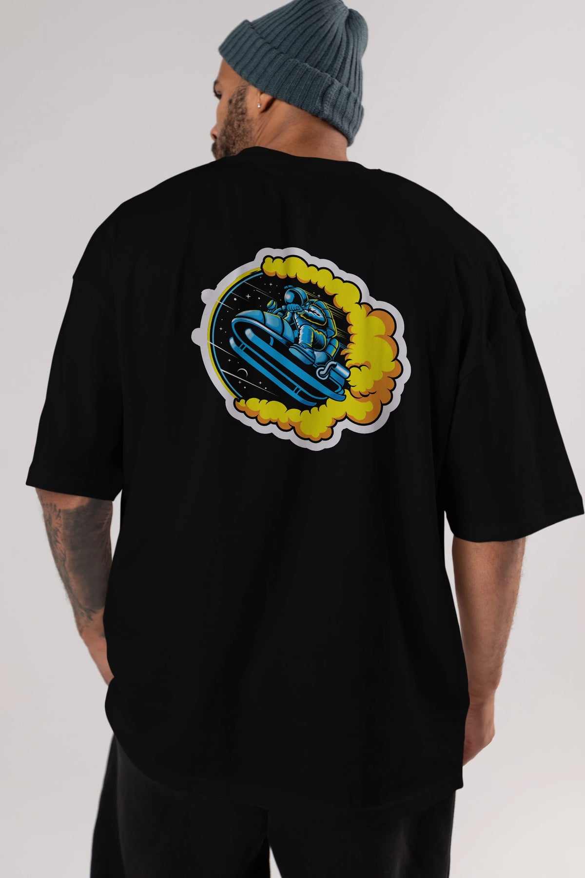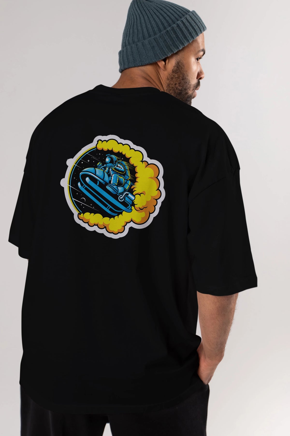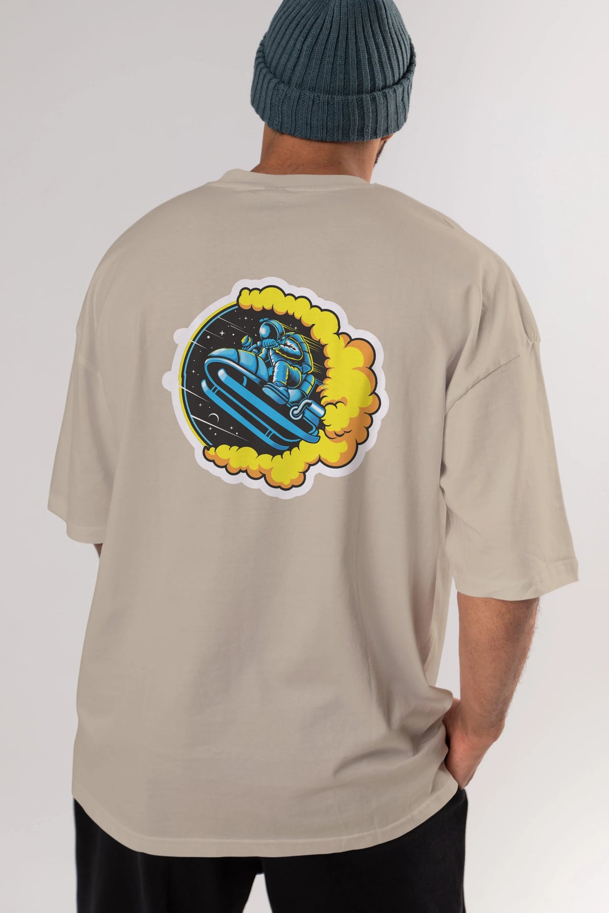 Astrojump with Snowmobile Sticker Arka Baskılı Oversize t-shirt Erkek Kadın Unisex