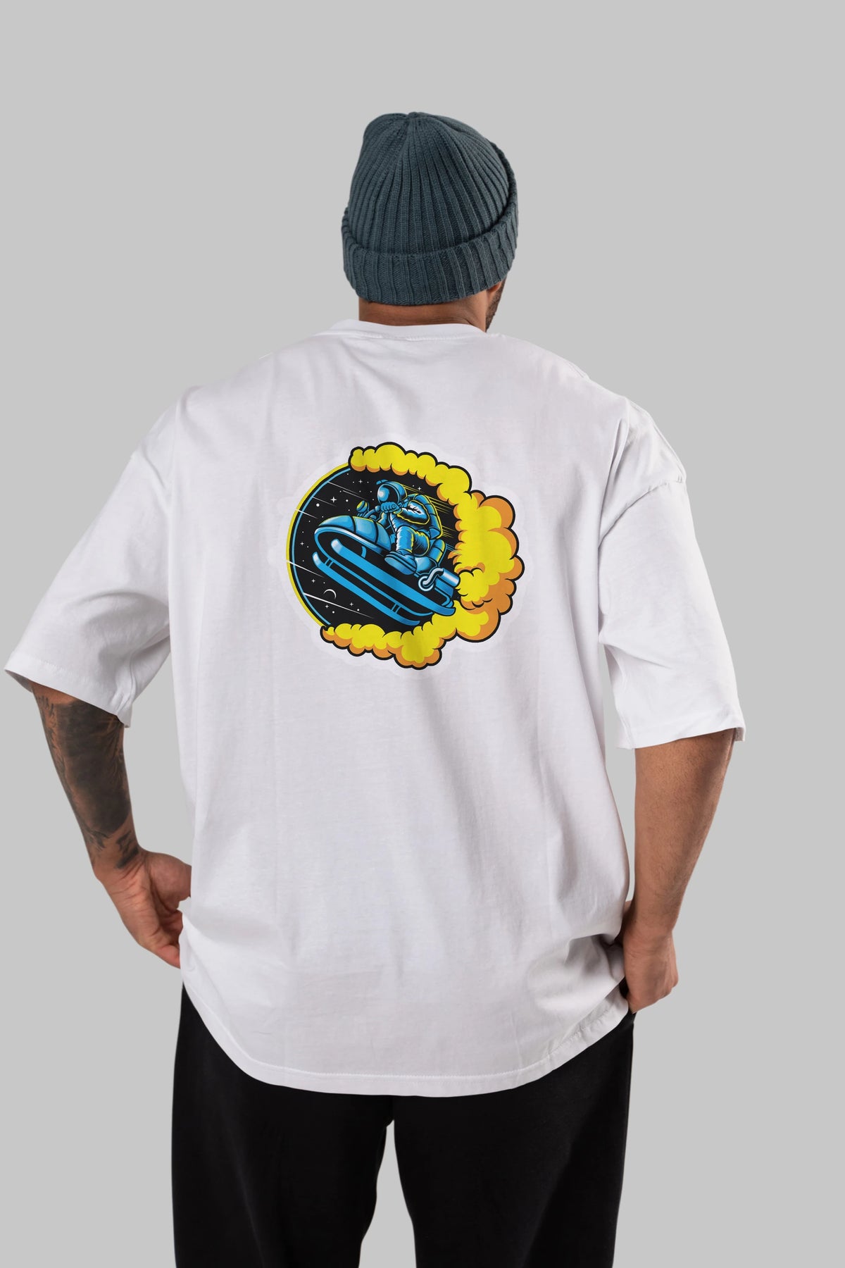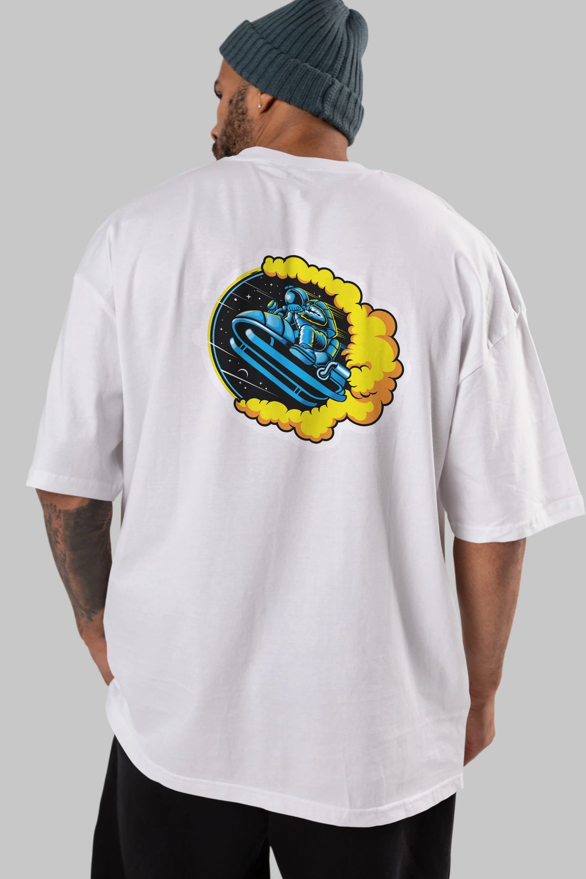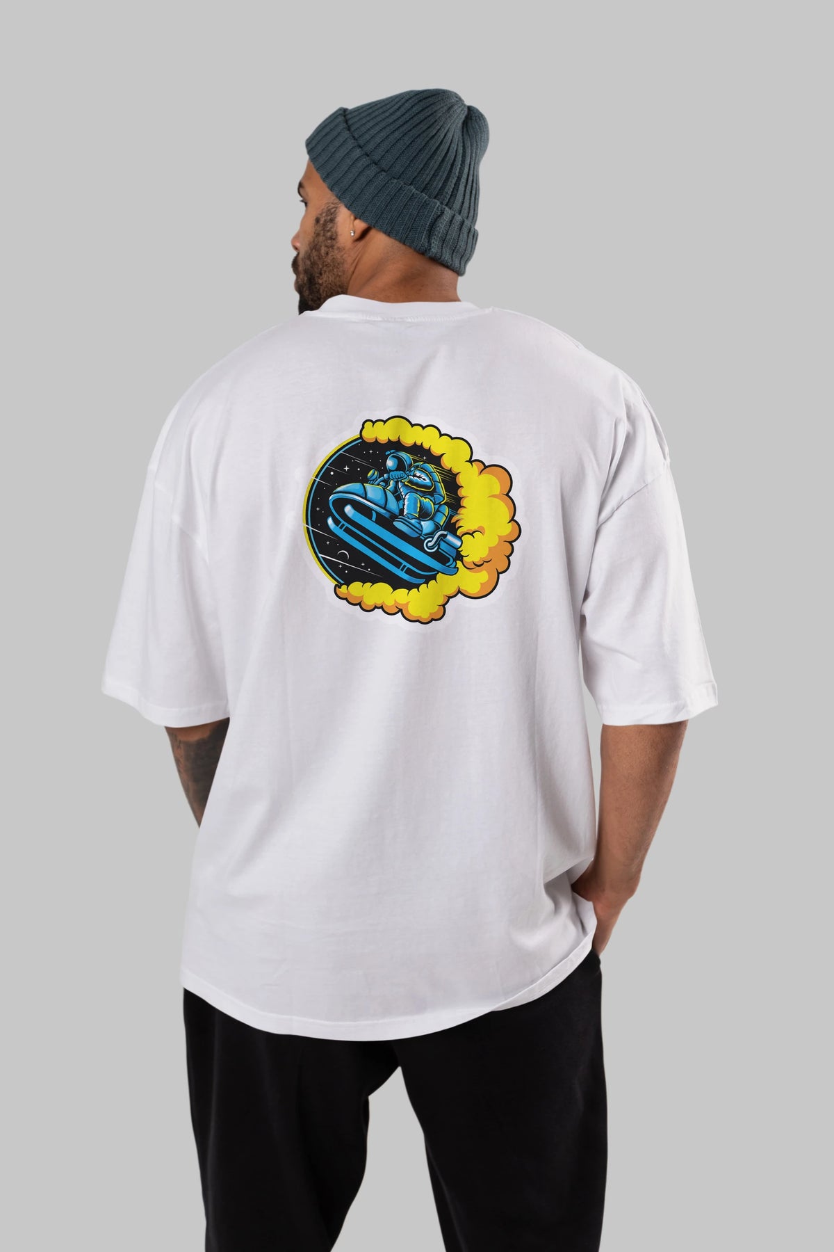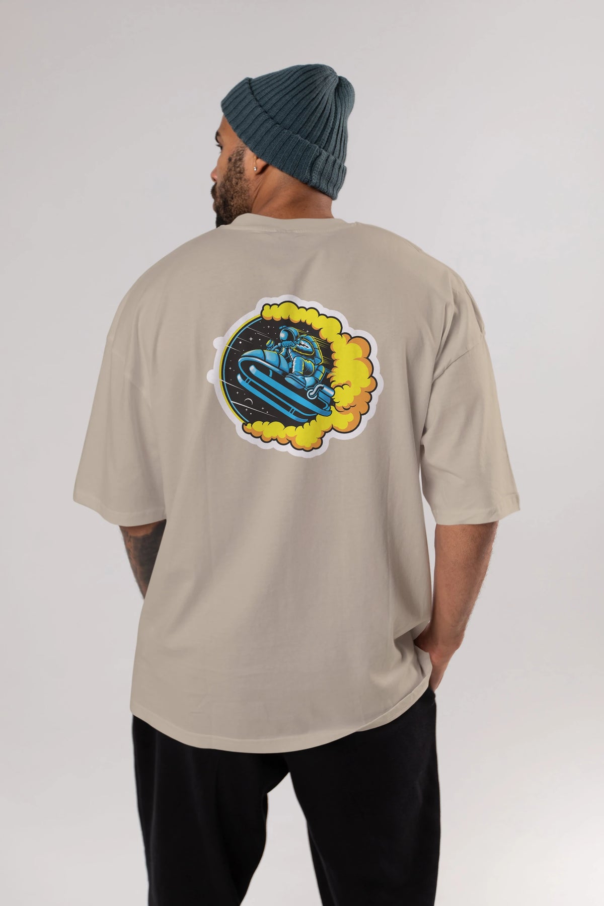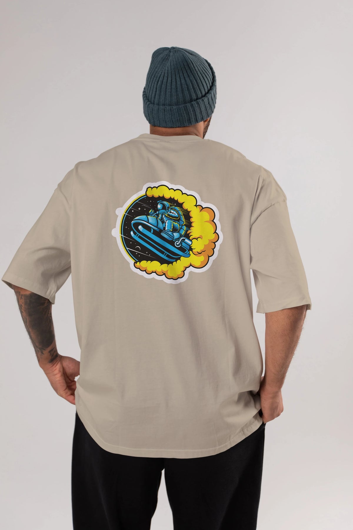 Astrojump with Snowmobile Sticker Arka Baskılı Oversize t-shirt Erkek Kadın Unisex