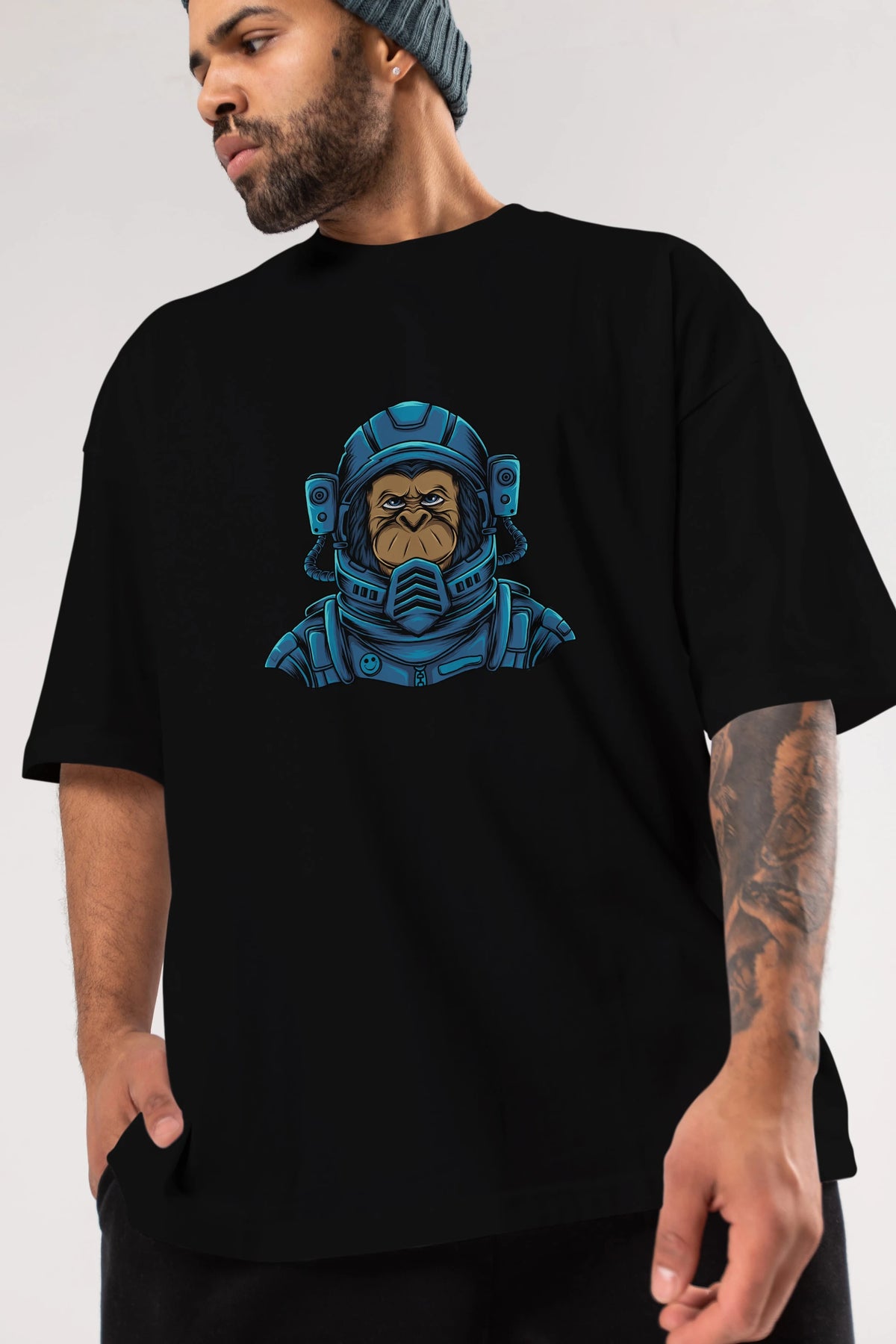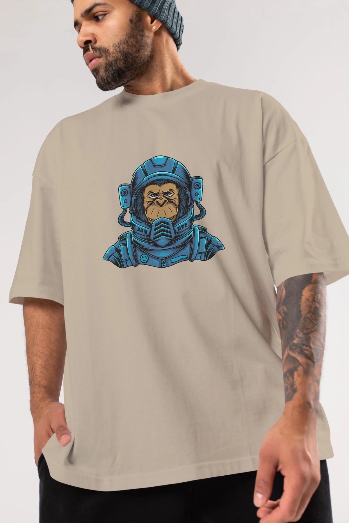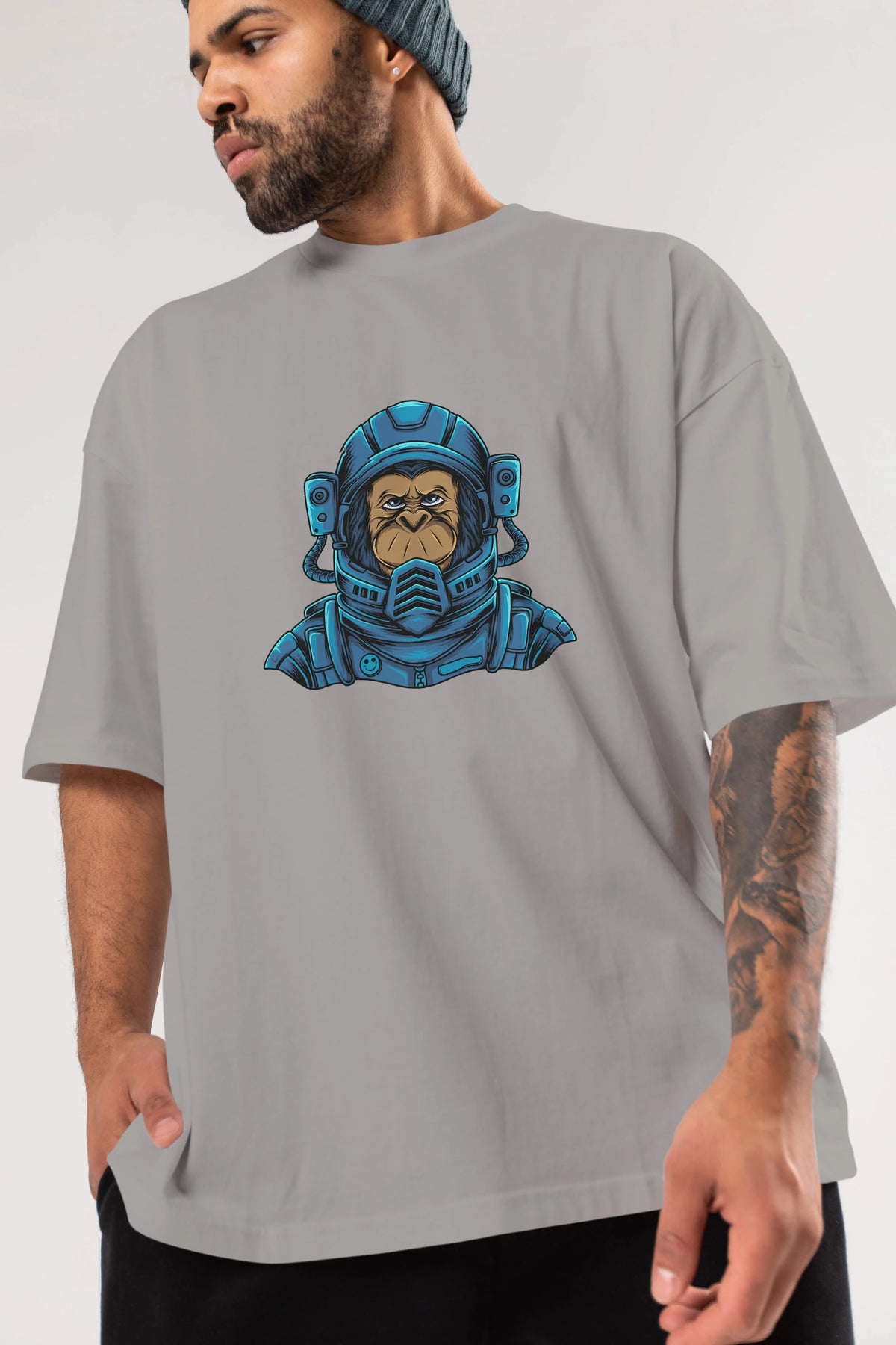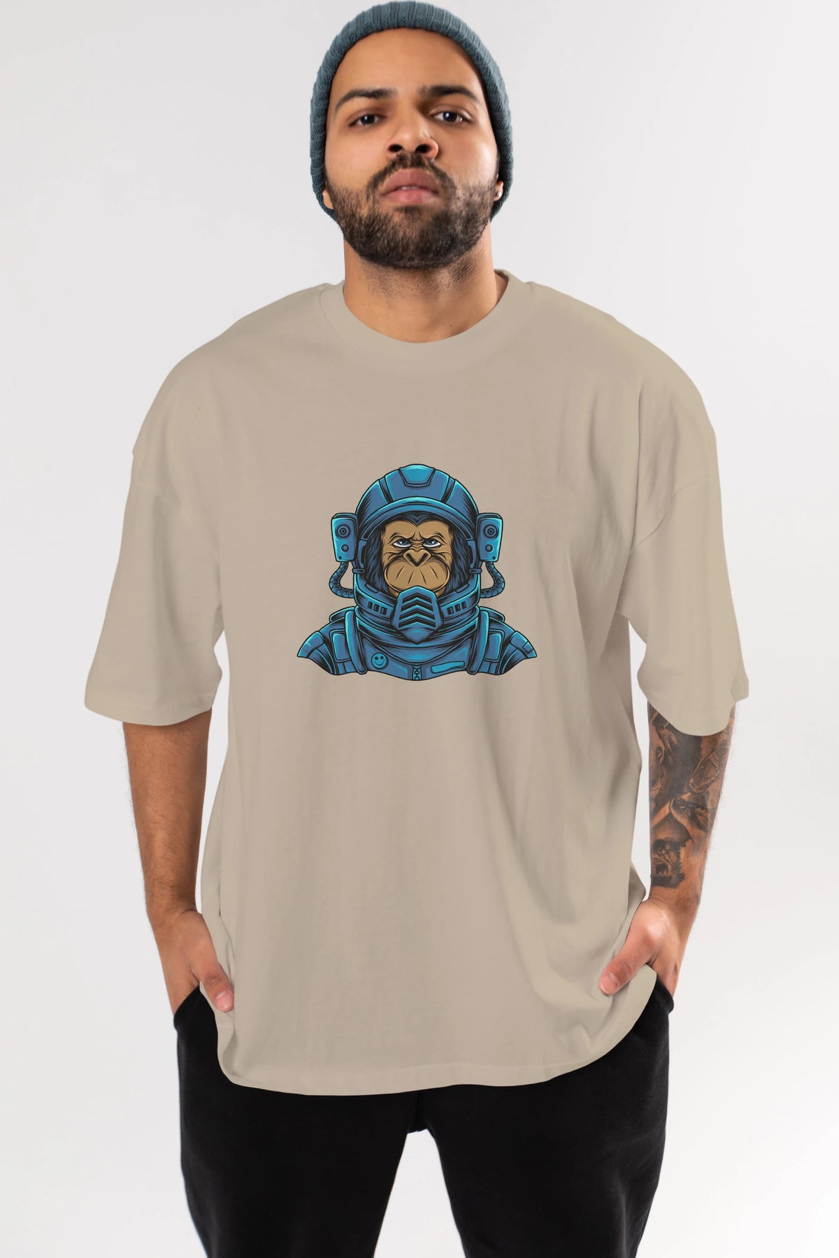 Astromonkey Ön Baskılı Oversize t-shirt Erkek Kadın Unisex