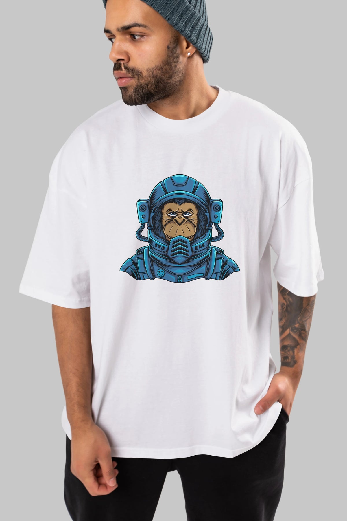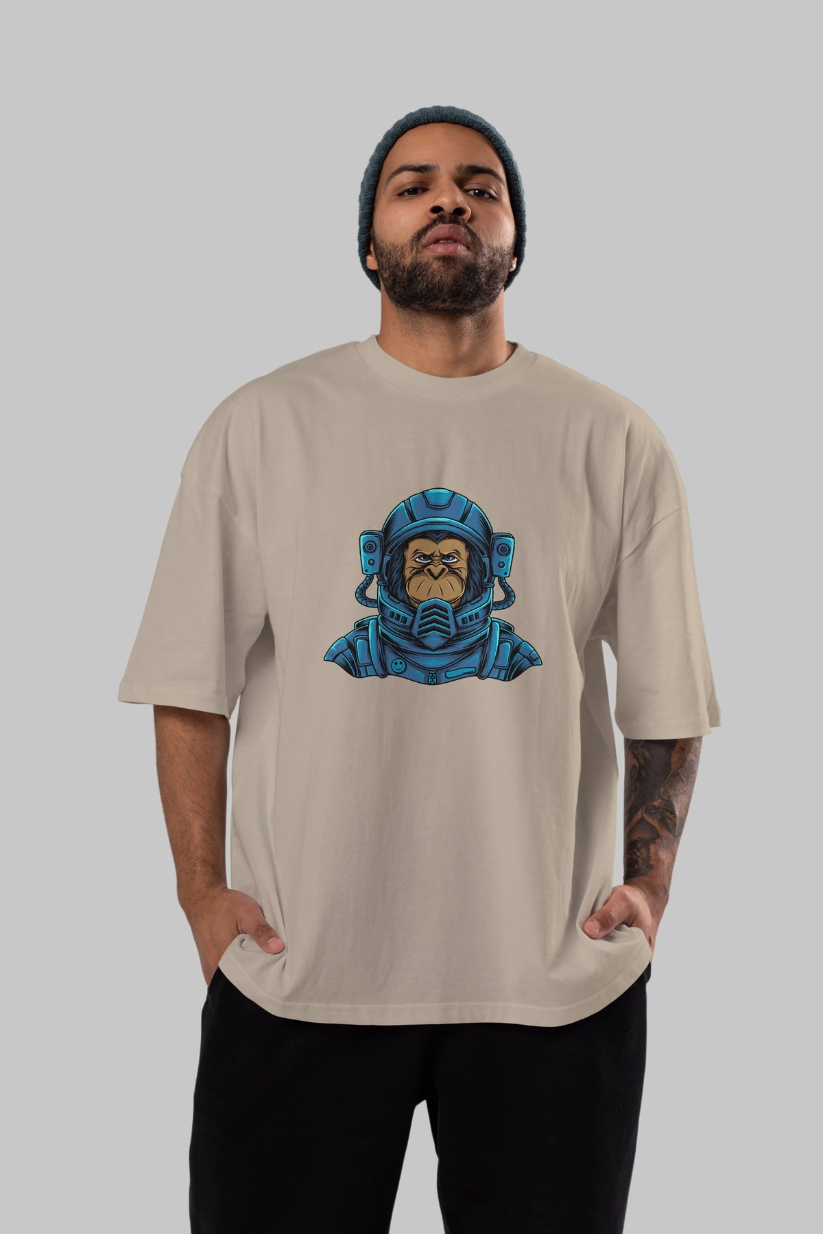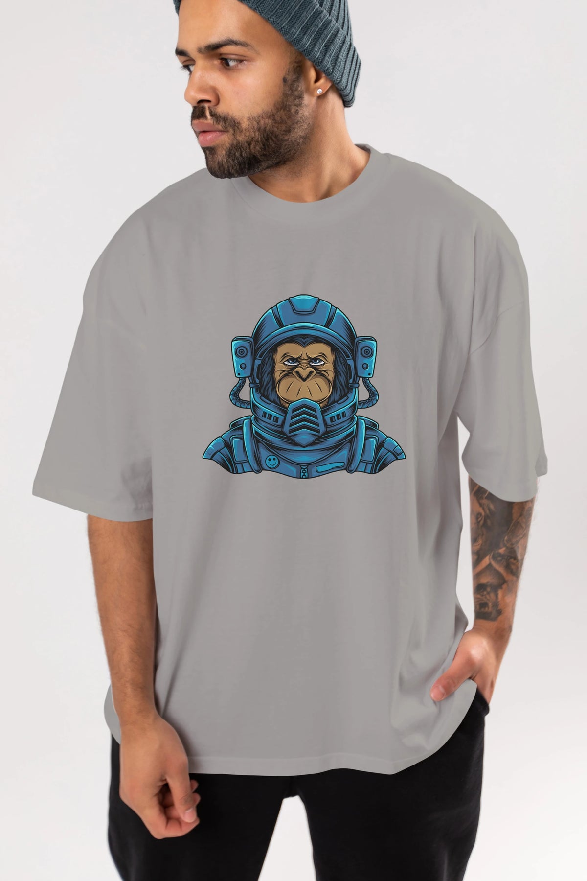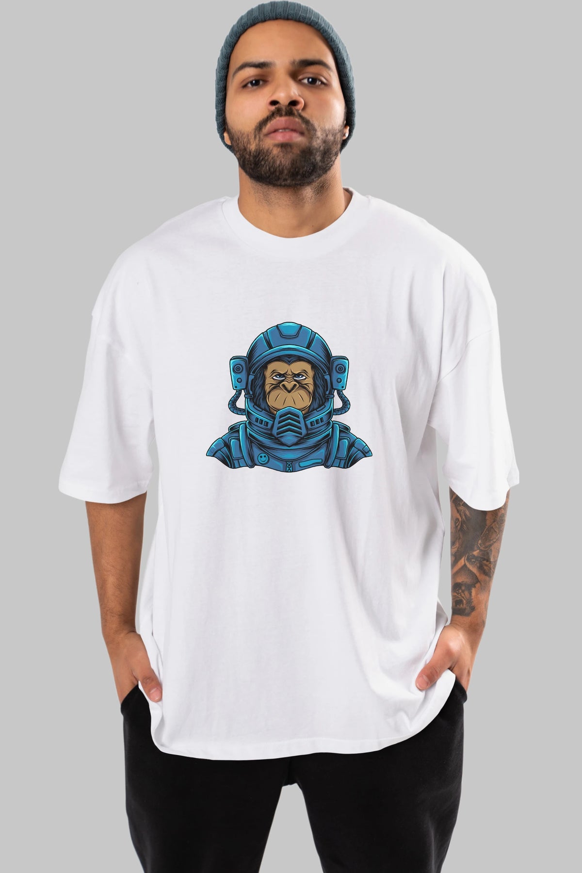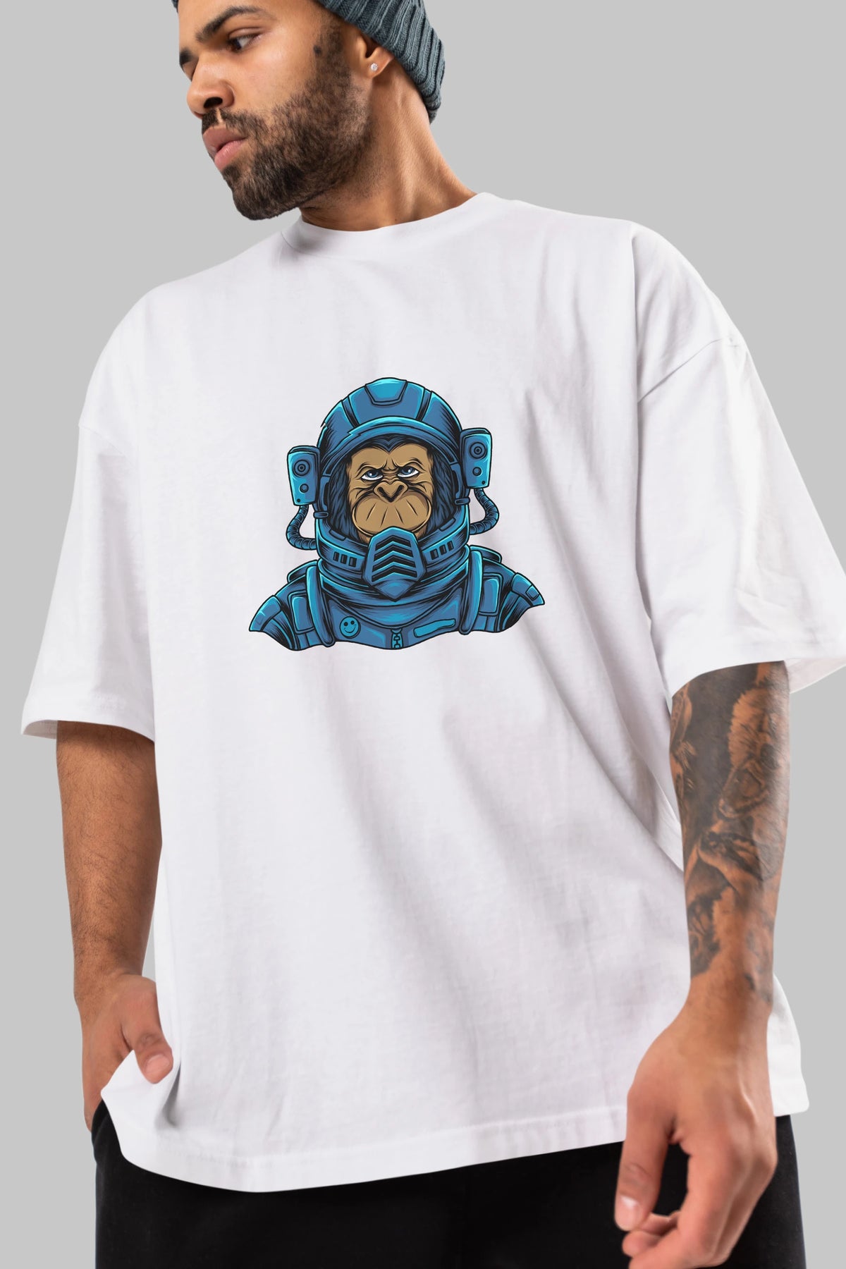 Astromonkey Ön Baskılı Oversize t-shirt Erkek Kadın Unisex