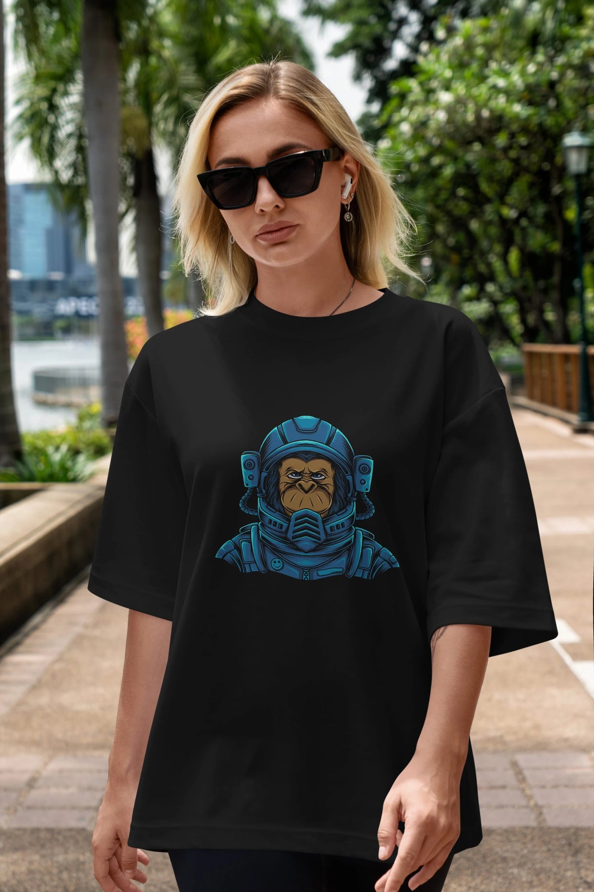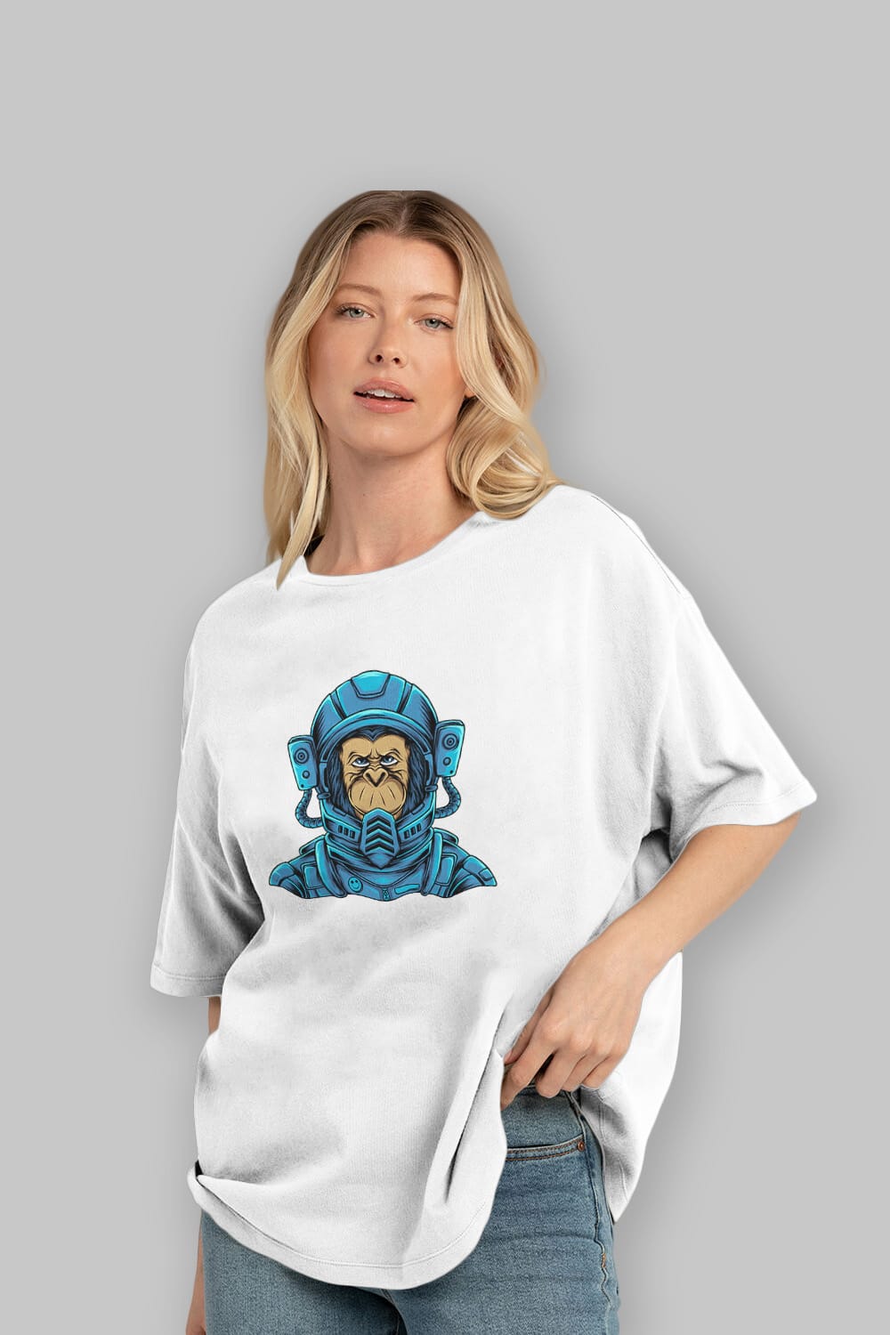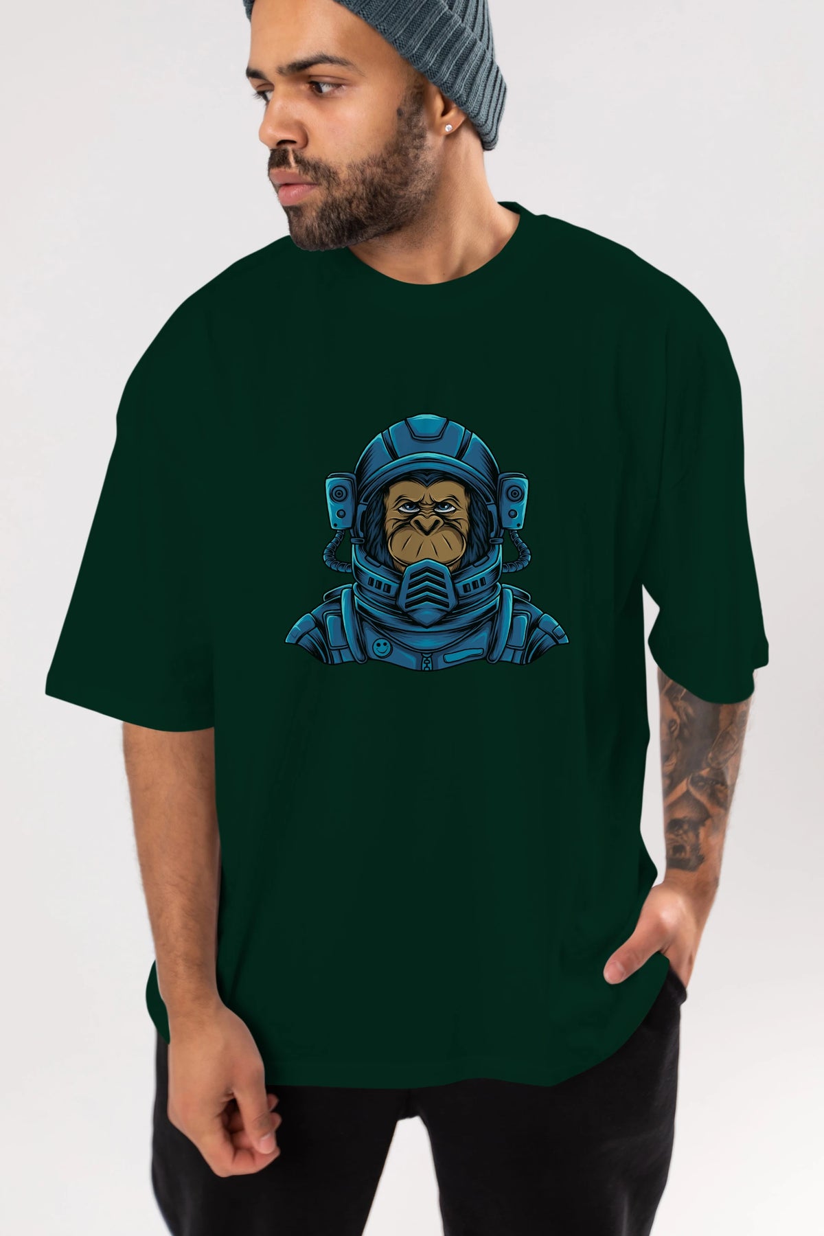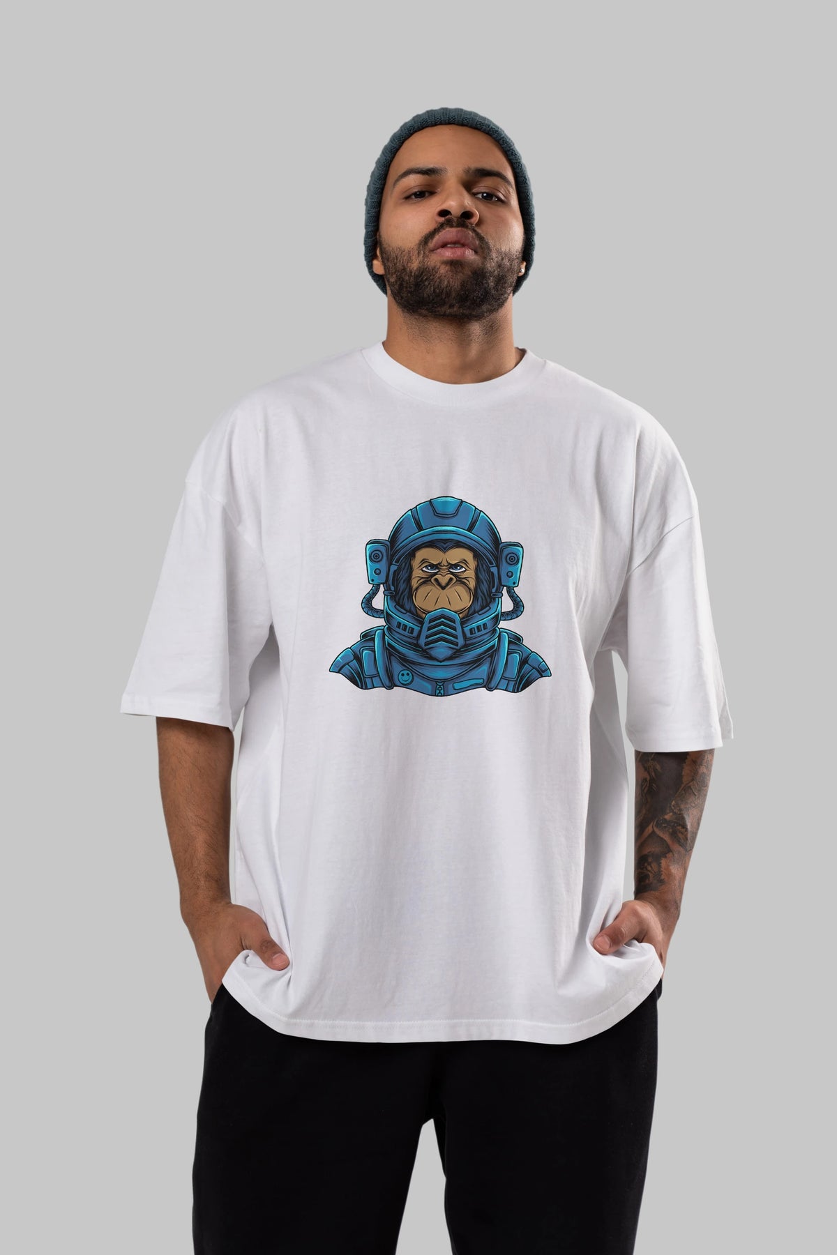 Astromonkey Ön Baskılı Oversize t-shirt Erkek Kadın Unisex