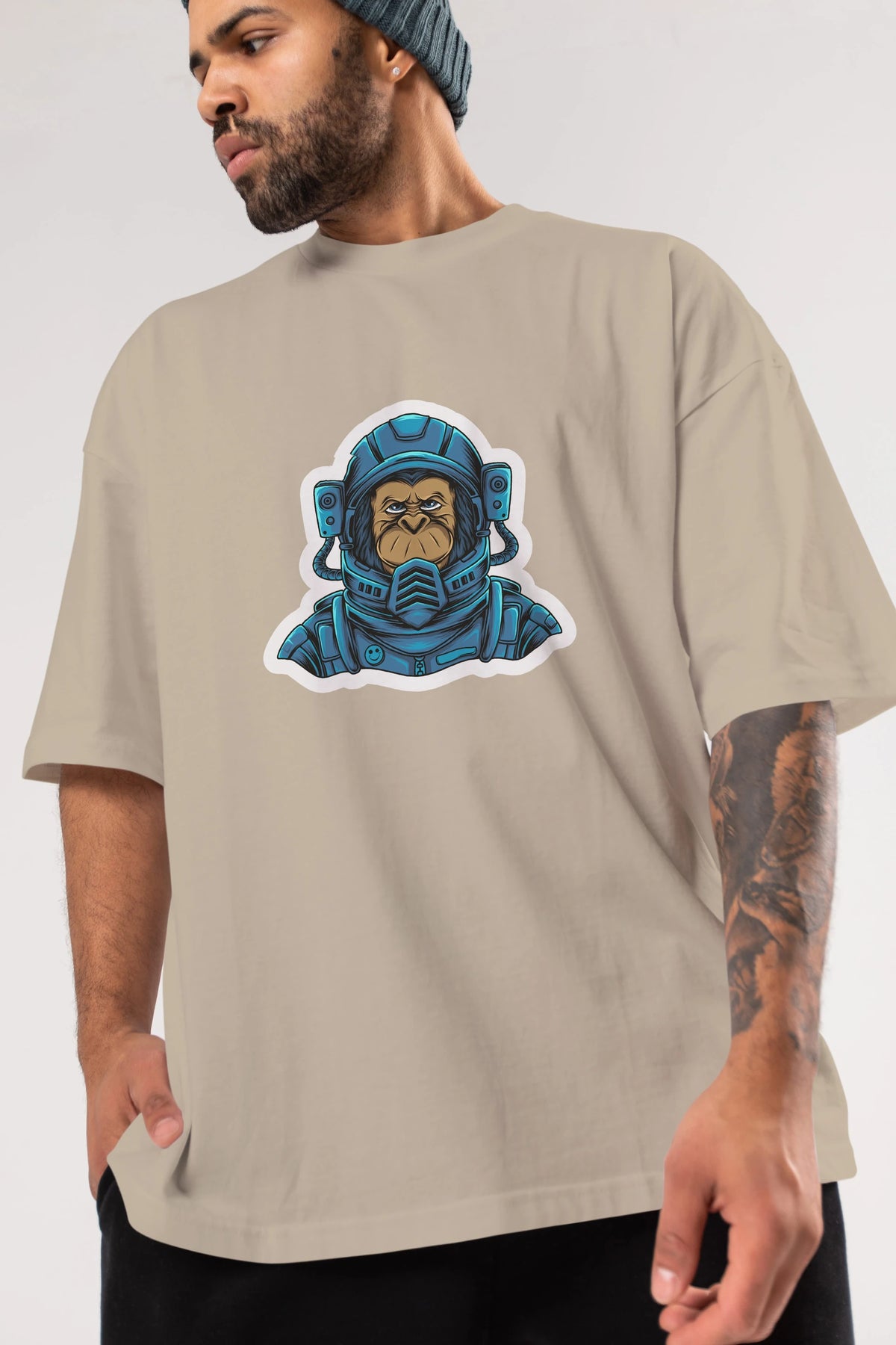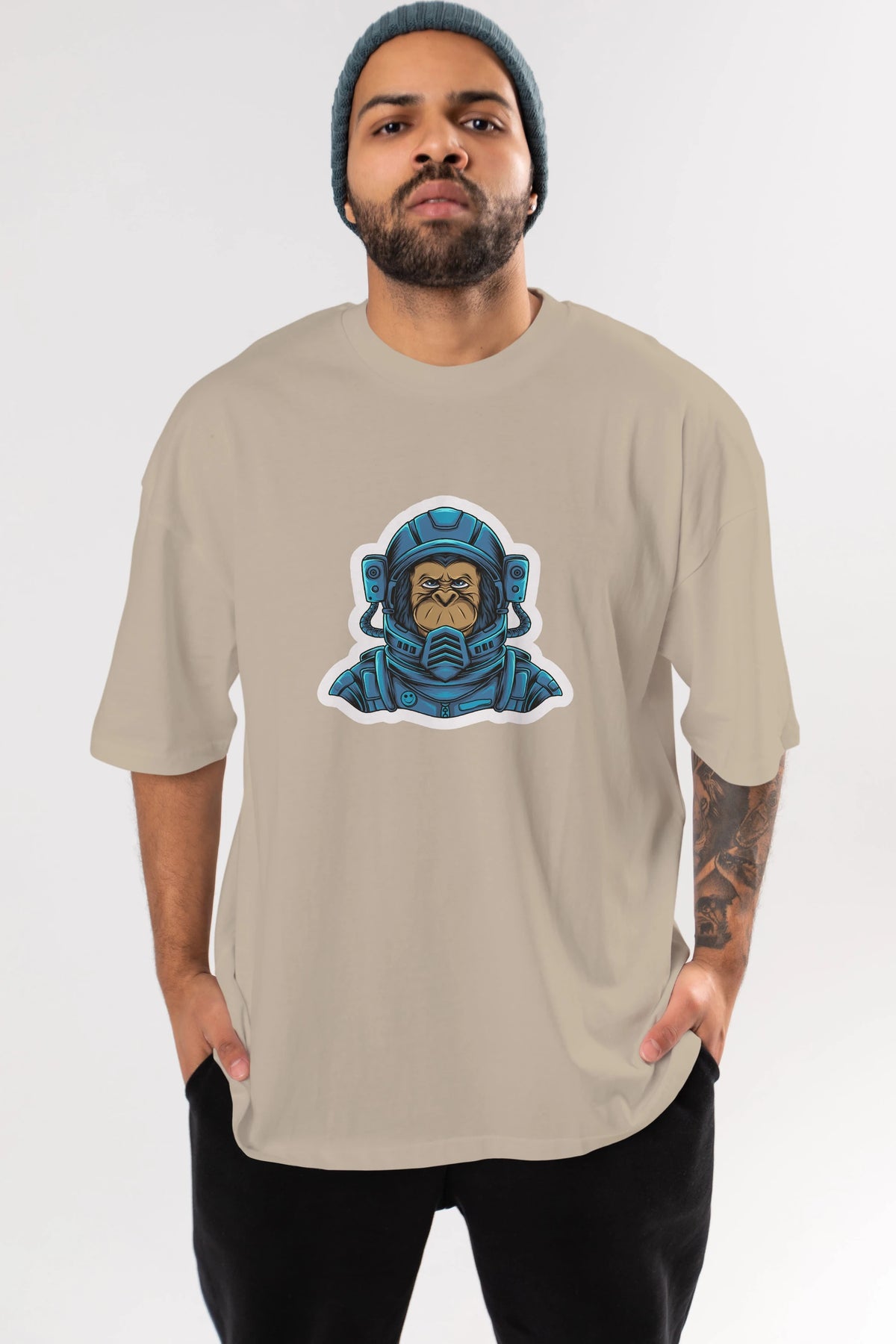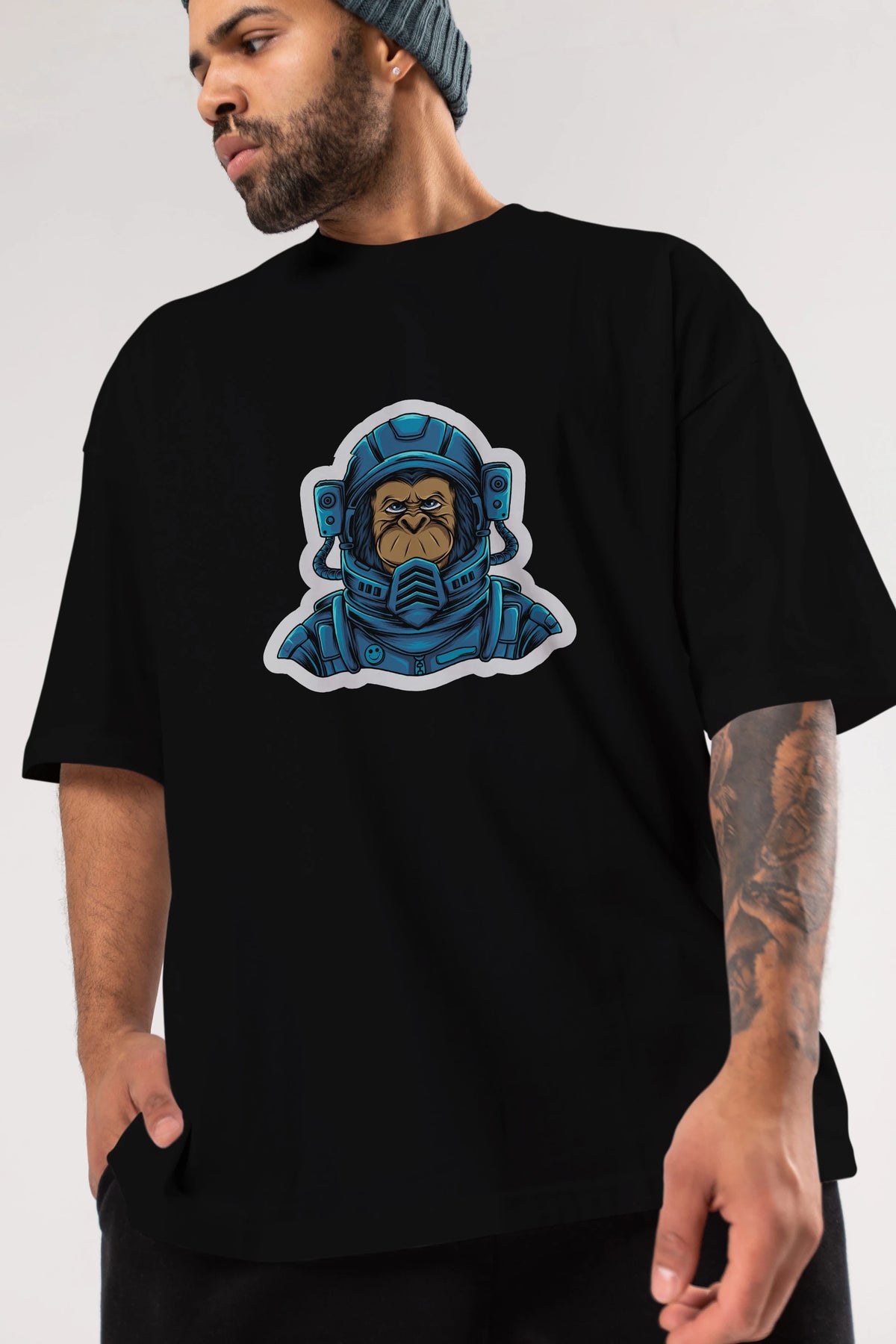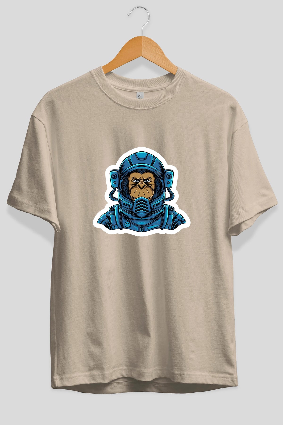 Astromonkey Sticker Ön Baskılı Oversize t-shirt Erkek Kadın Unisex