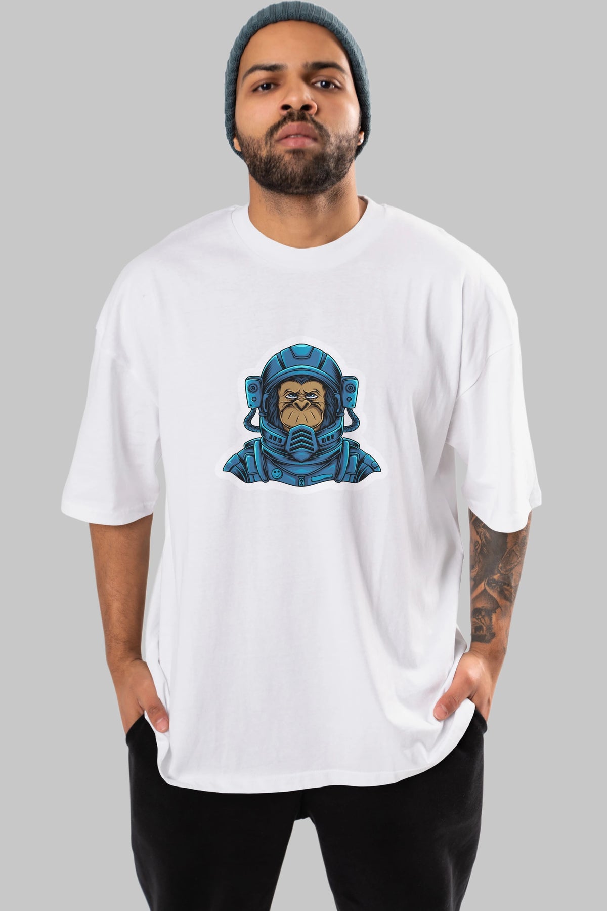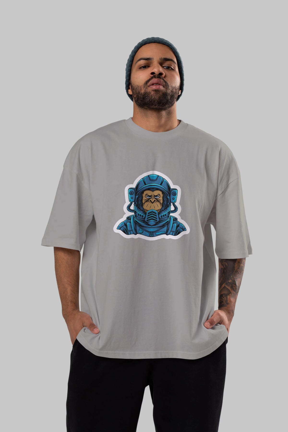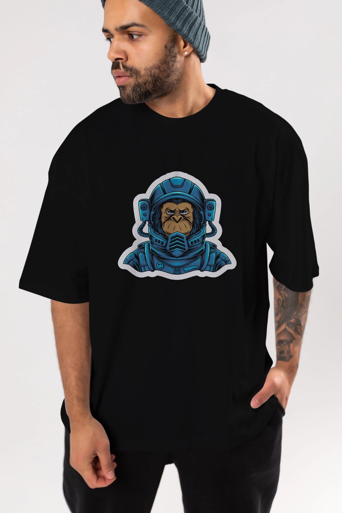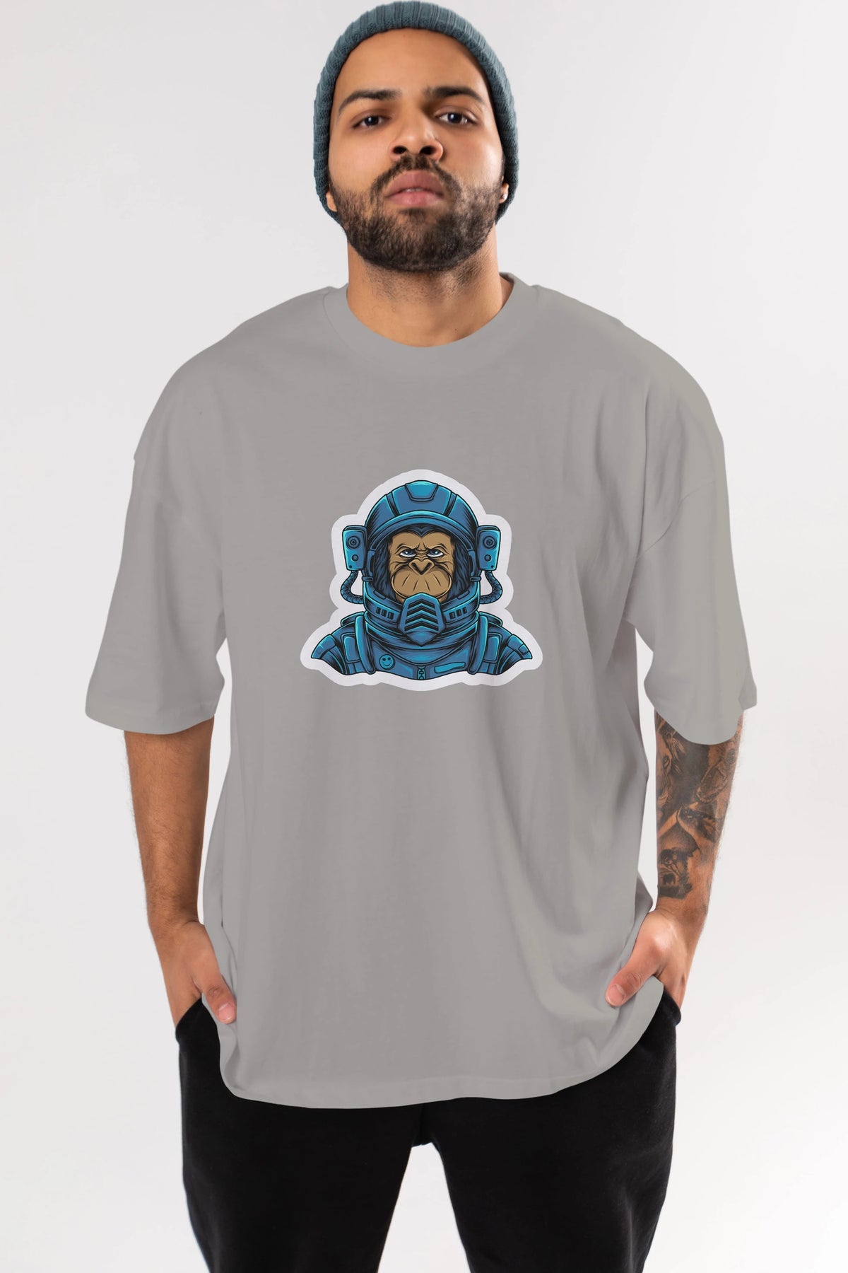 Astromonkey Sticker Ön Baskılı Oversize t-shirt Erkek Kadın Unisex