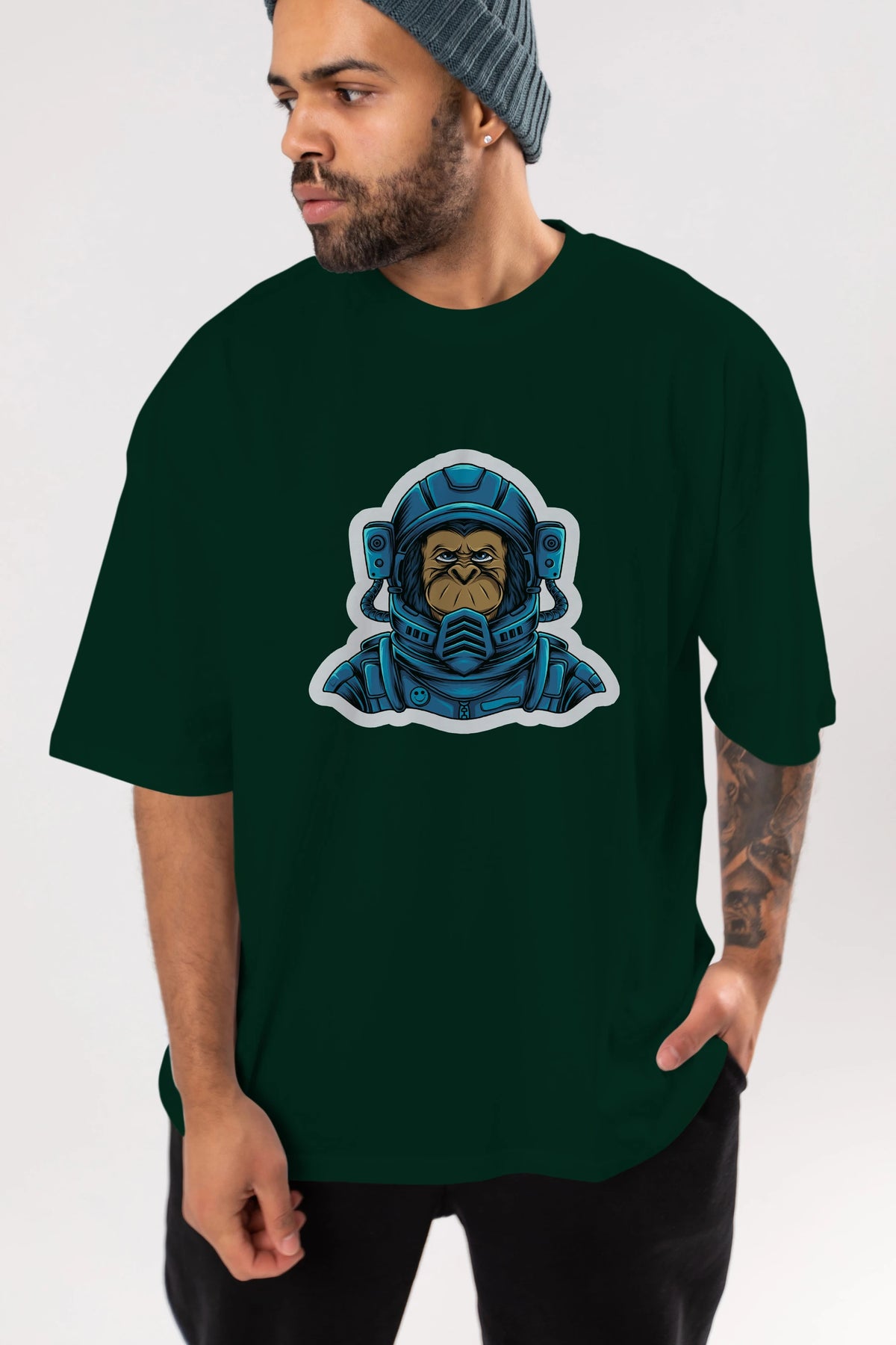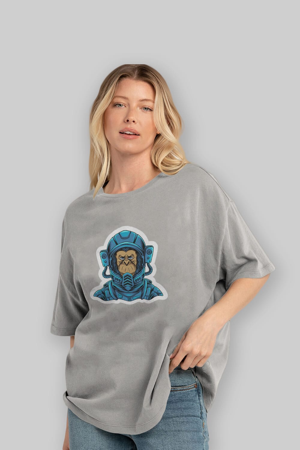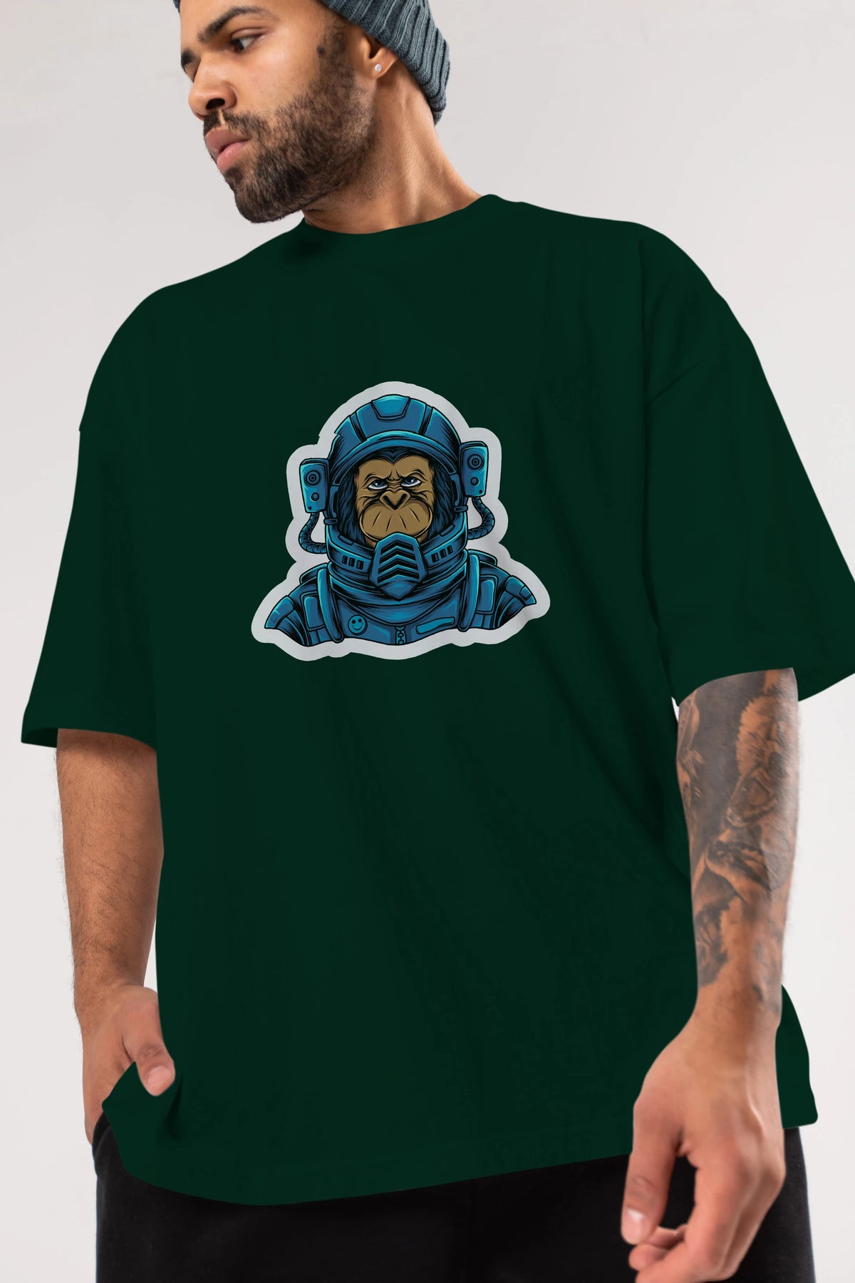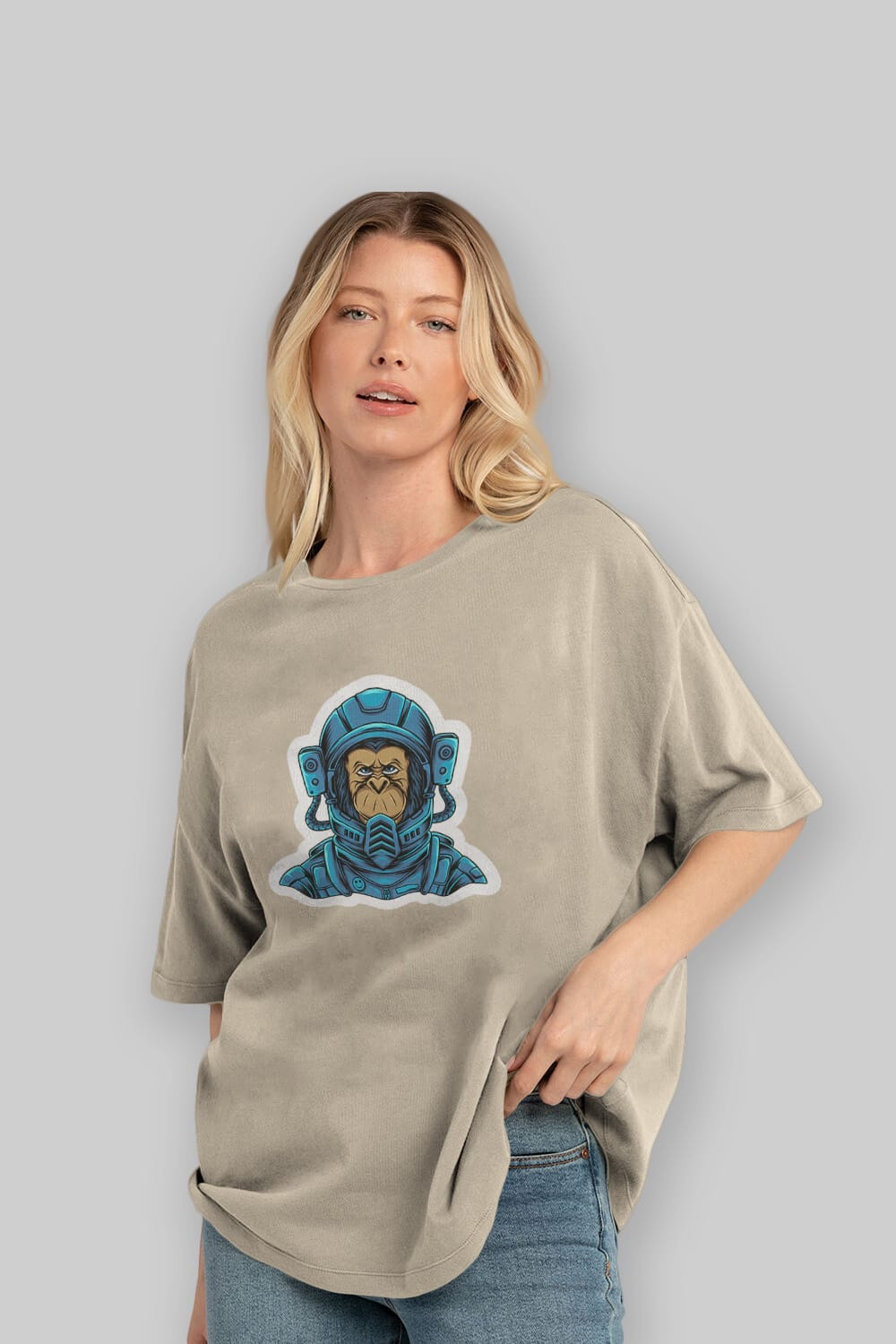 Astromonkey Sticker Ön Baskılı Oversize t-shirt Erkek Kadın Unisex