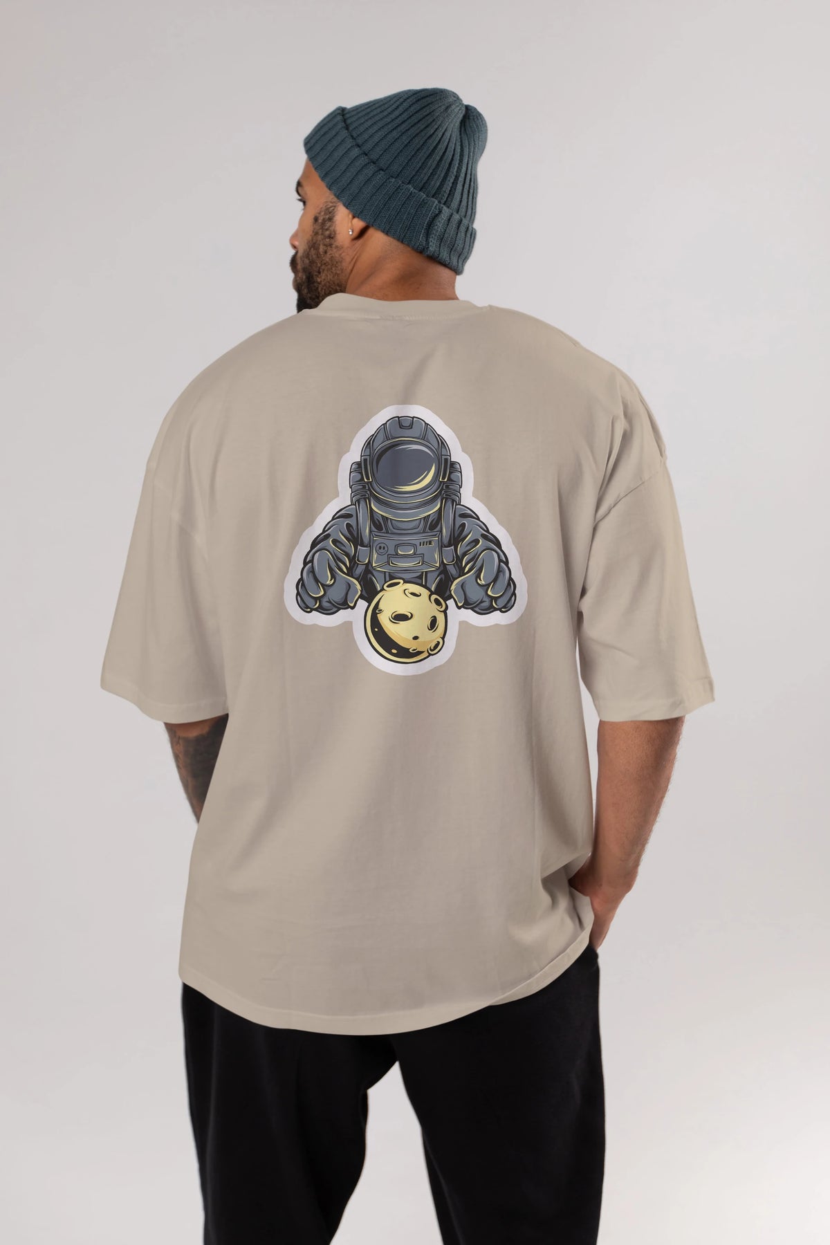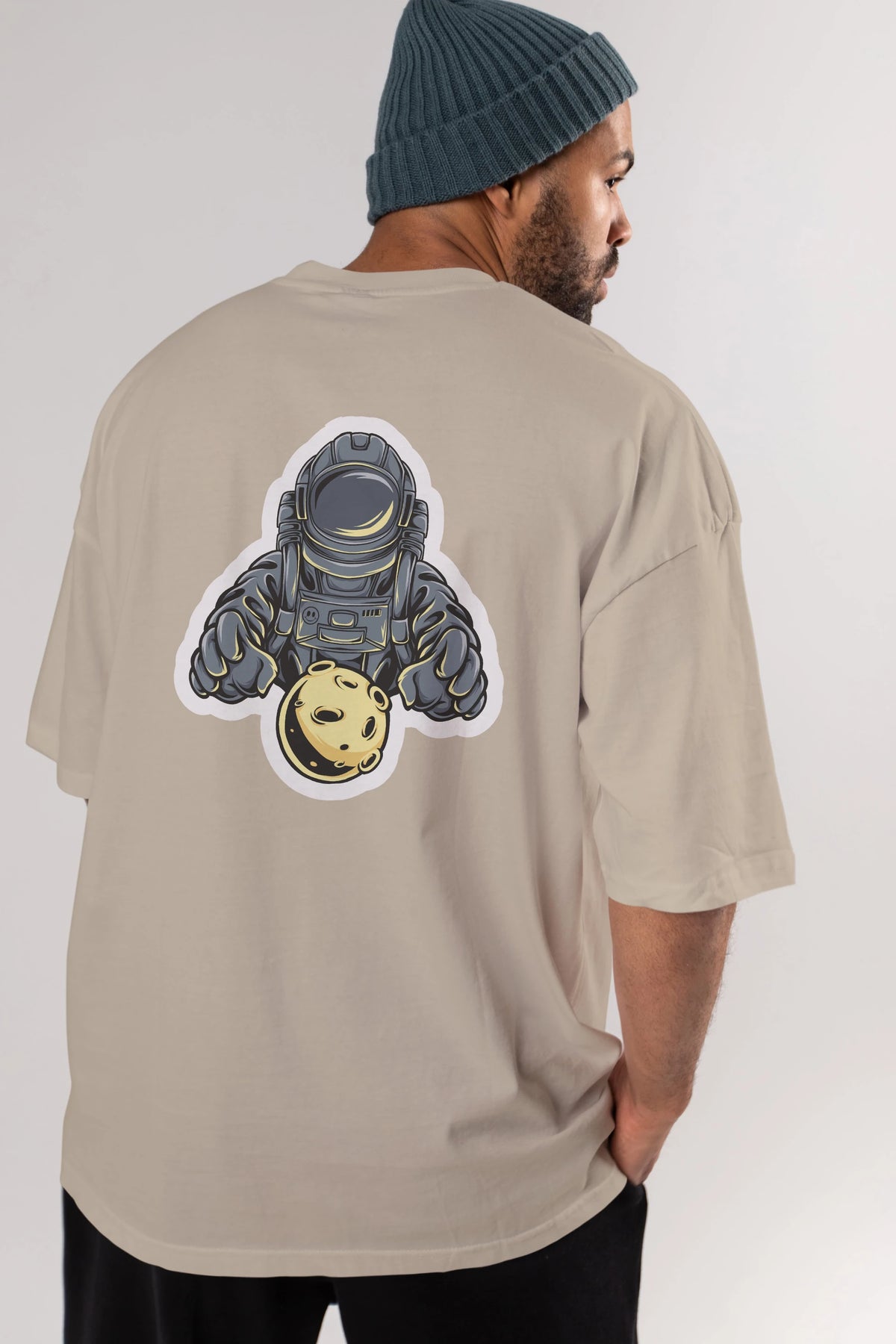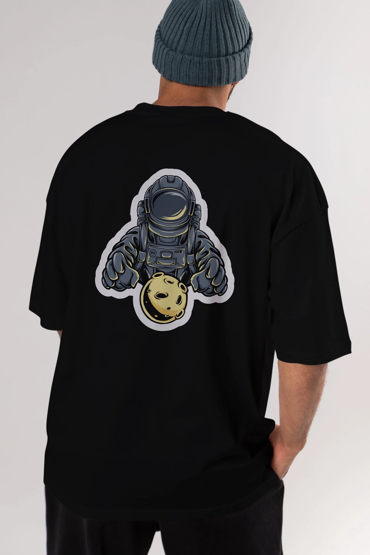 Astromoon sticker Arka Baskılı Oversize t-shirt Erkek Kadın Unisex