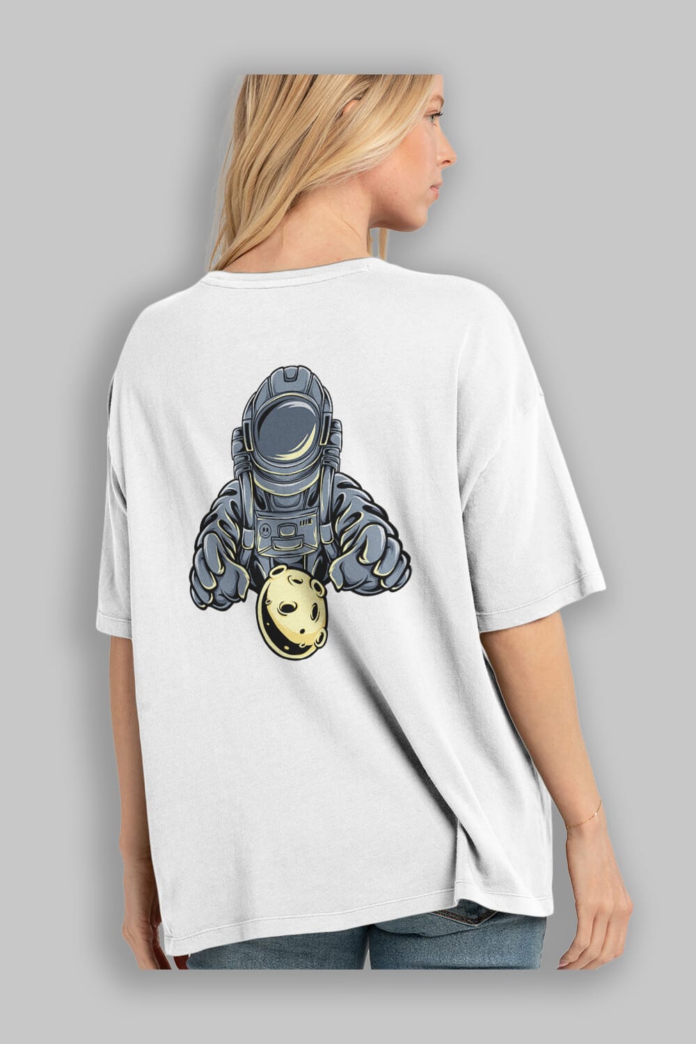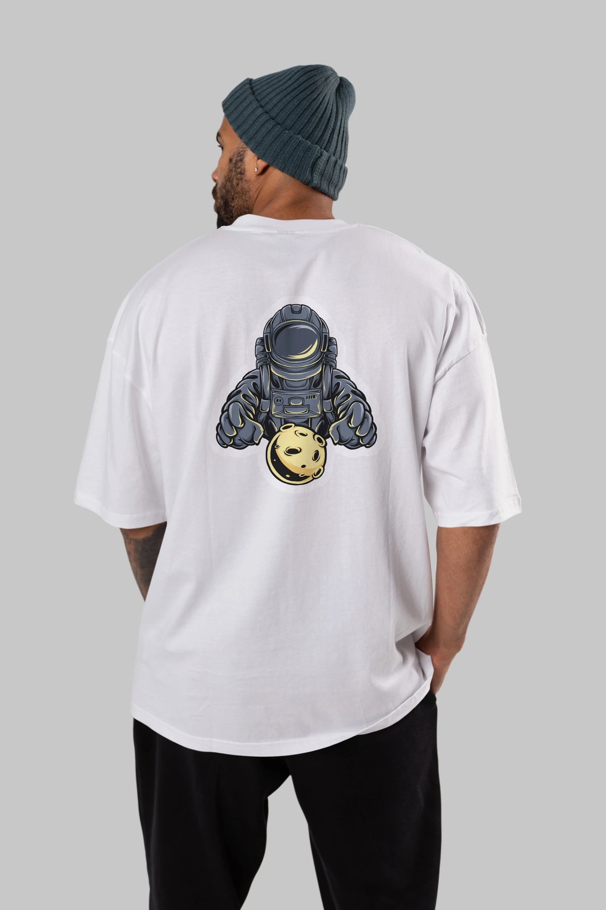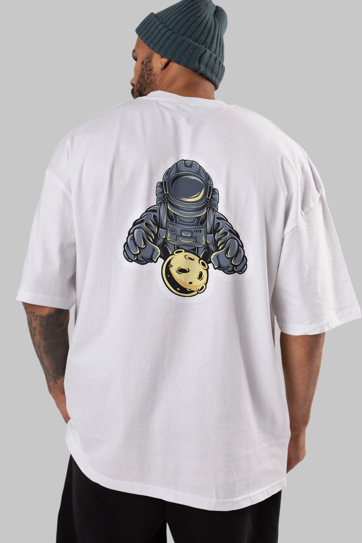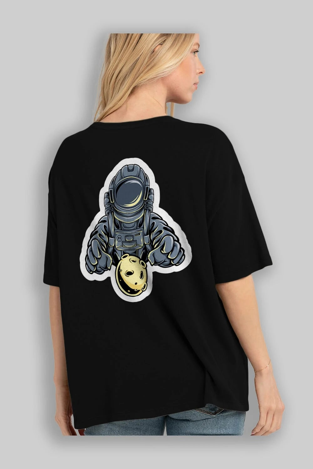 Astromoon sticker Arka Baskılı Oversize t-shirt Erkek Kadın Unisex