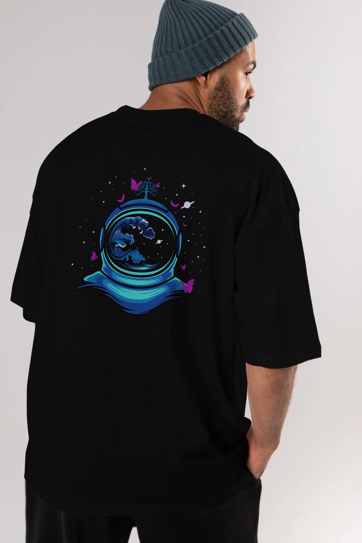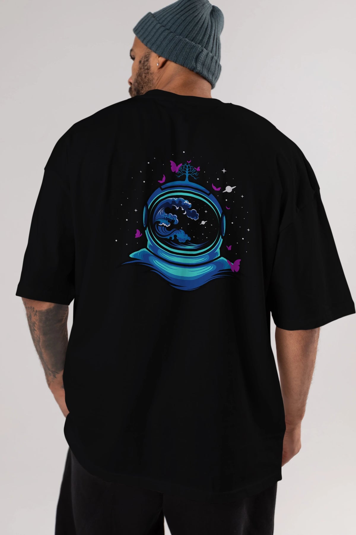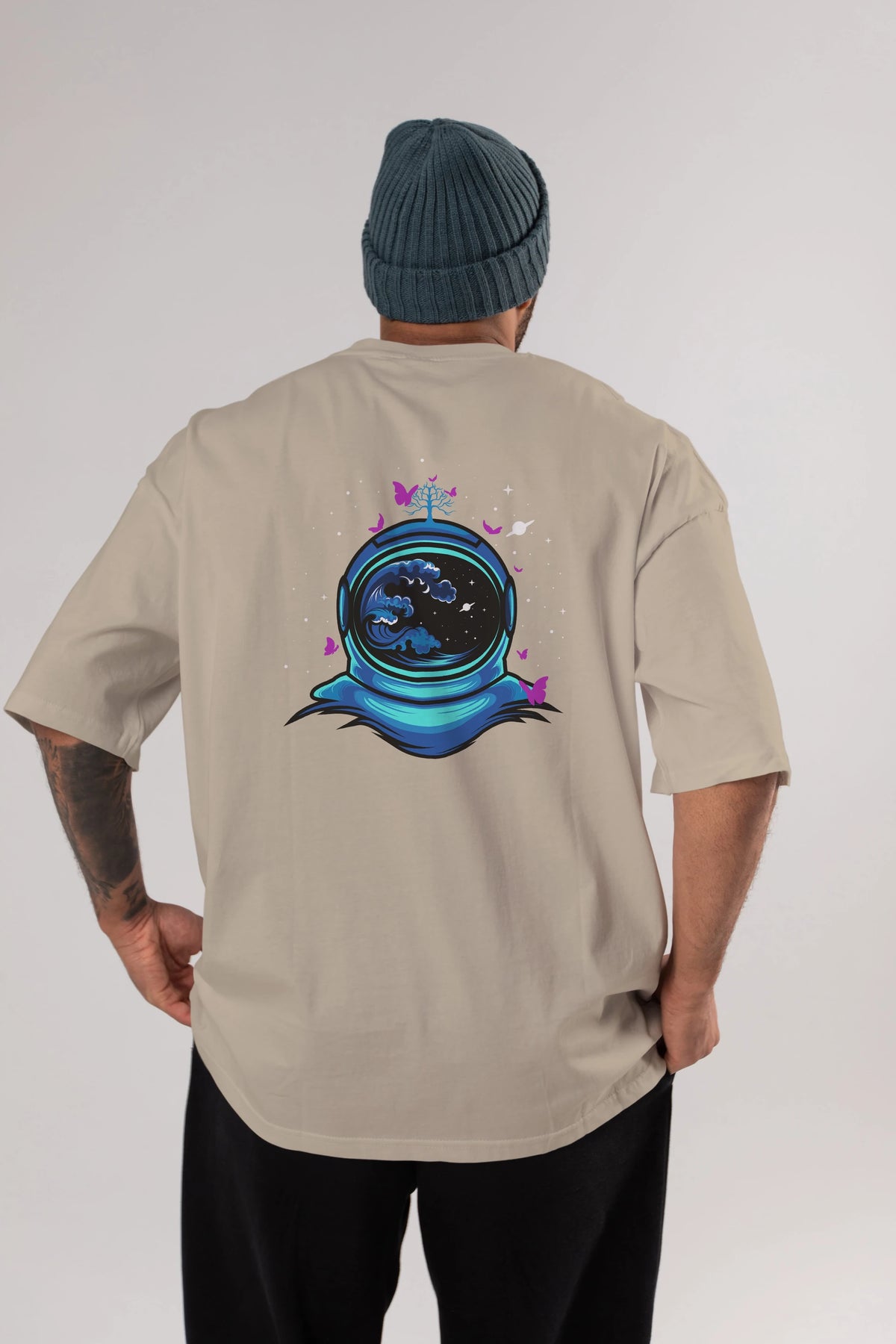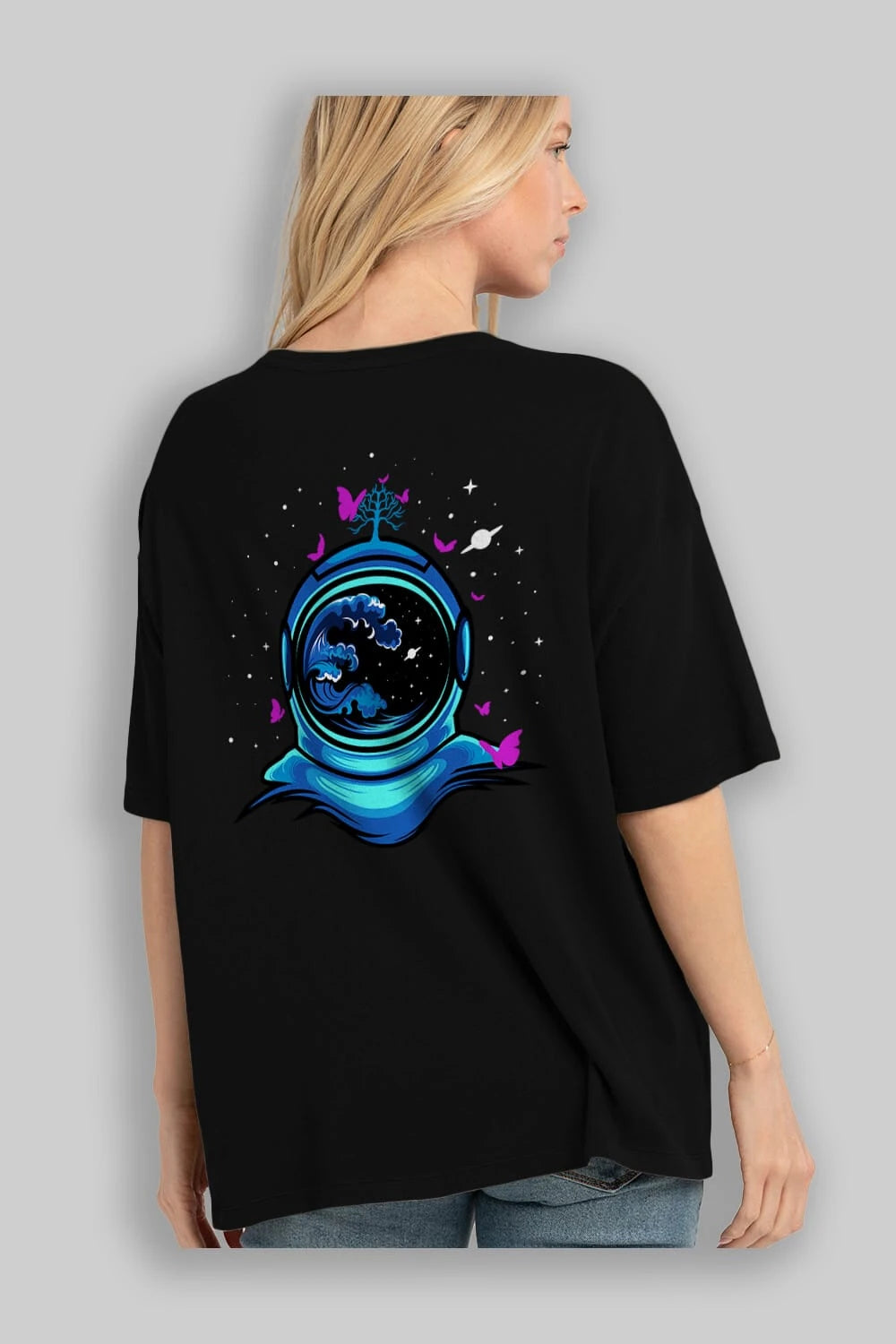 Astronaut and Butterfly Arka Baskılı Oversize t-shirt Erkek Kadın Unisex