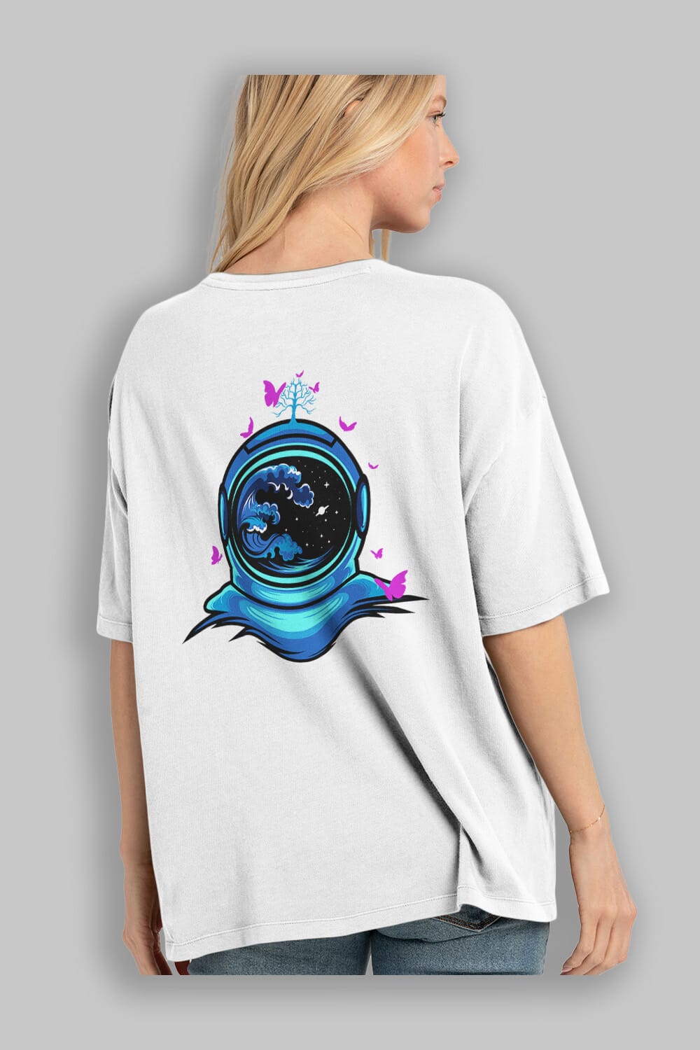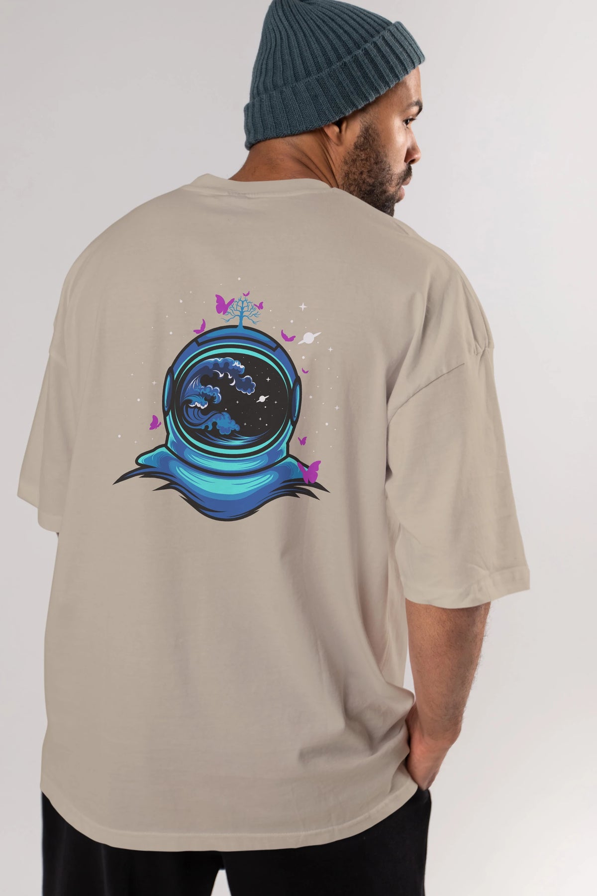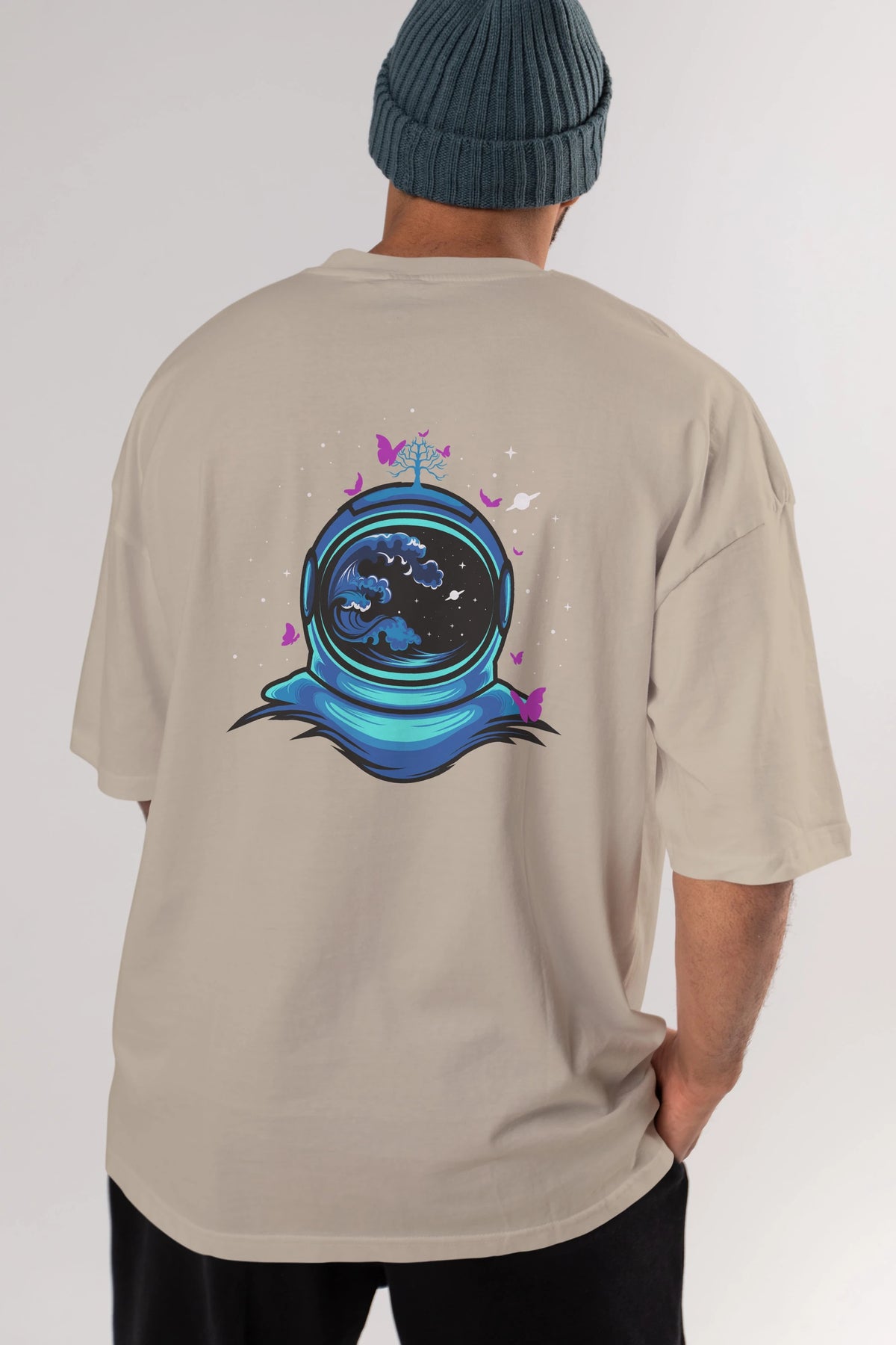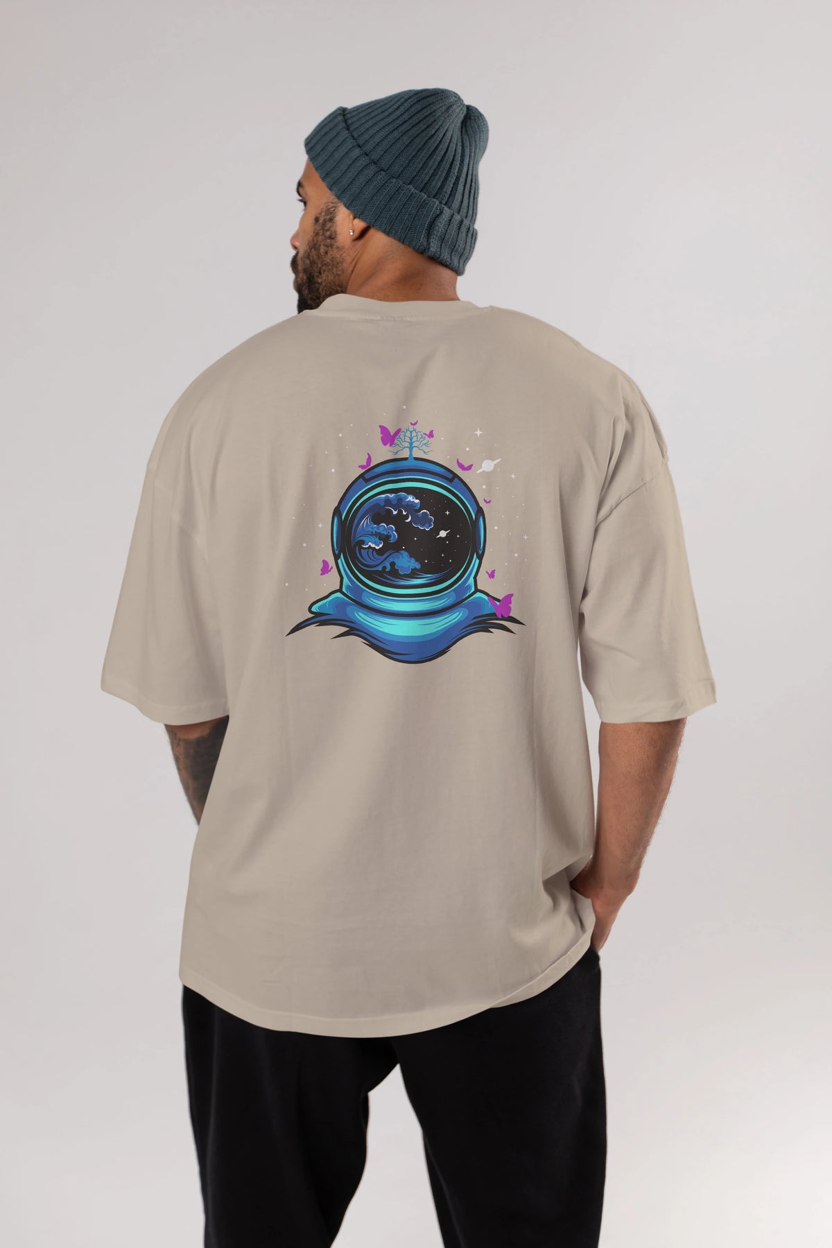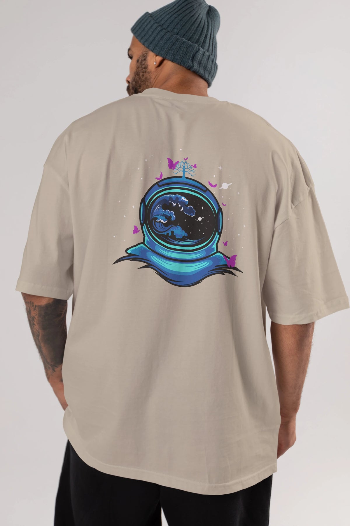 Astronaut and Butterfly Arka Baskılı Oversize t-shirt Erkek Kadın Unisex