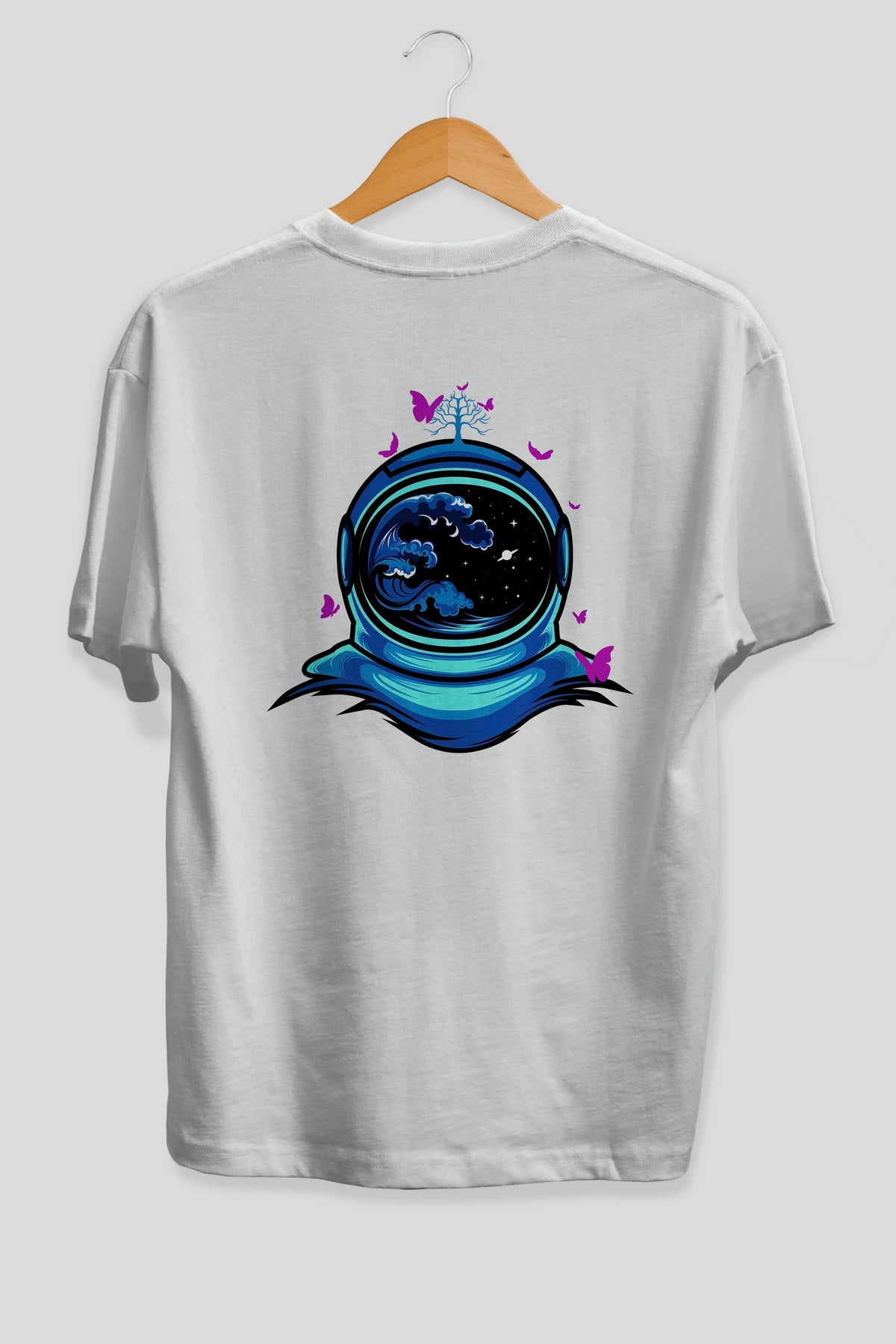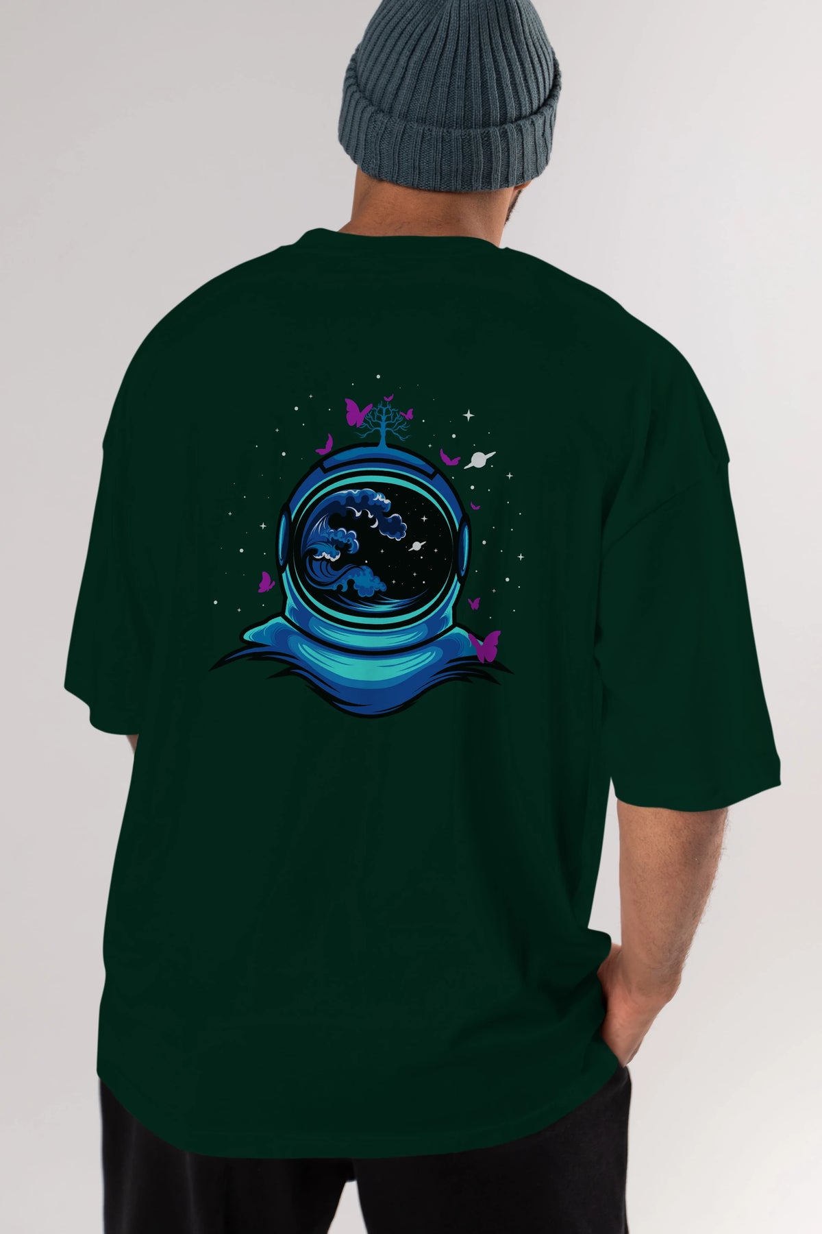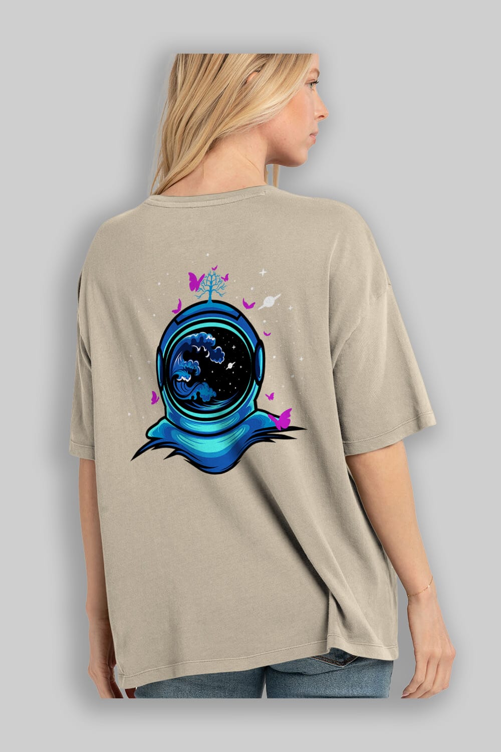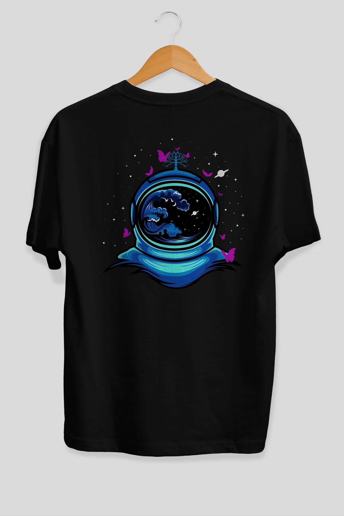 Astronaut and Butterfly Arka Baskılı Oversize t-shirt Erkek Kadın Unisex