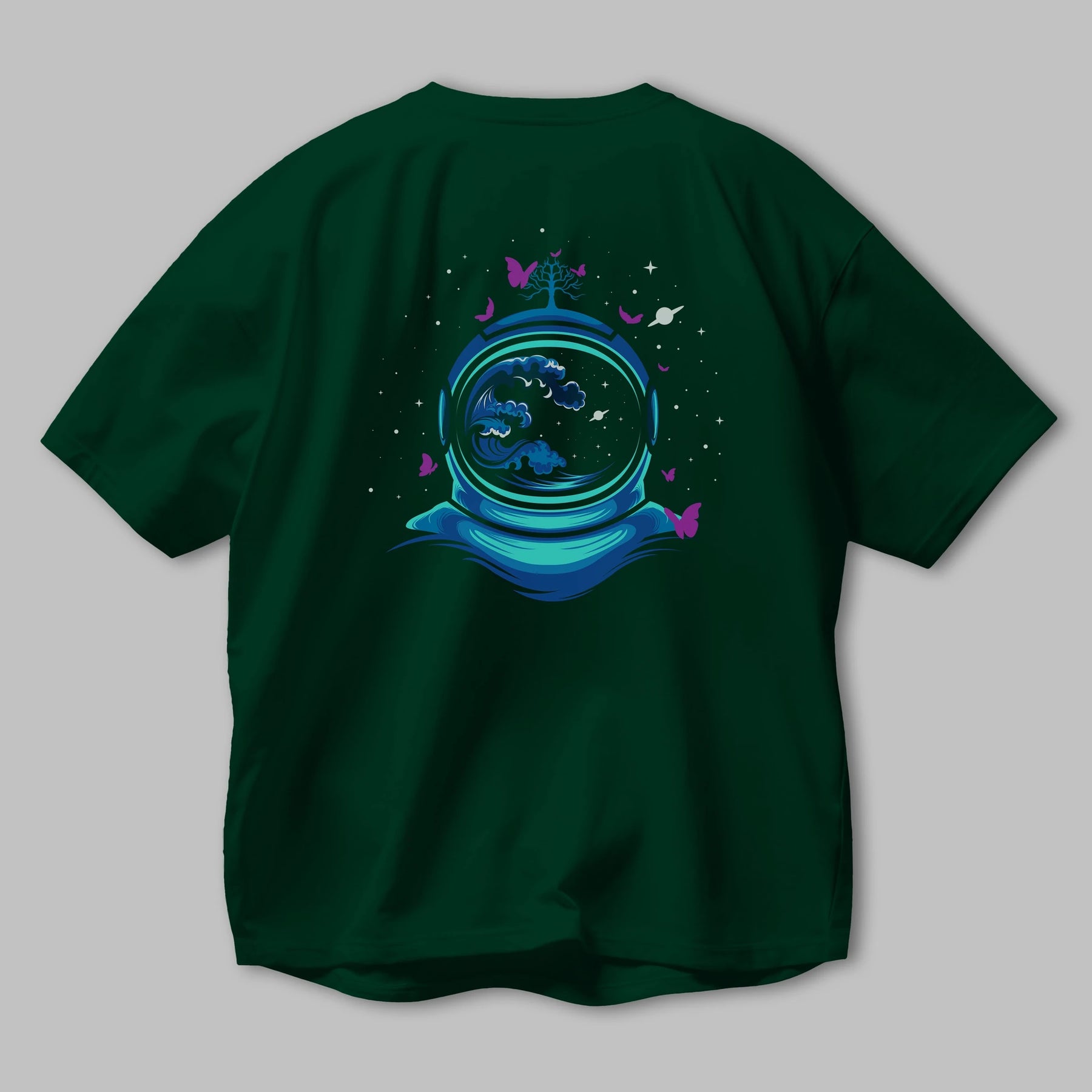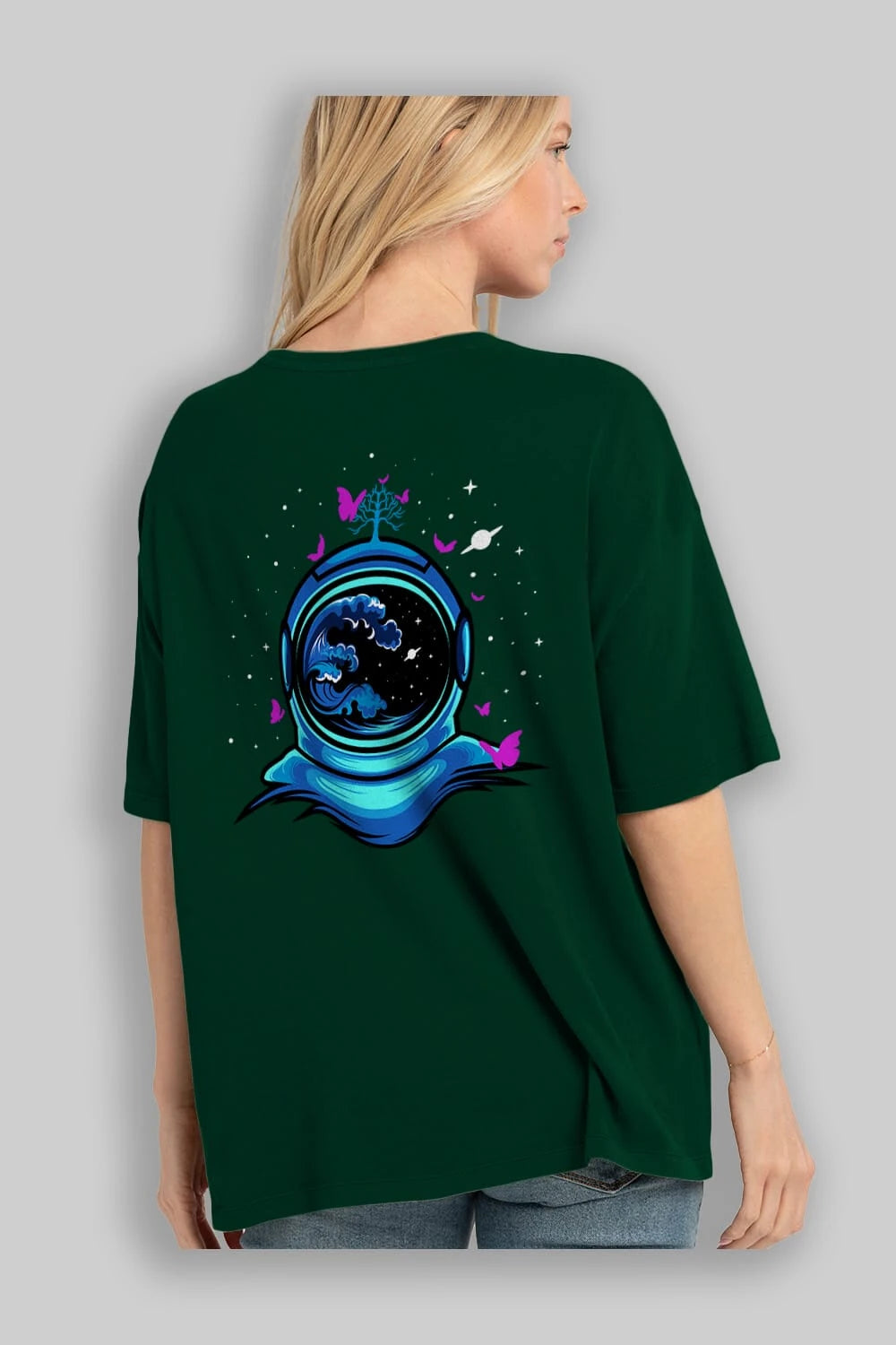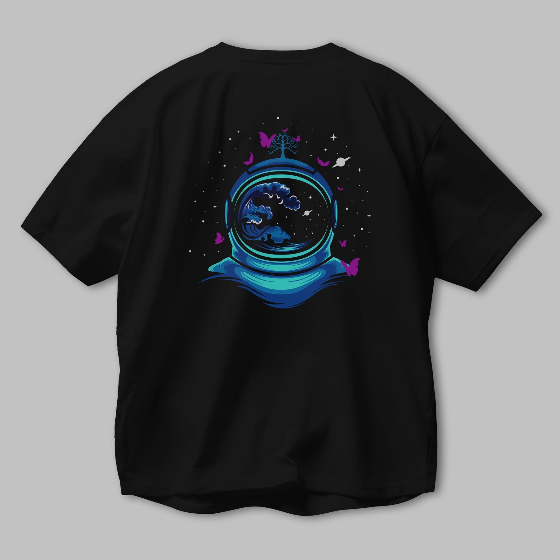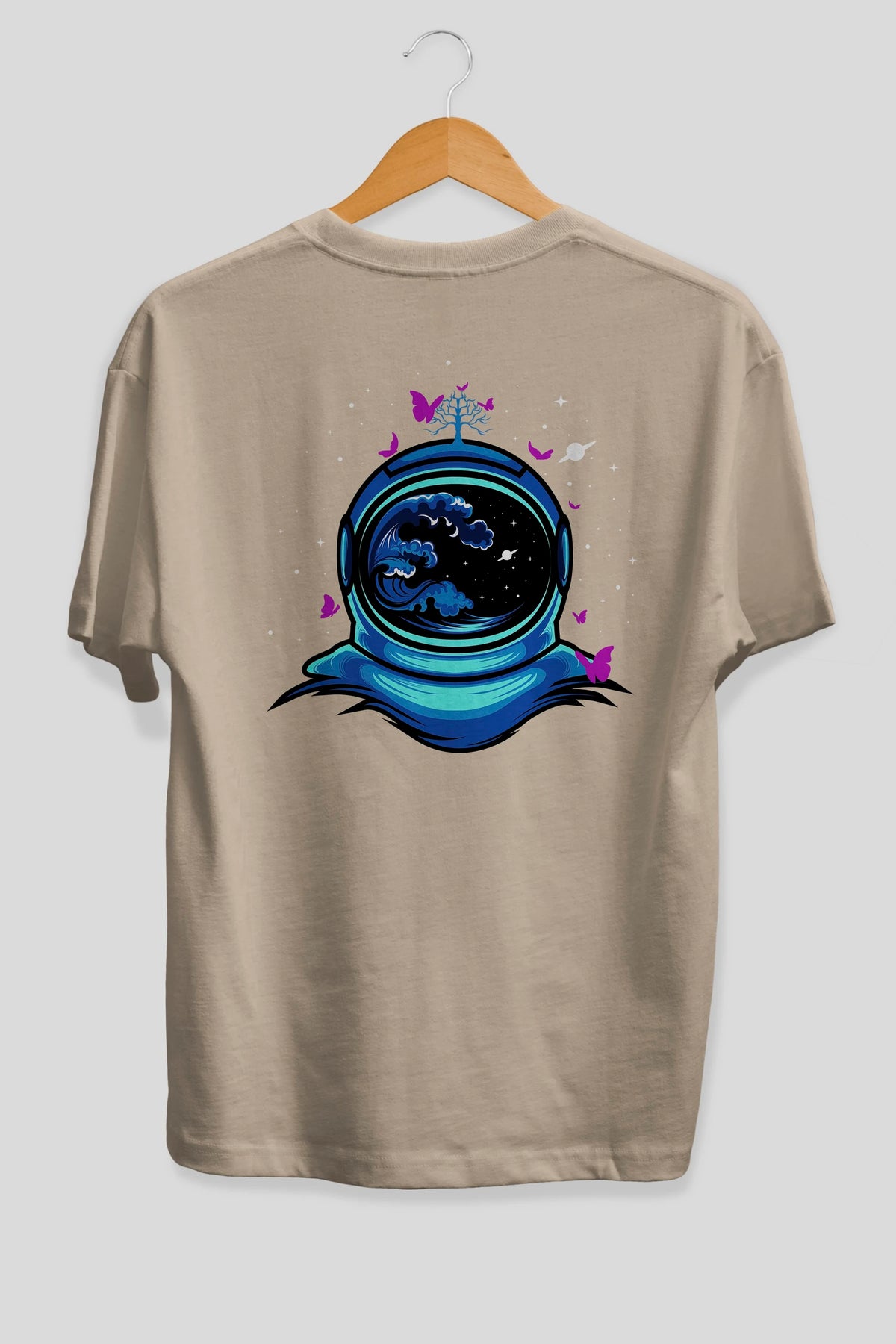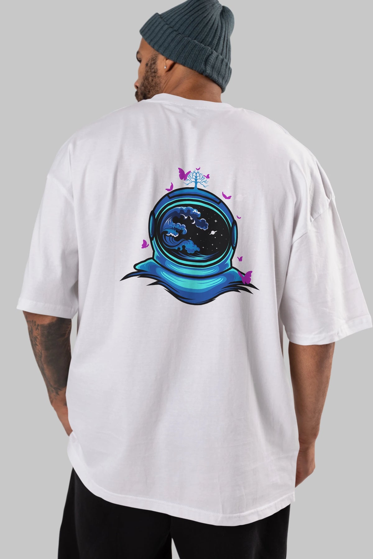 Astronaut and Butterfly Arka Baskılı Oversize t-shirt Erkek Kadın Unisex