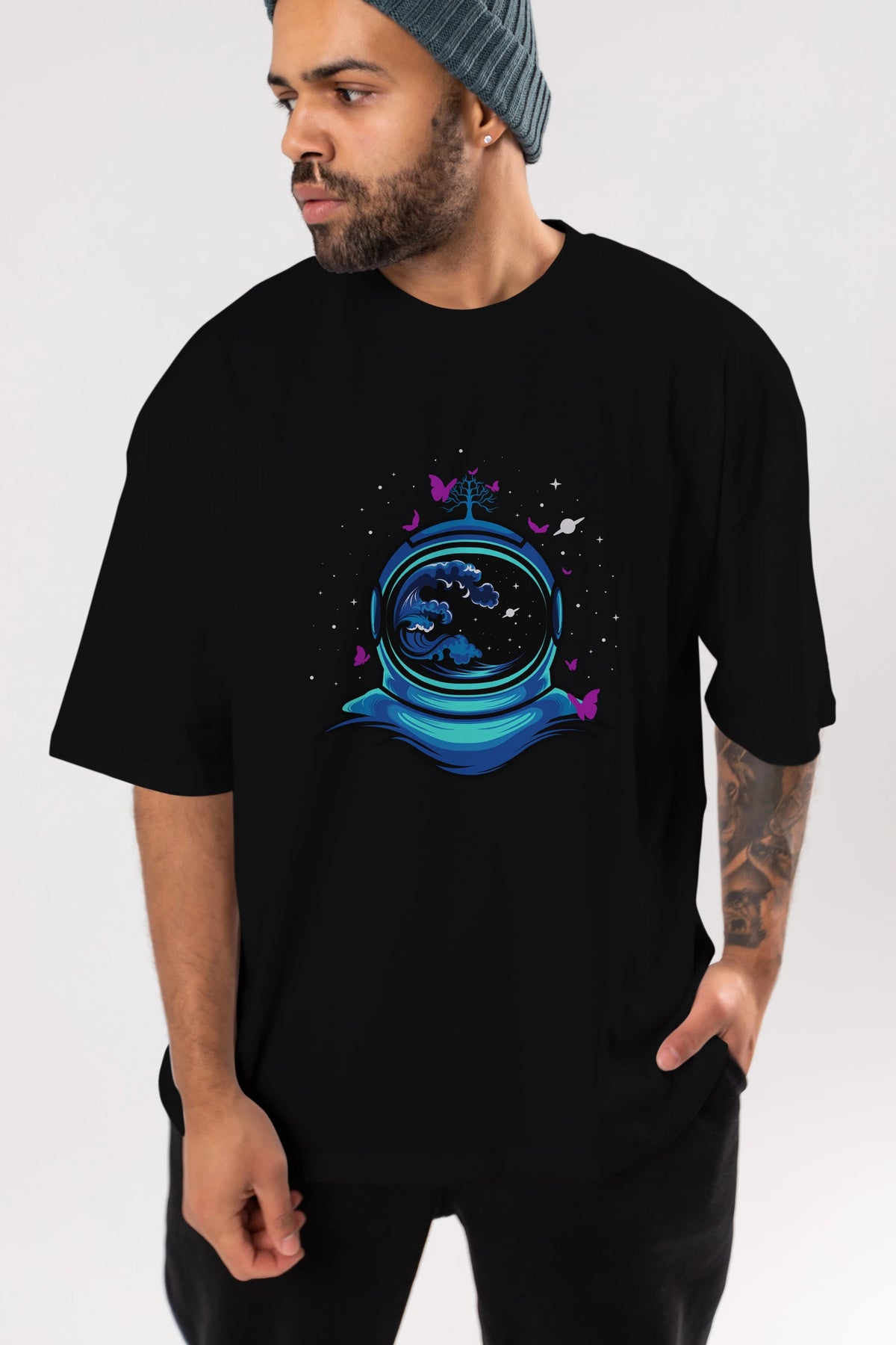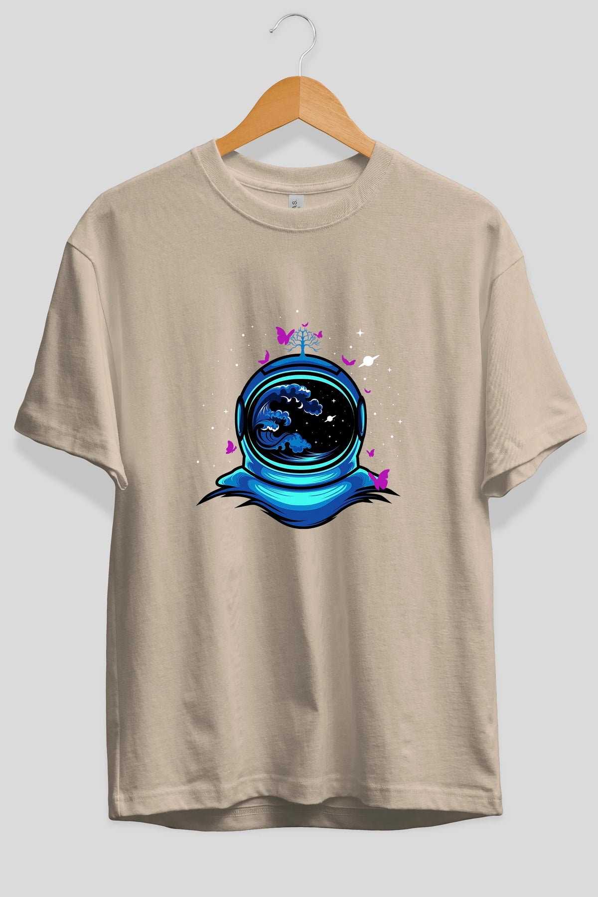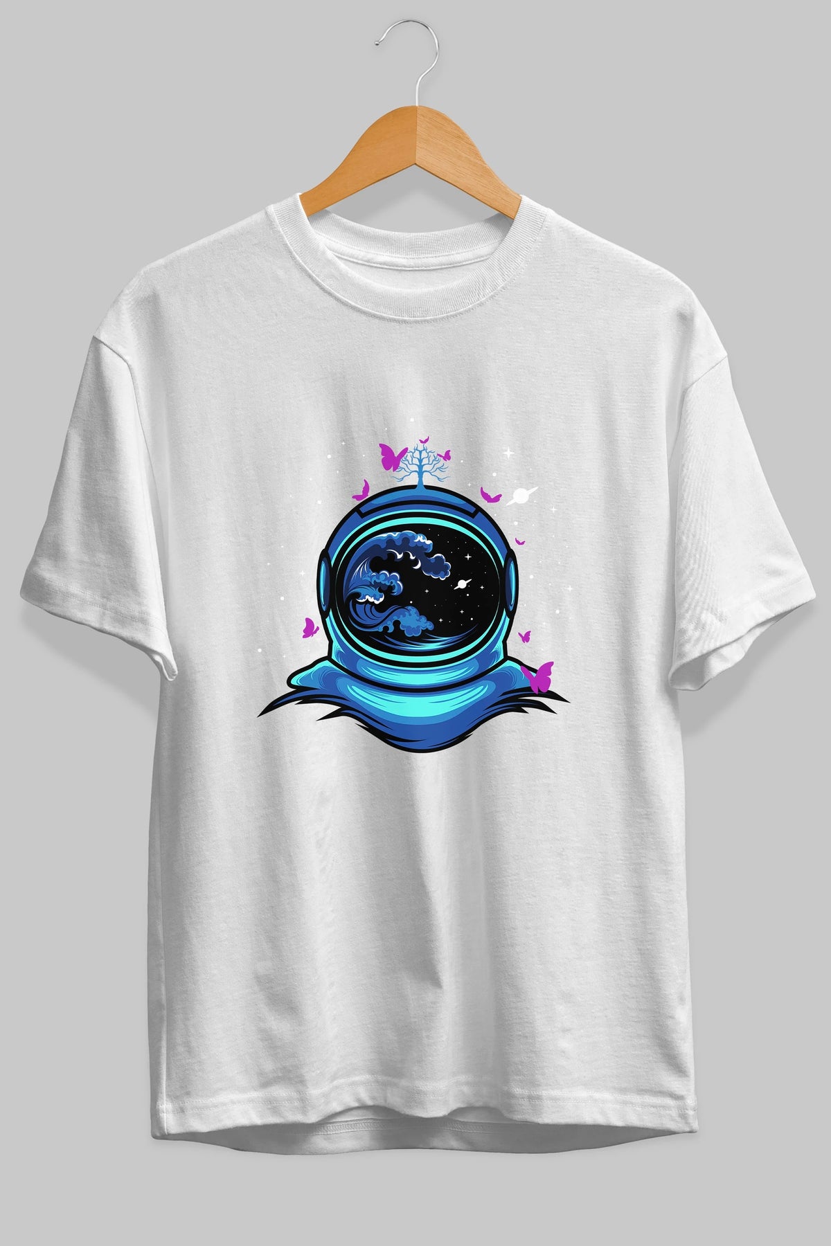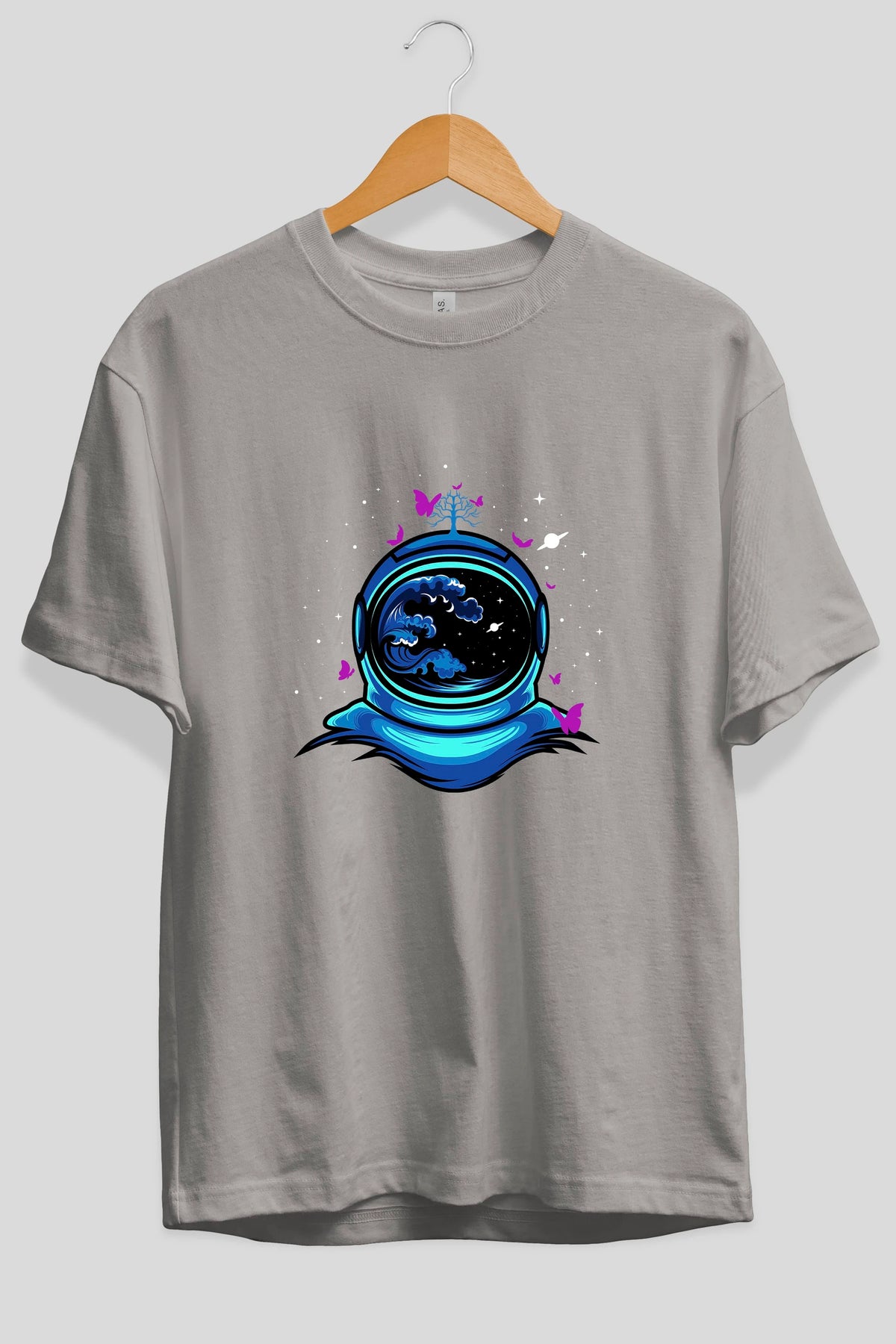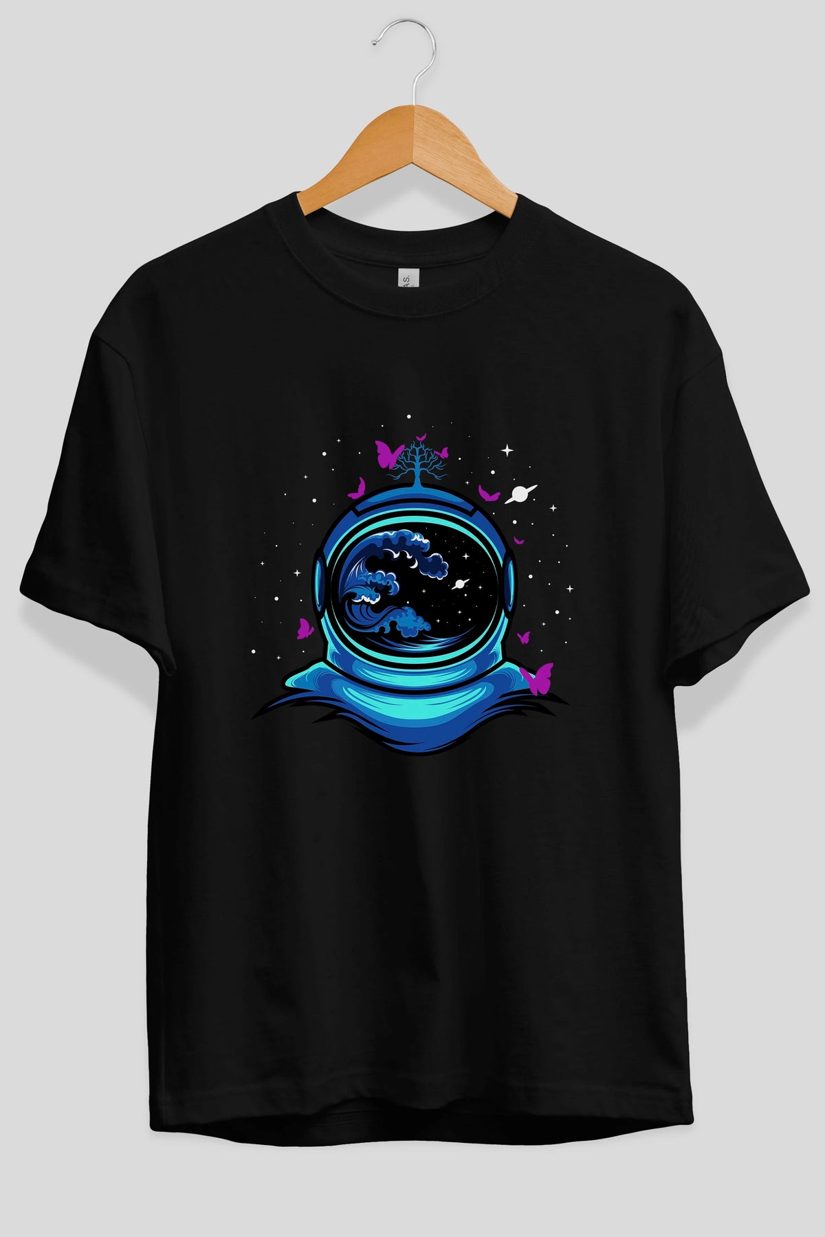 Astronaut and Butterfly Ön Baskılı Oversize t-shirt Erkek Kadın Unisex