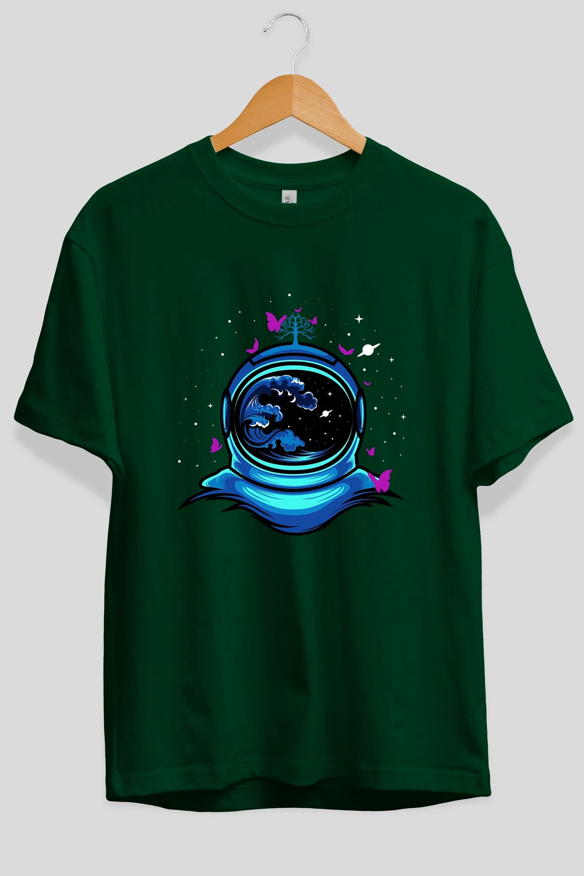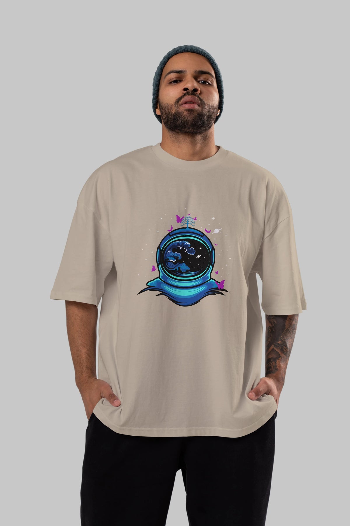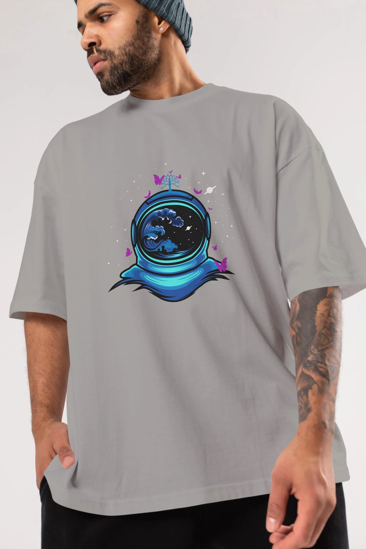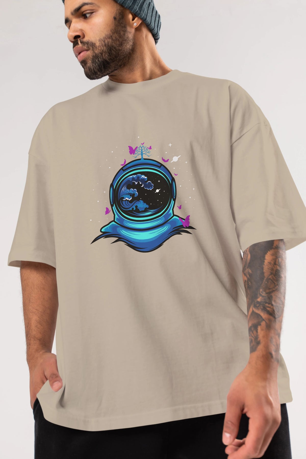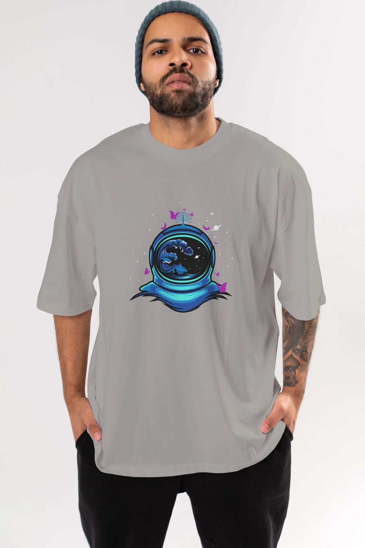 Astronaut and Butterfly Ön Baskılı Oversize t-shirt Erkek Kadın Unisex