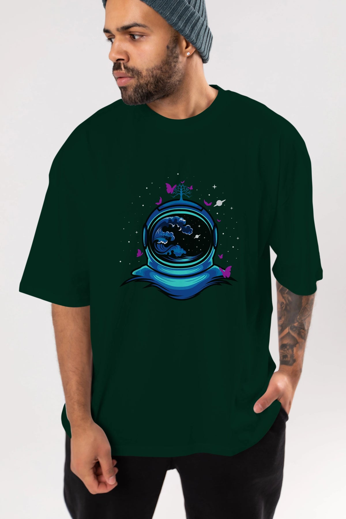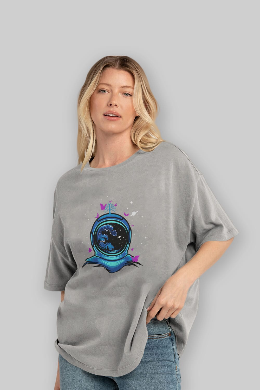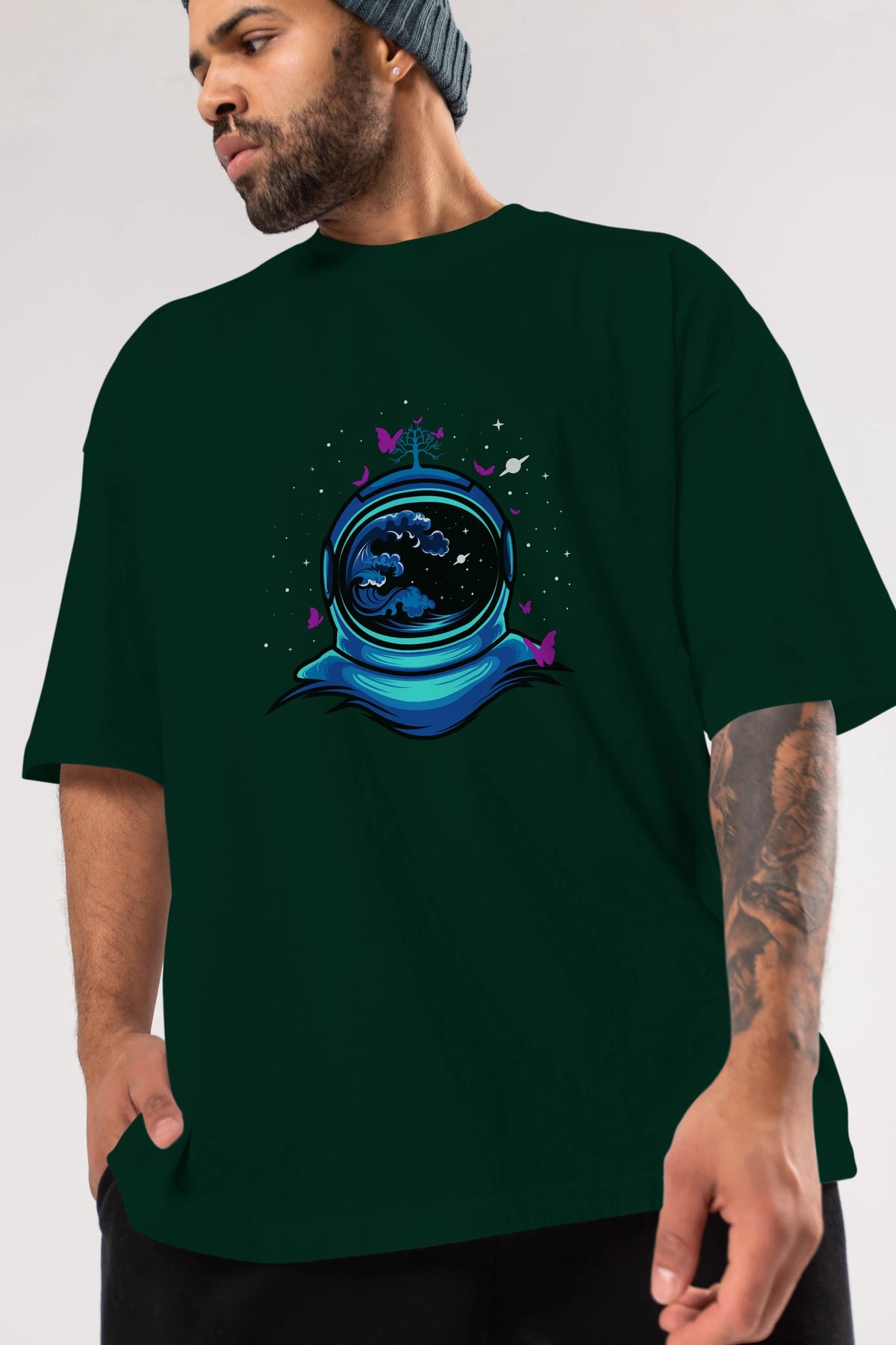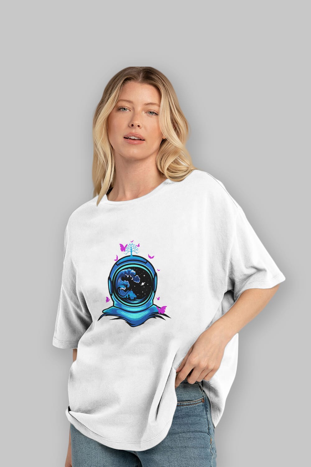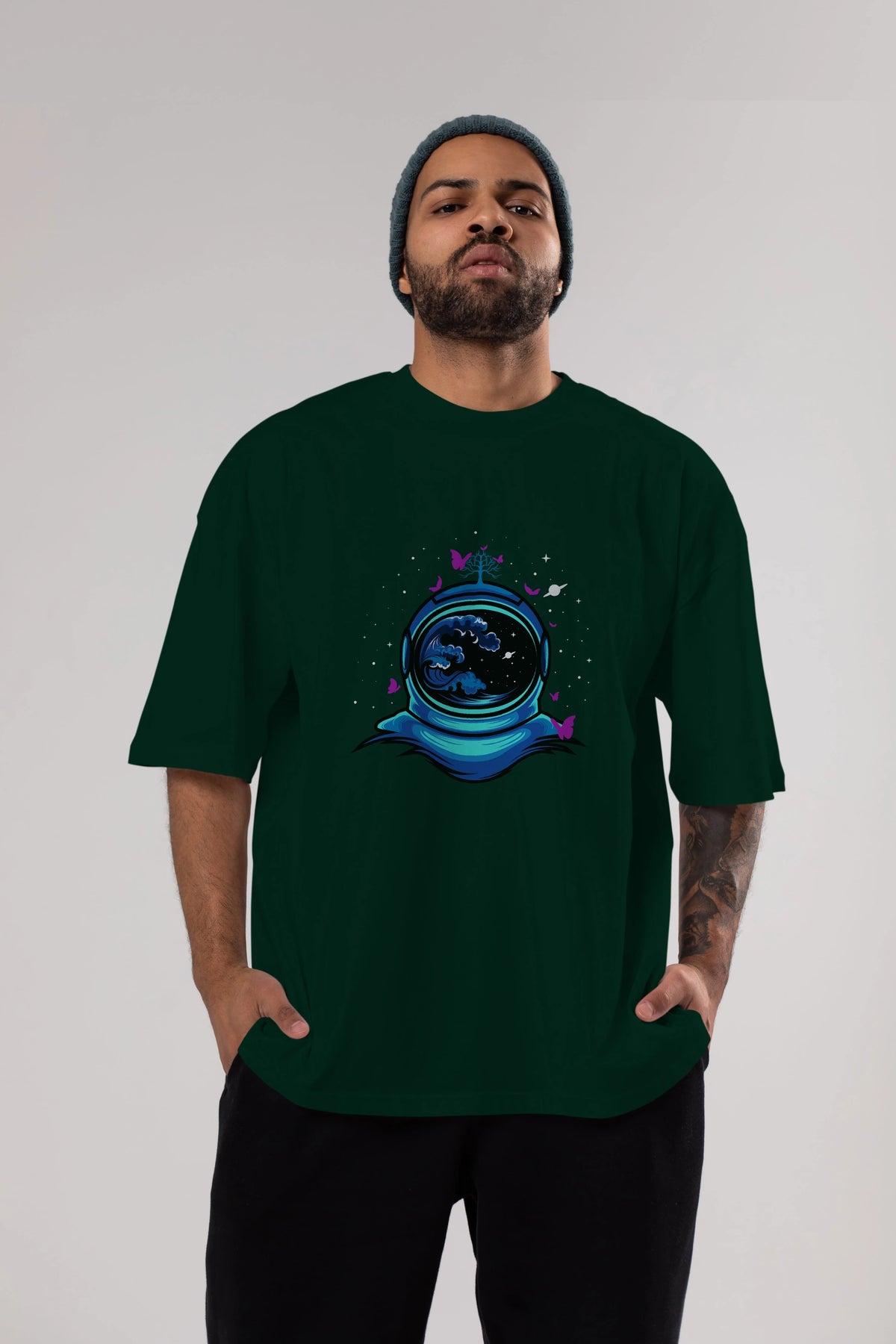 Astronaut and Butterfly Ön Baskılı Oversize t-shirt Erkek Kadın Unisex