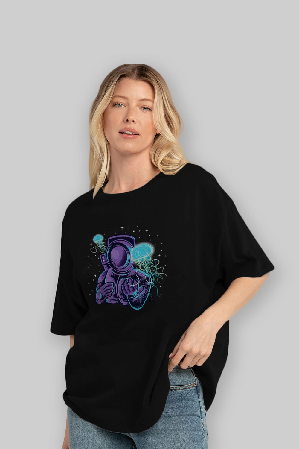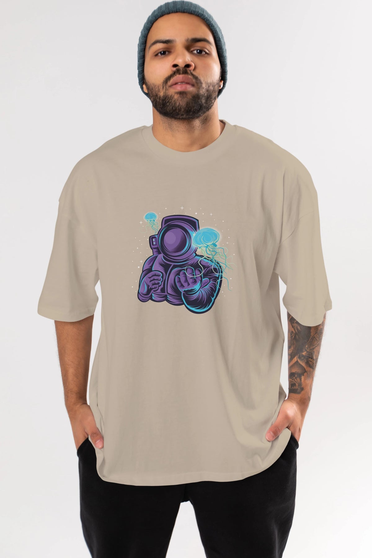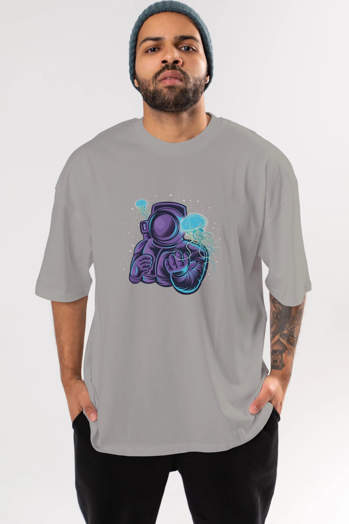 Astronaut and Jellyfish Ön Baskılı Oversize t-shirt Erkek Kadın Unisex