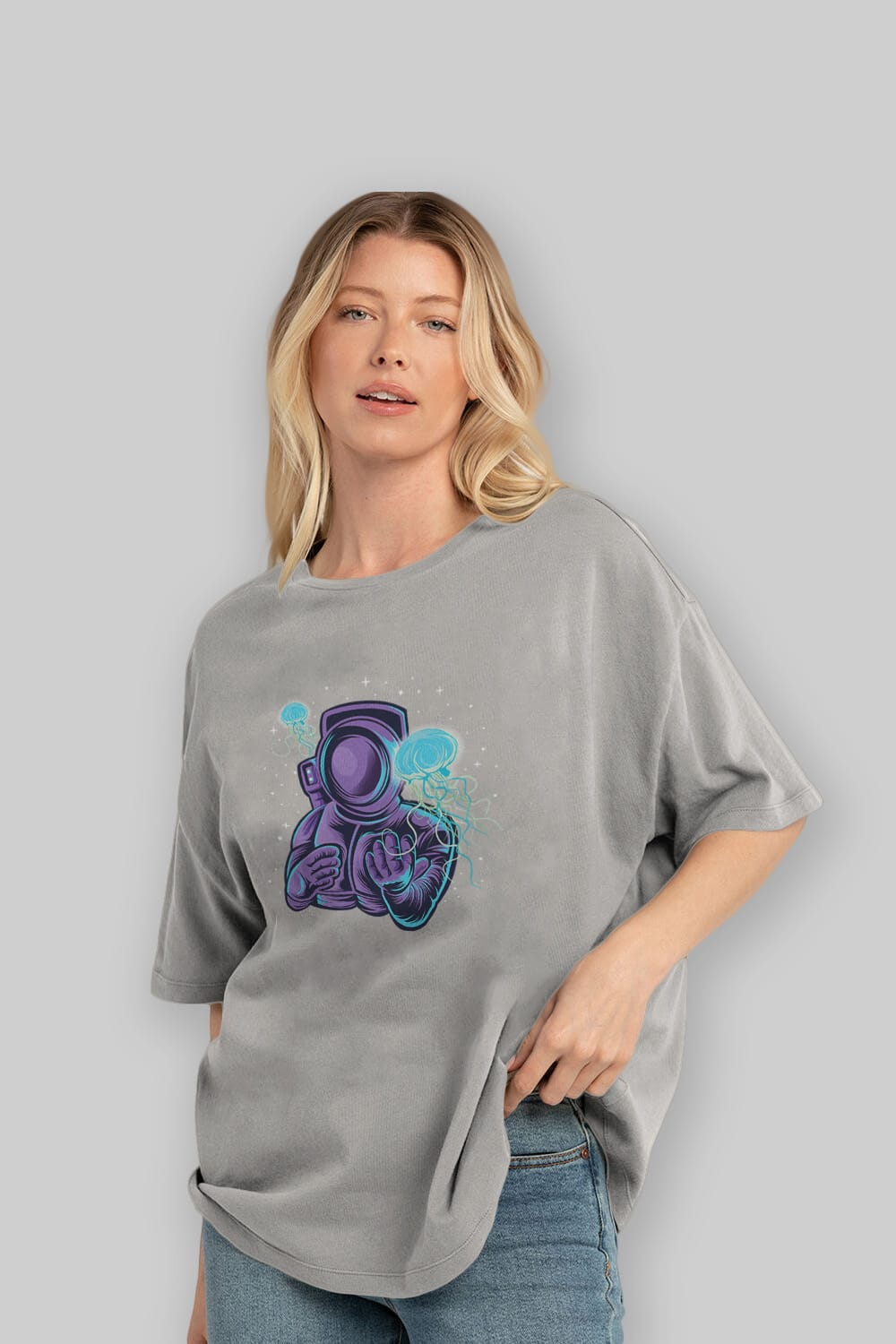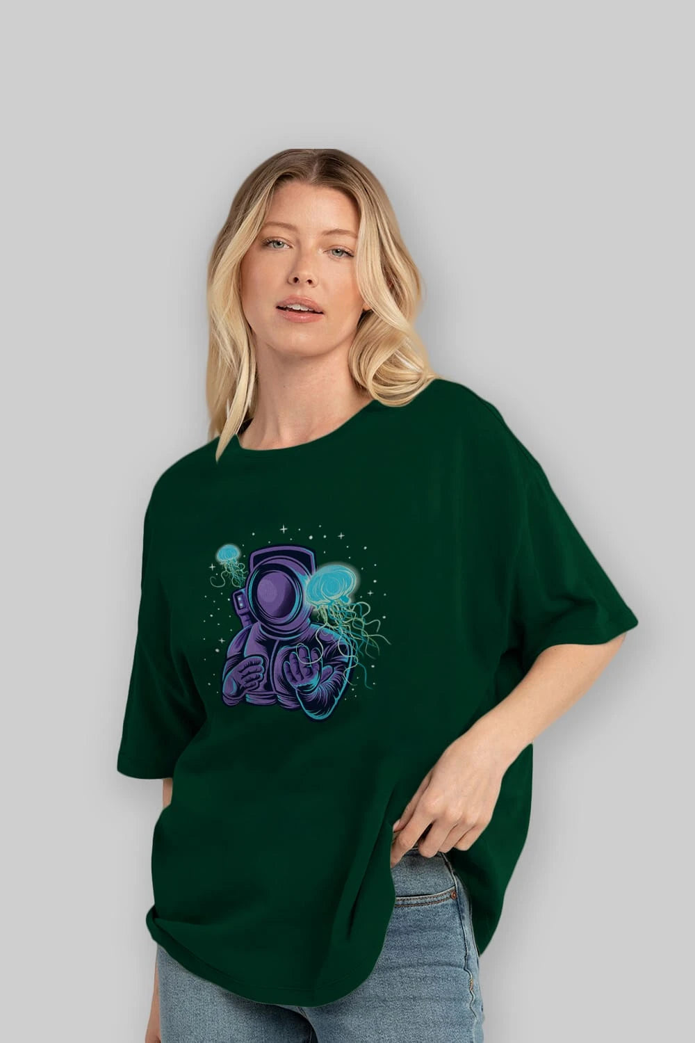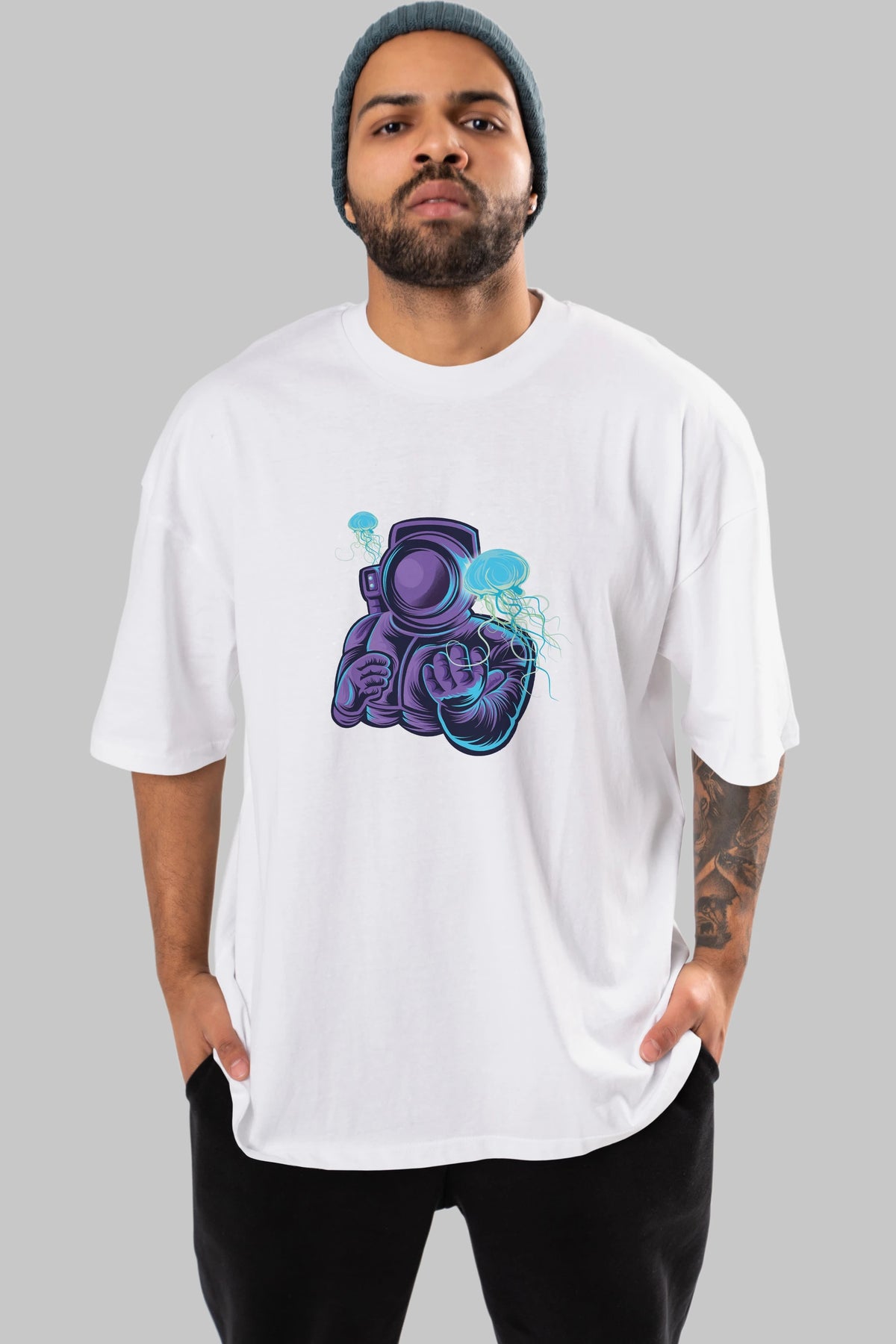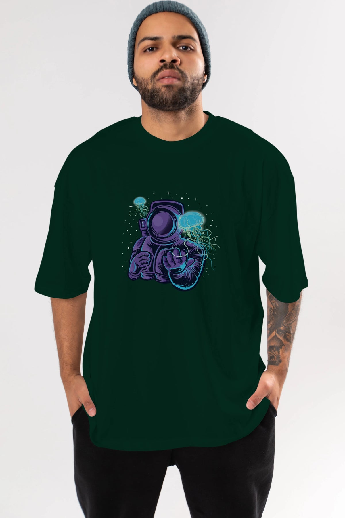 Astronaut and Jellyfish Ön Baskılı Oversize t-shirt Erkek Kadın Unisex