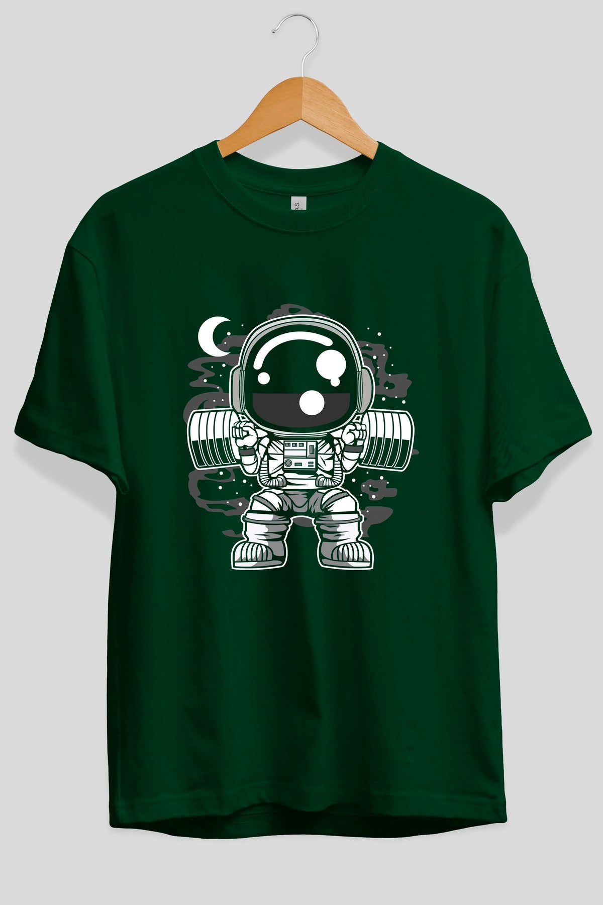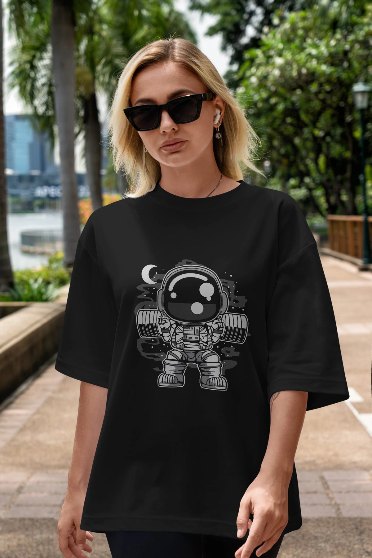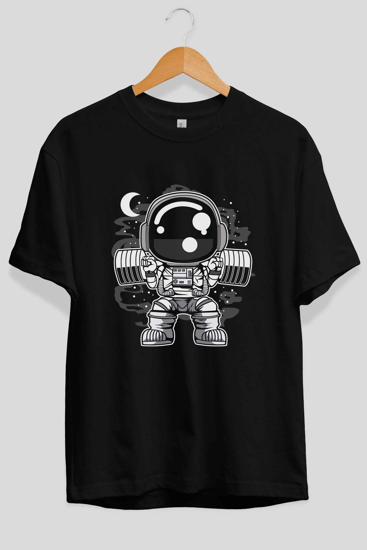 Astronaut Barbell Body Builder Ön Baskılı Oversize t-shirt Erkek Kadın Unisex